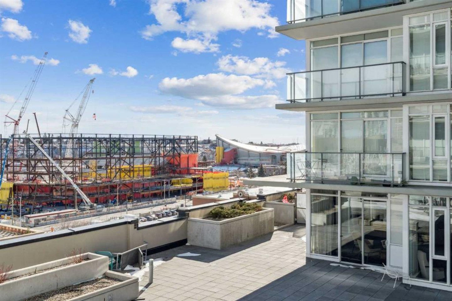Undeniable Value with this impeccably maintained one bedroom suite at The Guardian North tower. Immersed in Calgary’s evolving Culture + Entertainment District you are steps from the action and a stones throw from the new Flames arena and Stampede Grounds. The European inspired designer kitchen features custom two tone cabinetry, a built-in fridge, Miele cooktop, built-in dishwasher and quartz countertops with undermount sink. A solid slab quartz backsplash is featured throughout the kitchen. The convenient island accentuated by pendant lighting is home to a microwave nook and seating nook for barstools. The unit is bright with floor to ceiling windows throughout. Laminate hardwood floors extend throughout the living area and anchor the spacious living room with ample room for a couch and chairs. The living room offers access to the large covered patio with views. The primary bedroom also features floor-to-ceiling windows and allows easy access to the refined 4-piece bathroom. The bathroom features a soaker tub and tiled shower combo. The pedestal sink carries through the European styled cabinets from the kitchen and quartz countertops with undermount sink. Rounding out this incredible offering is a full blinds package, newer Samsung stackable washer and dryer unit, assigned storage locker and low condo fees. The Guardian North Tower offers an incredible amenity package including fully equipped commercial sized fitness centre, a Workshop equipped with workbench and hand tools, a 1,350 square foot Social Club that opens onto the spacious Garden Terrace. Parking in the building available for lease. An amazing opportunity at an unbeatable price to become part of Calgary’s exciting entertainment district.