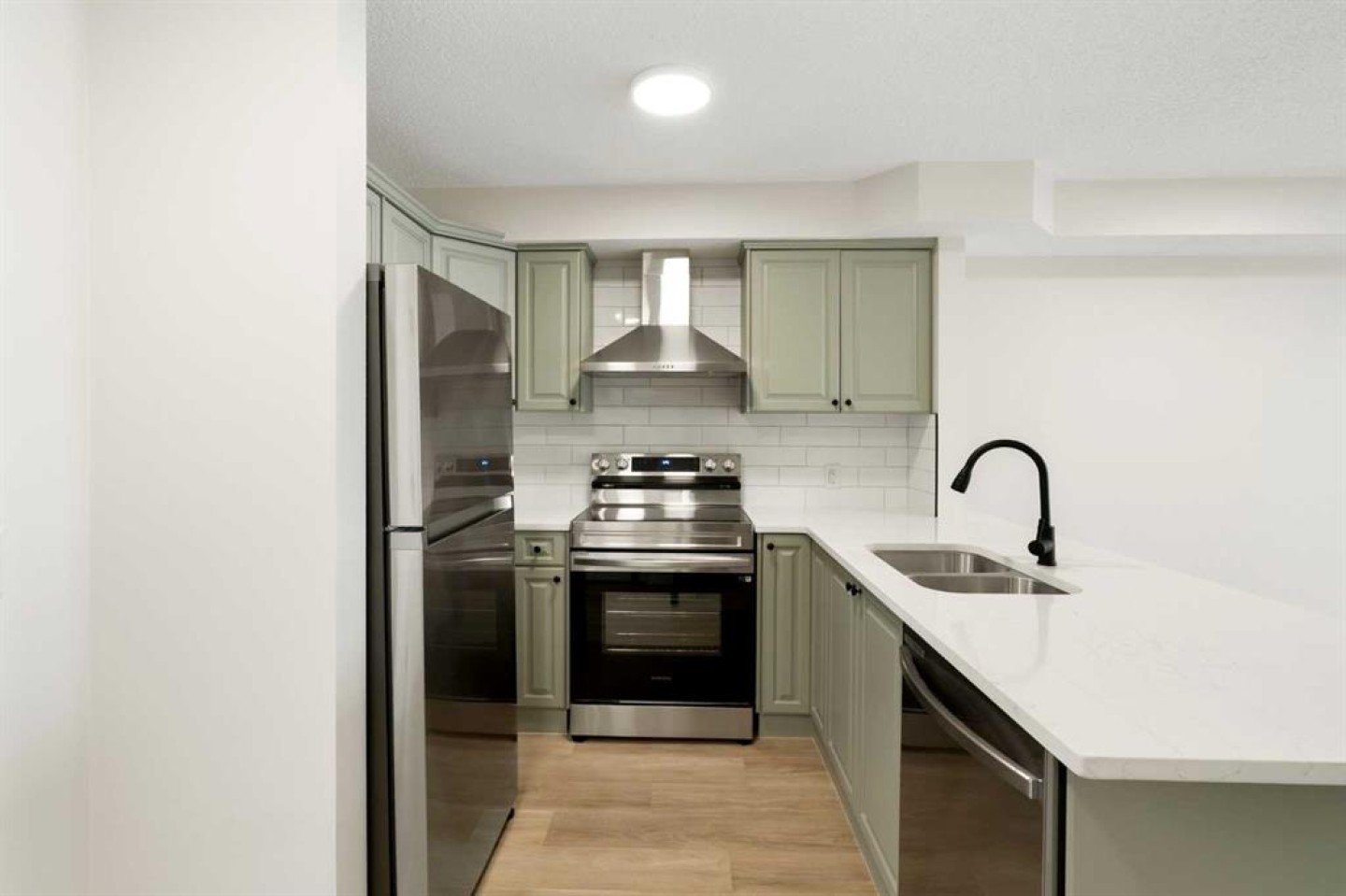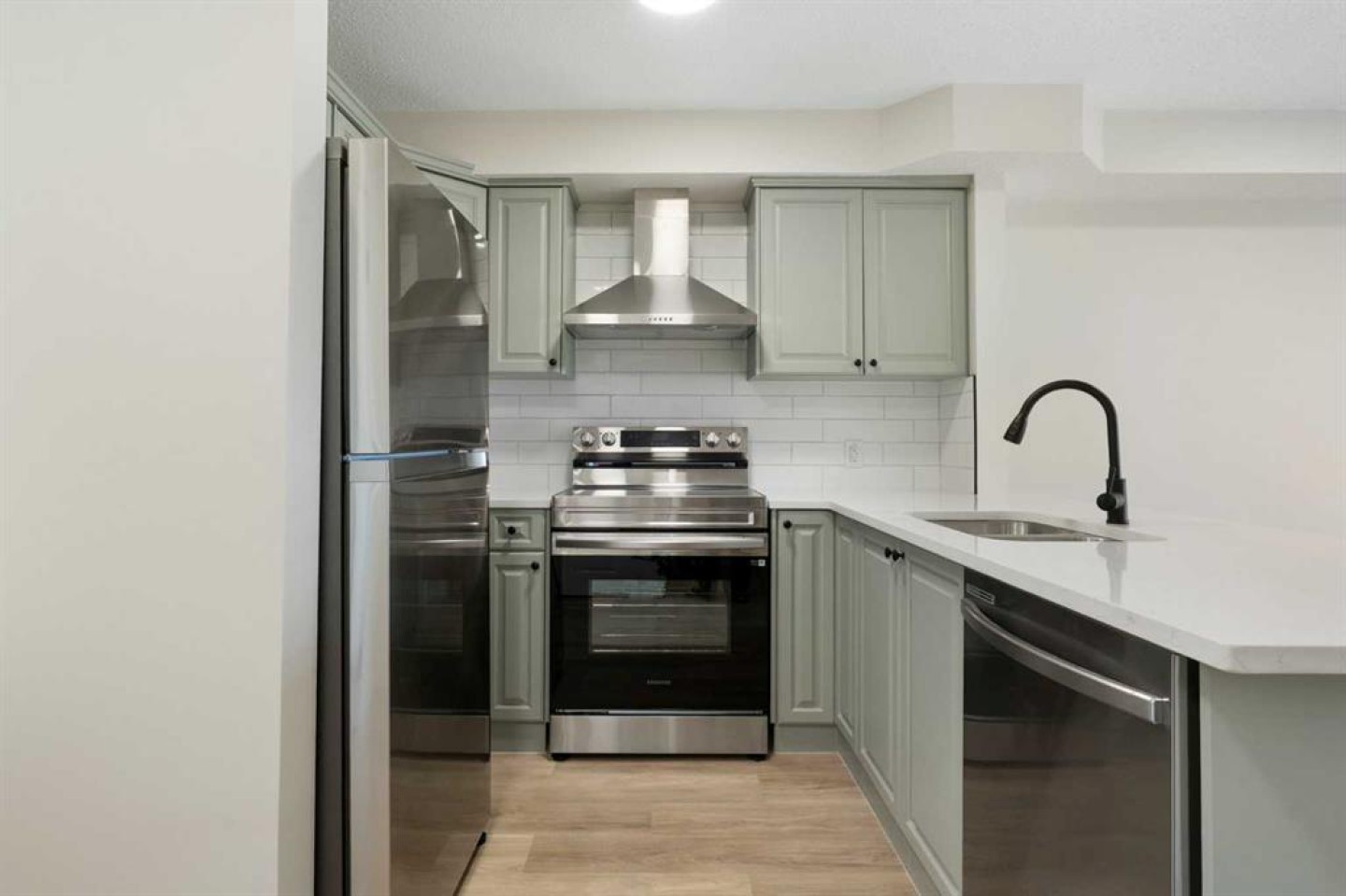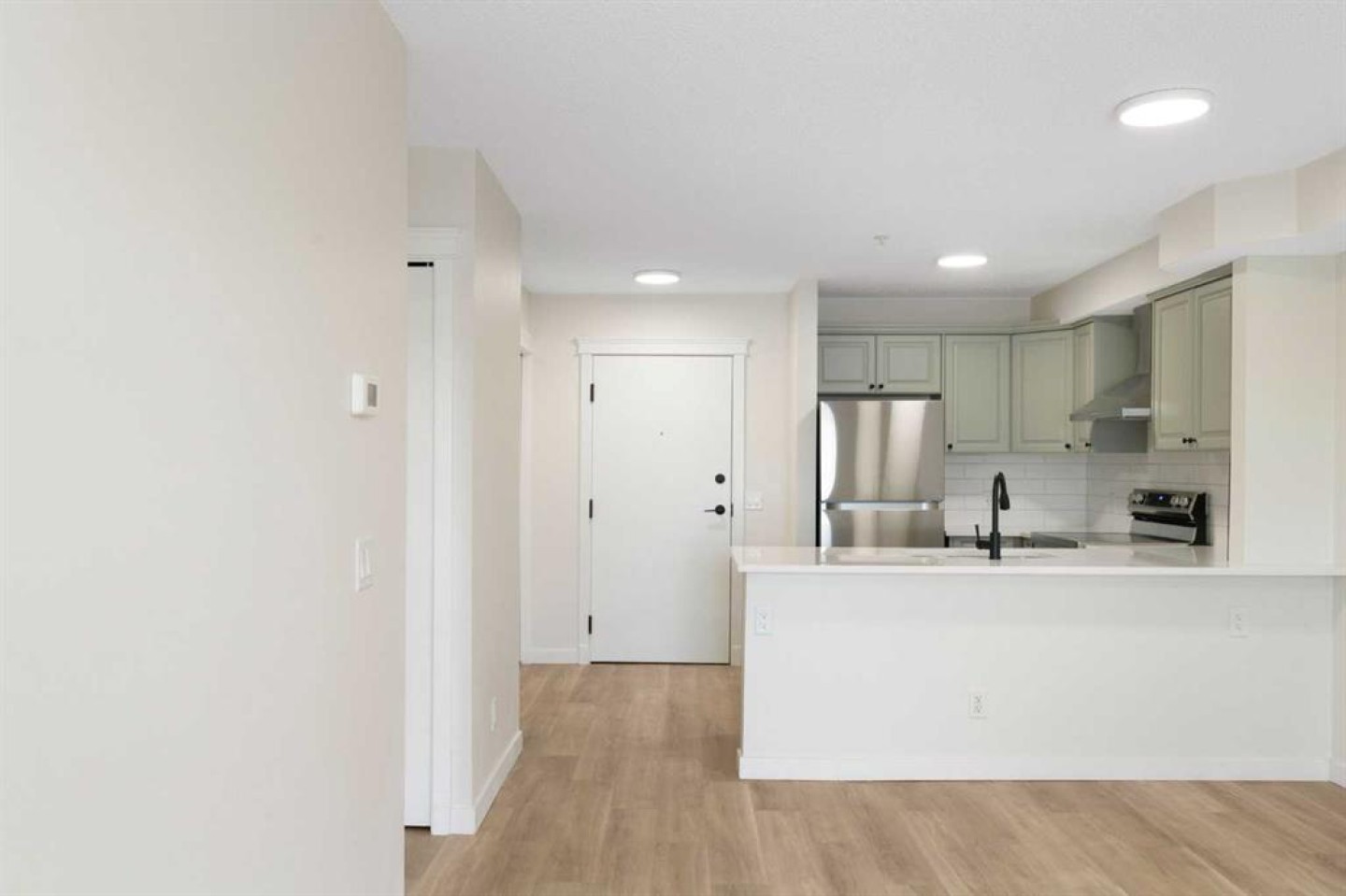 Modern, effortless, and move-in ready. Step into stylish simplicity with this beautifully refreshed 1-bedroom, 1 bathroom, + den retreat nestled in the lively community of Saddle Ridge, one of Calgary’s most convenient and fast-growing neighbourhoods. Designed for modern living, this 588 sq ft gem feels bright, open, and effortlessly inviting from the moment you walk in. Sunlight spills across brand-new luxury vinyl plank floors, while fresh designer tones and updated lighting create a warm, contemporary ambiance that instantly feels like home. Picture yourself preparing the perfect meal in the sleek, upgraded kitchen, where quartz countertops, sparkling stainless steel appliances, and ample cabinetry set the stage for everything from quick breakfasts to cozy dinner nights in. The living area flows naturally to your private balcony; a peaceful perch for morning coffee, evening unwinding, or simply soaking in the quiet views after a long day. Your primary bedroom offers comfort and calm, while the versatile den adapts to your lifestyle: home office, reading nook, fitness corner, or guest space. A refreshed 4-piece bath, in-suite laundry with brand new machines, and a titled heated underground parking stall bring everyday ease and year-round comfort. All of this is set within a secure, well-managed building that adds confidence to your investment and pride to your ownership. With shops, transit, parks, schools, and major routes just minutes away, this condo isn’t just a place to live, it’s a home.