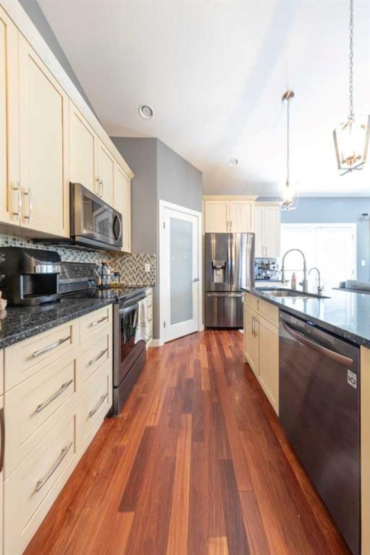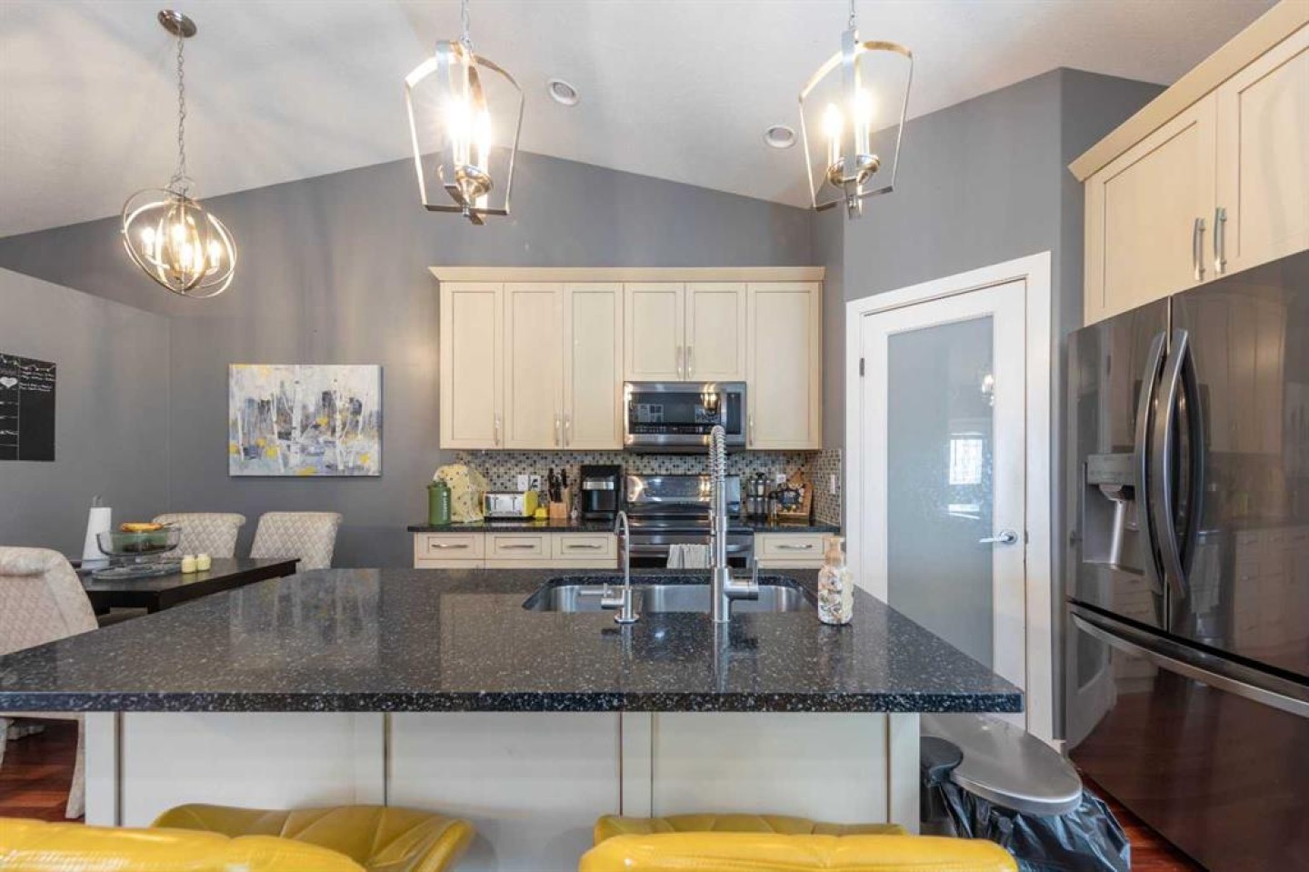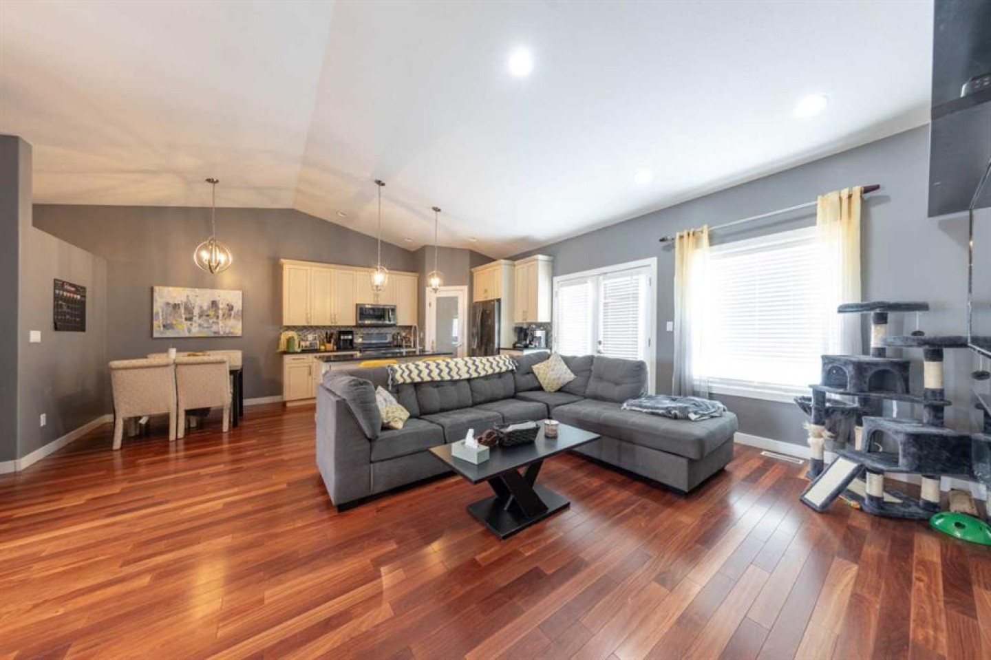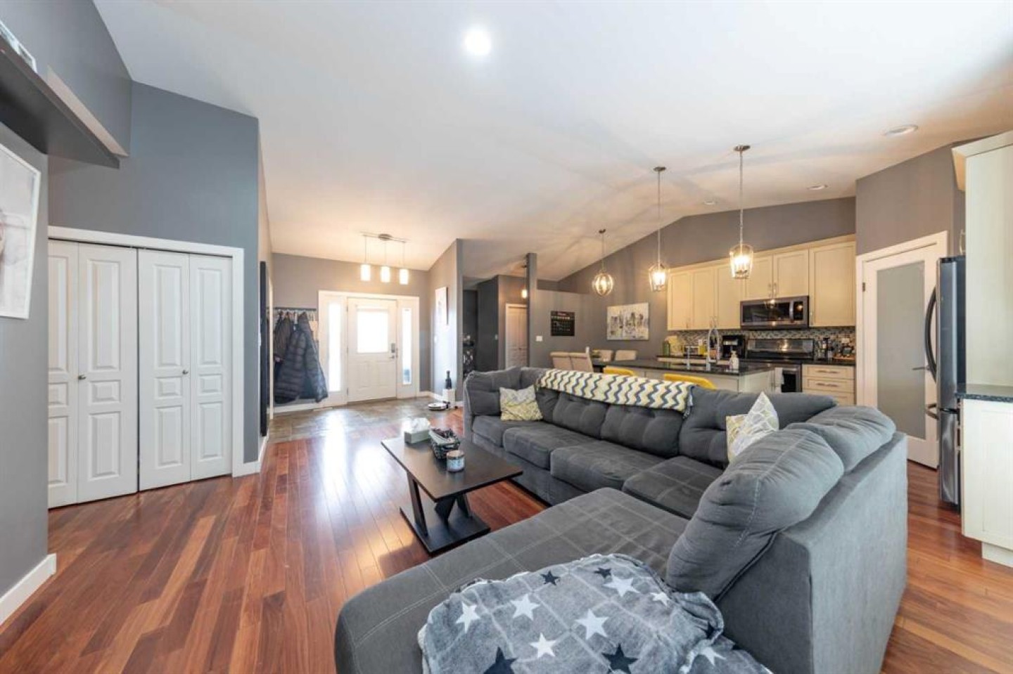 Tucked away on one of Maidstone’s most exclusive streets, this is an extreme find you don’t see come up often. With no back neighbours and wide open space behind you, the privacy here is hard to beat. Built in 2007, this custom raised bungalow offers 5 bedrooms and 3 bathrooms with a layout that feels both modern and welcoming the moment you walk in. The main floor features high ceilings, an open concept design, and hardwood floors flowing through most of the space. The kitchen is built to impress with quartz countertops, a large island with seating, corner pantry, tile backsplash, a smart thermostat, garage door opener, and smart lighting in the main living area and primary bedroom. The primary suite is a true retreat with a spacious walk-in closet and a 5-piece ensuite complete with a soaker tub, separate shower, and dual sinks. Downstairs you’ll find two generous bedrooms, a 3-piece bath, and a massive family room perfect for movie nights, games, or simply unwinding. The 23x24 double attached garage offers plenty of space, there’s room for RV parking, and you’re within walking distance to the school. If you’ve been waiting for a quiet street, strong curb appeal, and true backyard privacy—this one stands in a class of its own.