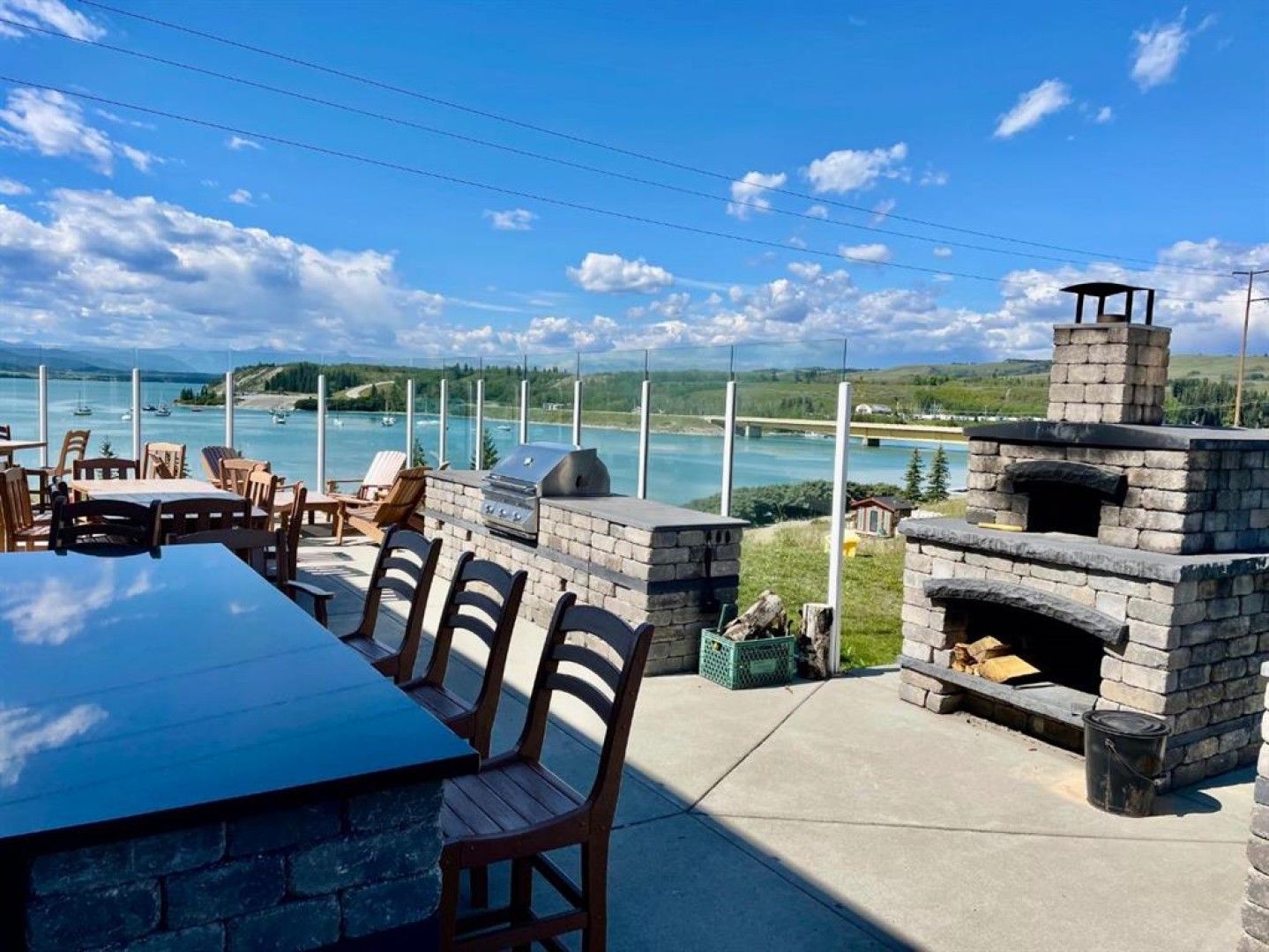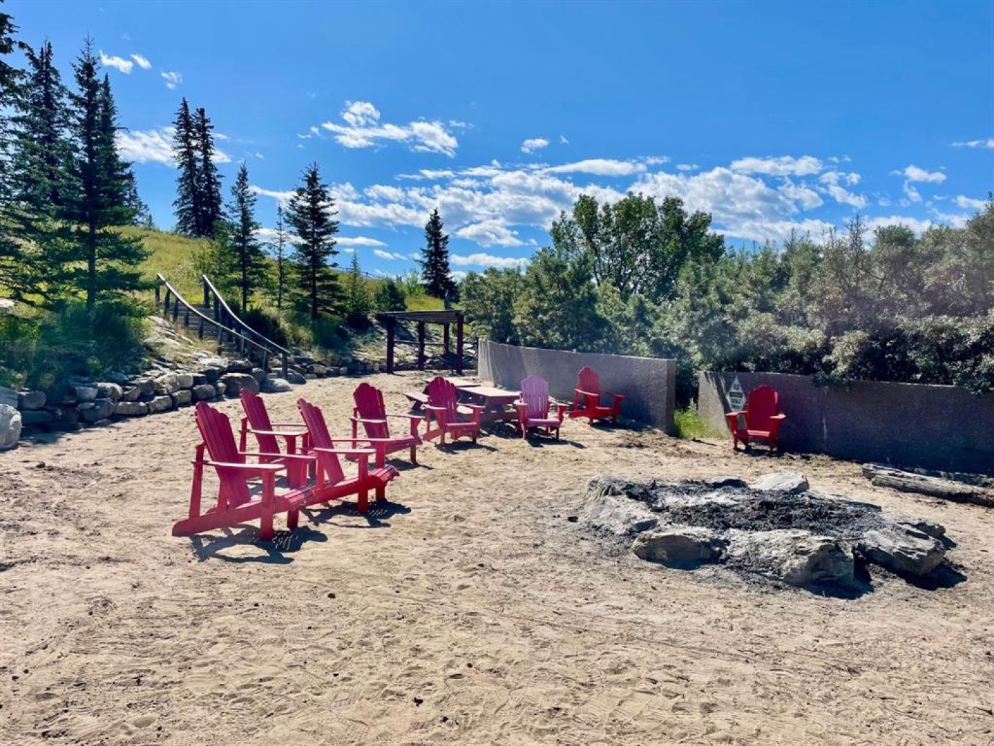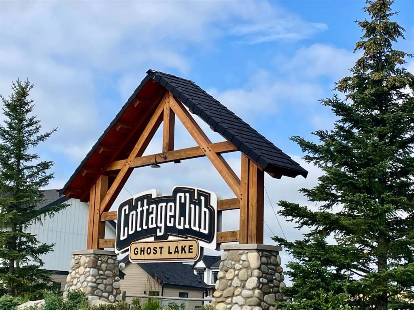Luxury Cottage Retreat in Exclusive Gated Community – CottageClub at Ghost Lake Quality-crafted by True North Mountain Homes, this high-end cottage offers the perfect blend of comfort, style, and privacy in one of Alberta’s most sought-after recreational communities—just 30 minutes west of Calgary. Located in a quiet, gated community in Phase 1, this home backs onto a serene ravine with unobstructed views, offering rare glimpses of Ghost Lake and the Rocky Mountains. Enjoy sunsets on the massive west-facing covered deck with pot lighting—an ideal spot for entertaining or simply relaxing in total privacy. Your east-facing front porch is perfect for morning coffee, all wrapped in charming curb appeal with Hardie Board siding, stone accents, and a wraparound from balcony to front porch. Inside, be greeted by soaring vaulted ceilings with skylights, a chandelier, and in-floor heating on the main level and in all bathrooms. The open-concept kitchen features full-height cabinetry, quartz counters, tile backsplash, and a huge pantry, with a dining area boasting a built-in bench. The living room’s wood stove adds cozy charm, while a retractable wall with a Murphy bed offers flexible guest space. A main-floor 3-piece bath includes a steam shower and quartz counters. And for those hot summer days there is air conditioning. Upstairs, the primary bedroom’s private balcony showcases views of the lake, mountains, and Wildcat Hills. A second bedroom and heated half-bath complete the upper level. The undeveloped lower level has 6 foot ceilings, there is laundry, a second fridge, and ample storage and family room. Gasline brought to the house in 2022 and gas furnace installed in 2022 costing close to $15,000. Driveway 2022 costing over $8,000. Some new blinds in 2022 costing $1,000. Eaves installed too. Community amenities are unmatched—your private beach access, boat launch, and recreation centre with an indoor pool, spray park, outdoor hot tub, gourmet kitchen, fitness room, library, BBQ area, pizza oven, tennis/pickleball courts, community gardens, firepits, and extensive walking trails. Whether you’re looking for a weekend getaway, a summer escape, or year-round living, CottageClub offers a laid-back lifestyle with every convenience. Location: CottageClub at Ghost Lake Bedrooms: 2 + flex sleeping space Bathrooms: 1 full + 1 half Views: Lake, mountains, ravine Proximity: 30 min to Calgary This property’s combination of privacy, quality craftsmanship, and resort-style amenities makes it a rare find. Don’t miss your chance to own a slice of paradise!