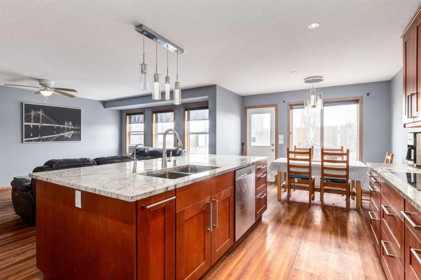 Located on a quiet street in Panorama Hills, this 2-storey home offers a functional layout with five bedrooms plus an upper office and a fully finished basement with a side entrance. The main floor stands out with a larger kitchen than many homes in this price range, featuring an induction cooktop, plenty of counter space, a pantry, and a dining area that opens directly to the backyard deck. The living area is open and comfortable with a fireplace, and the main floor also includes laundry and a half bathroom. Upstairs, the primary bedroom features a walk-in closet and 4-piece ensuite, along with three additional bedrooms, a full bathroom, and a dedicated office for work or study. The fully finished basement adds a large rec room, a fifth bedroom, a full bathroom, storage, and a convenient separate side entrance. Close to walking paths, schools, shopping, parks, and commuter routes, this home offers plenty of space, flexibility, and a layout that gives the next owner room to update, personalize, and build value over time. Come see the potential for yourself.
