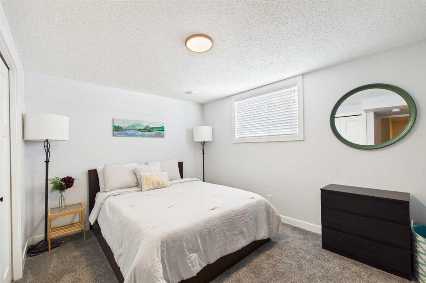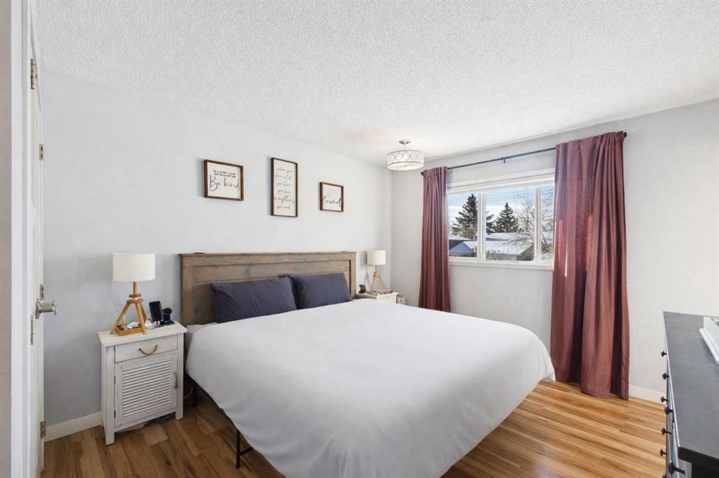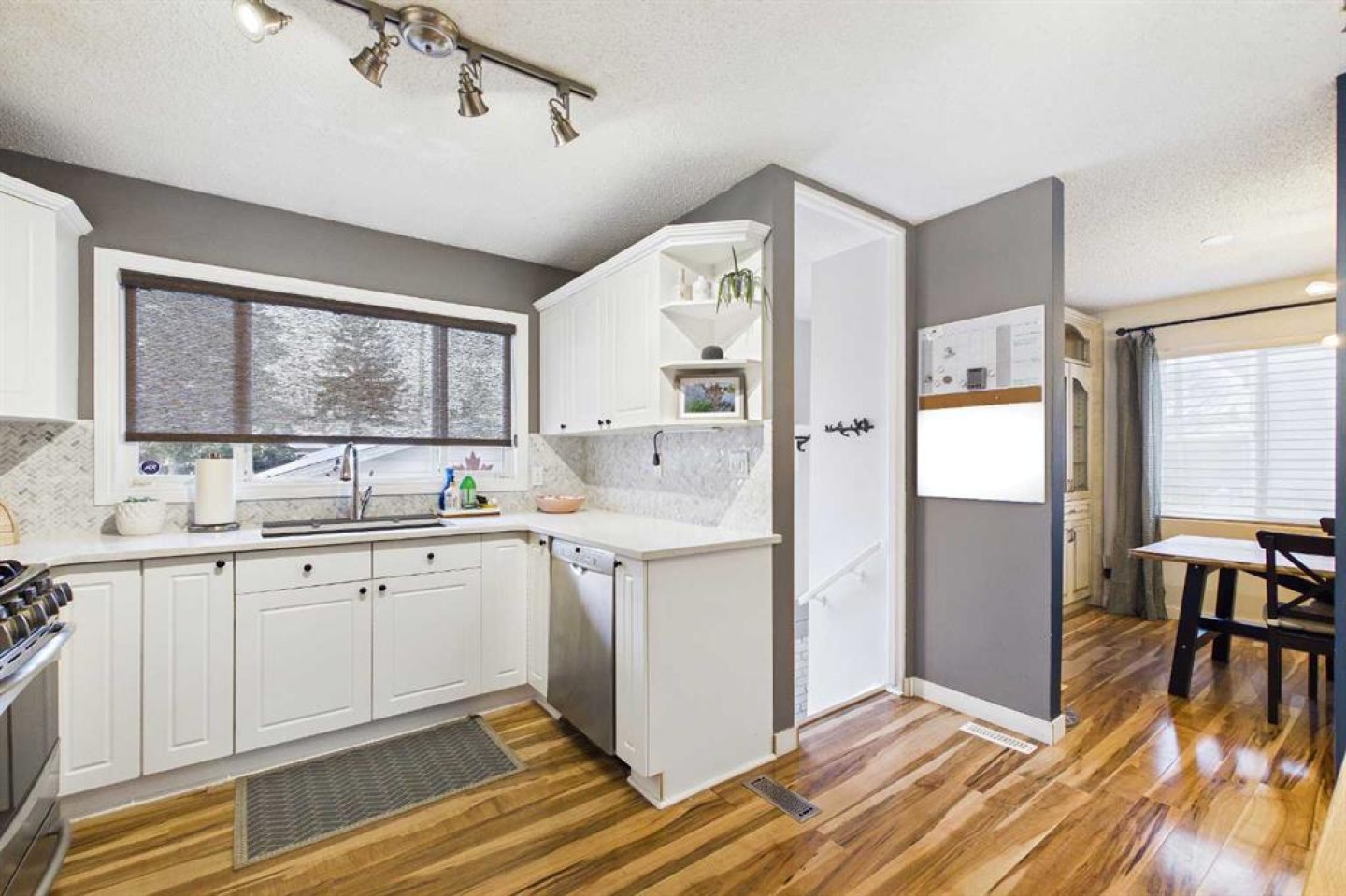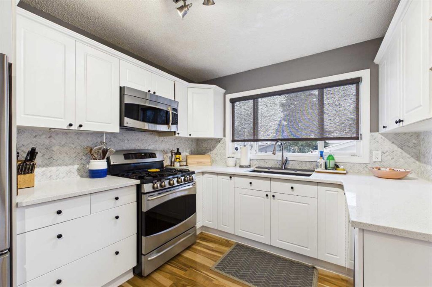 Welcome to this beautifully updated bungalow in sought-after Huntington Hills, where mature trees and lush landscaping create a private, inviting setting. Offering 4 bedrooms, 2.5 bathrooms, and nearly 2200 sqft of development living space, this fully finished home blends thoughtful upgrades with everyday comfort. Step inside to discover stunning durable laminate flooring and a bright, spacious living room designed for both relaxing and entertaining. The redesigned kitchen is a true showpiece, featuring quartz countertops, a stylish backsplash, stainless steel appliances, a gas range, Silgranit undermount sink, with additional prep space. A sunny south-facing window above the sink overlooks the backyard, while the adjacent family-sized dining area is anchored by custom built-in cabinetry. The main level is very functional and offers three bedrooms, including a primary retreat with a private two-piece ensuite and two additional great sized bedrooms. Both the ensuite and main bath are finished with upscale fixtures, granite counters, undermount sinks, with a beautifully tiled tub surround in the main bath. Custom milled solid wood doors with glass transoms add natural light and architectural character throughout. The newer, fully renovated basement expands your living space with impressive upgrades, including full Rockwool sound dampening between floors for enhanced comfort and privacy. A newly added legal bedroom with an oversized closet adds flexibility for guests, extended family or a home office. Enjoy movie nights in your dedicated media room complete with mounted projector and all required in-wall wiring. A new bathroom with radiant in-floor heating and tiled shower adds a luxurious touch, a great space for guests. Additional upgrades and peace of mind include Central air conditioning (2023), Active radon mitigation system (2024), Ring Wired Pro camera doorbell and an Ecobee smart thermostat. Outside, the generous sized south-facing backyard is designed for enjoyment and beautifully landscaped with a stone patio, underground irrigation system, and an insulated double detached garage with tons of room for shelving and storage. Ideally located just minutes to Deerfoot Trail, a quick bus ride to downtown, and walking distance schools, grocery stores and amenities, this home offers exceptional value in an established, family-friendly community. Exceptional Value and pride of ownership shown throughout.