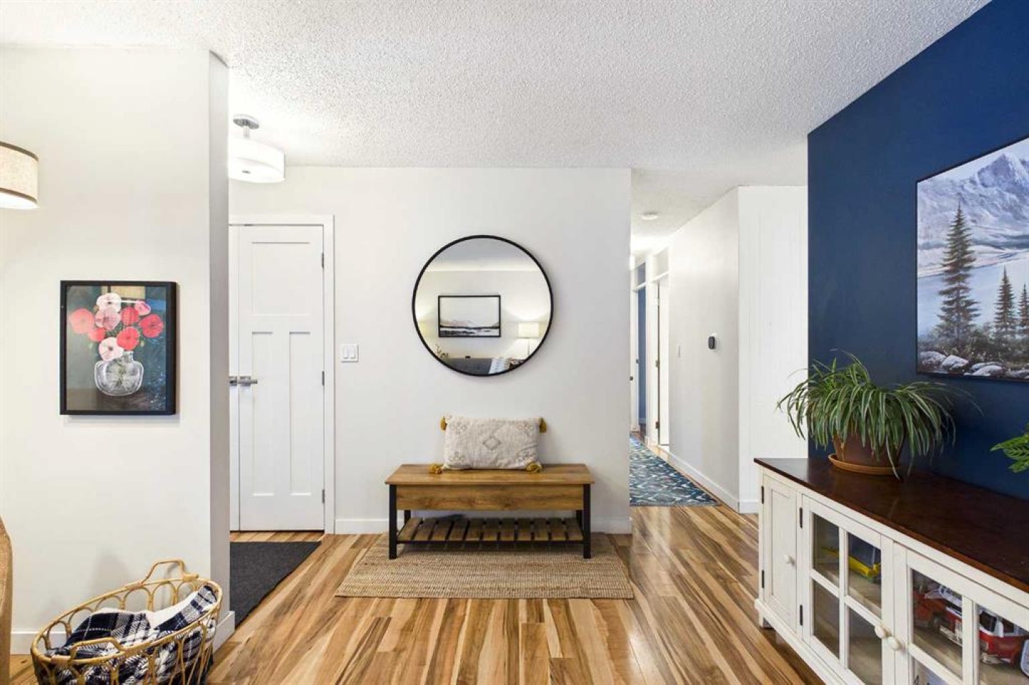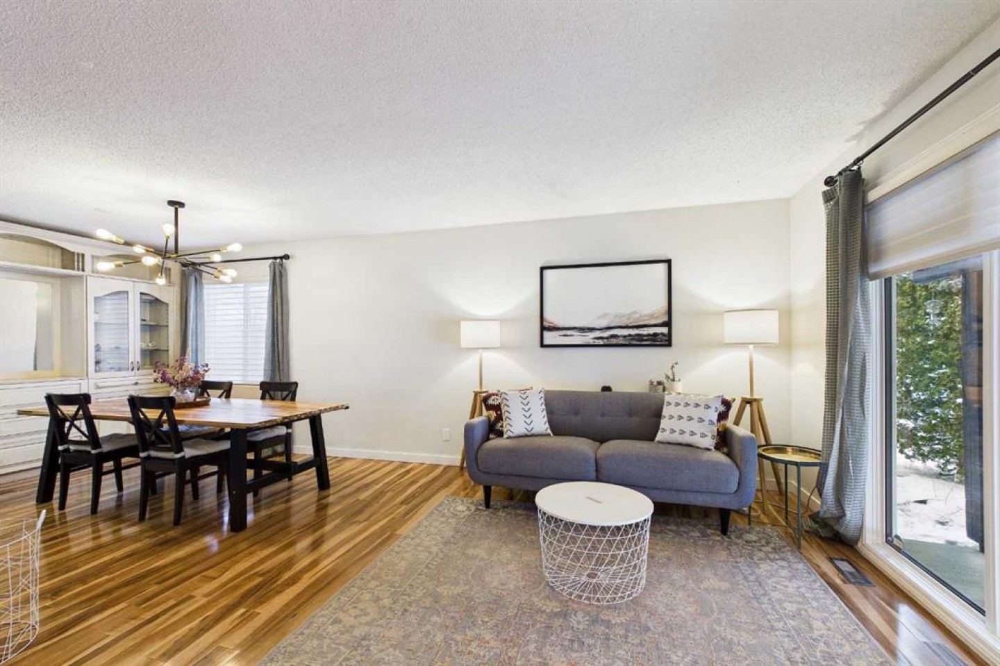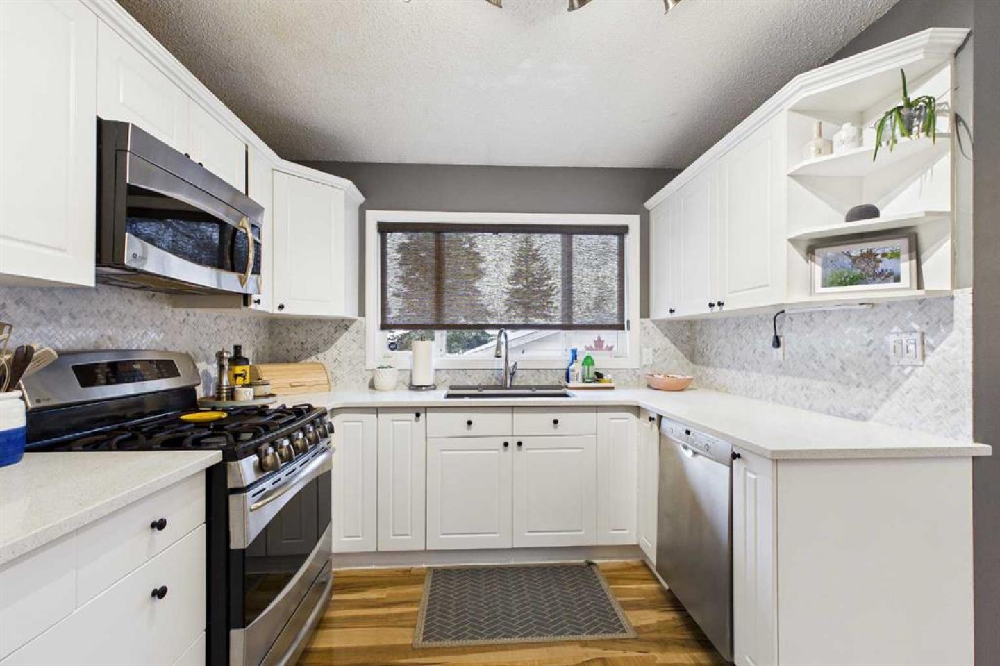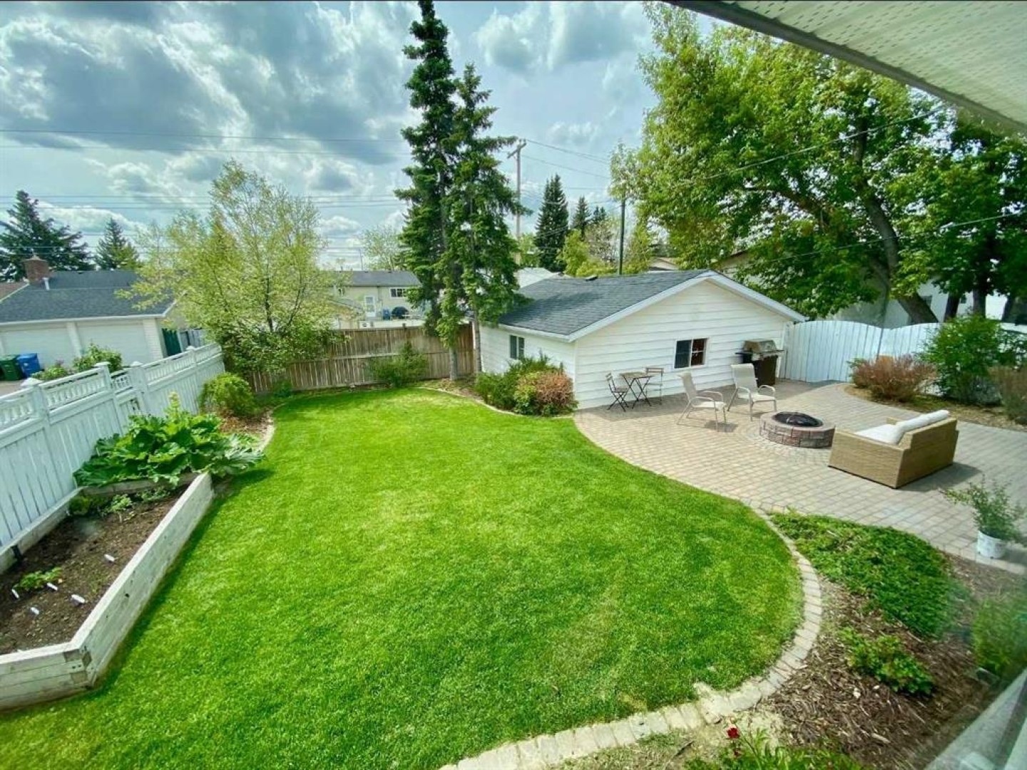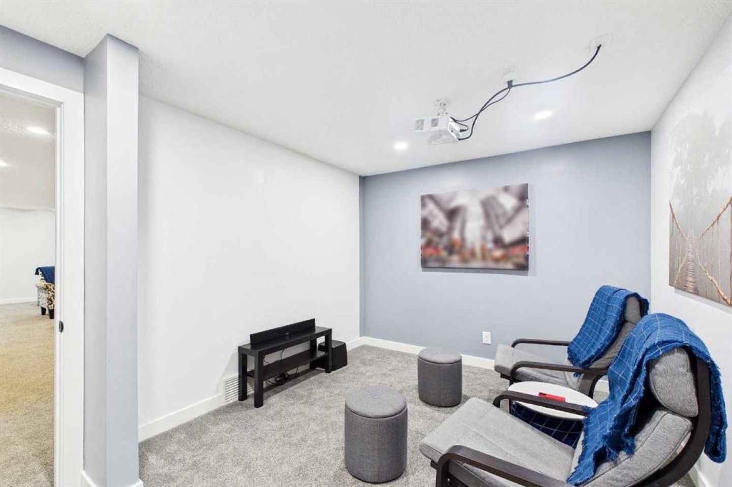 Welcome to this beautifully updated bungalow in sought-after Huntington Hills, where mature trees and lush landscaping create a private, inviting setting. Offering 4 bedrooms, 2.5 bathrooms, and nearly 2200 sqft of development living space, this fully finished home blends thoughtful upgrades with everyday comfort. Step inside to discover stunning durable laminate flooring and a bright, spacious living room designed for both relaxing and entertaining. The redesigned kitchen is a true showpiece, featuring quartz countertops, a stylish backsplash, stainless steel appliances, a gas range, Silgranit undermount sink, with additional prep space. A sunny south-facing window above the sink overlooks the backyard, while the adjacent family-sized dining area is anchored by custom built-in cabinetry. The main level is very functional and offers three bedrooms, including a primary retreat with a private two-piece ensuite and two additional great sized bedrooms. Both the ensuite and main bath are finished with upscale fixtures, granite counters, undermount sinks, with a beautifully tiled tub surround in the main bath. Custom milled solid wood doors with glass transoms add natural light and architectural character throughout. The newer, fully renovated basement expands your living space with impressive upgrades, including full Rockwool sound dampening between floors for enhanced comfort and privacy. A newly added legal bedroom with an oversized closet adds flexibility for guests, extended family or a home office. Enjoy movie nights in your dedicated media room complete with mounted projector and all required in-wall wiring. A new bathroom with radiant in-floor heating and tiled shower adds a luxurious touch, a great space for guests. Additional upgrades and peace of mind include Central air conditioning (2023), Active radon mitigation system (2024), Ring Wired Pro camera doorbell and an Ecobee smart thermostat. Outside, the generous sized south-facing backyard is designed for enjoyment and beautifully landscaped with a stone patio, underground irrigation system, and an insulated double detached garage with tons of room for shelving and storage. Ideally located just minutes to Deerfoot Trail, a quick bus ride to downtown, and walking distance schools, grocery stores and amenities, this home offers exceptional value in an established, family-friendly community. Exceptional Value and pride of ownership shown throughout.