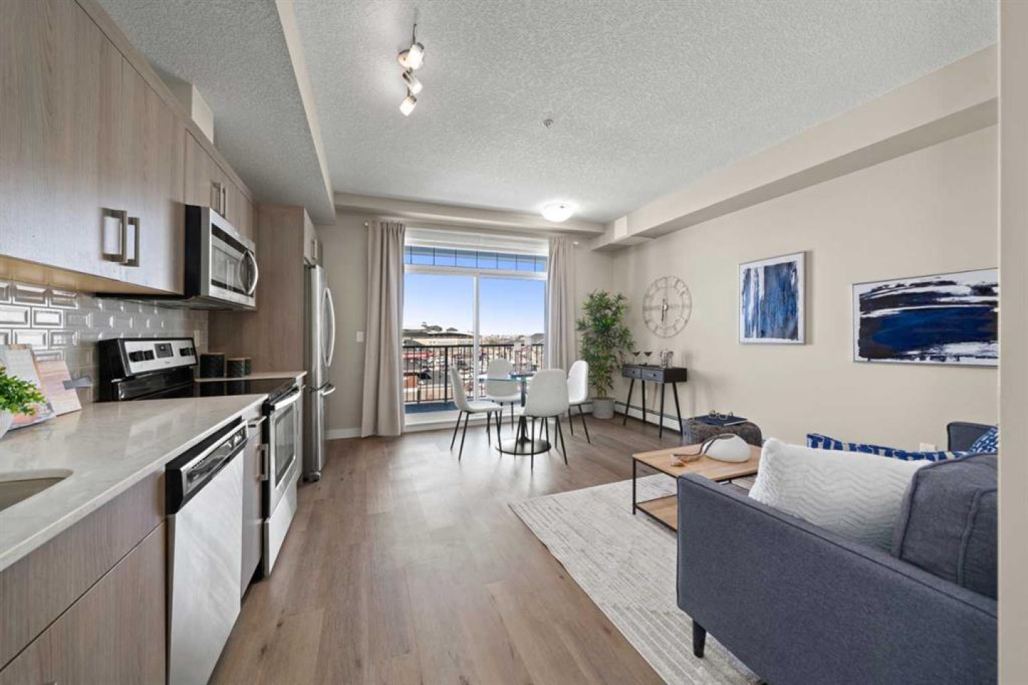 Imagine coming home to a space that feels effortlessly calm, bright, and easy. Perched on the third floor in Auburn Bay, this beautifully maintained one-bedroom suite welcomes you with natural light that pours through the windows and, on clear days, offers a subtle view of the city skyline in the distance. Lovingly cared for by its original owner, the pride of ownership is evident the moment you step inside. The layout is well designed—every square inch thoughtfully planned so there’s no wasted space. The kitchen is truly the heart of the home, with abundant counter space and generous cabinetry that make cooking and entertaining a joy. Whether you’re prepping dinner or hosting a cozy night in, everything has its place. The living area feels open and inviting, while the bedroom offers a peaceful retreat, complete with a transom window that allows soft light to filter through and enhance the tranquil atmosphere. The full bathroom is bright and sparkling, and in-suite laundry adds that everyday convenience. Step outside and you’re within walking distance to Co-op and an incredible array of shops, cafés, restaurants, and services in both Auburn Bay and neighbouring Mahogany—perfect for spontaneous dinner plans or weekend coffee dates. Pet lovers will appreciate that pets are welcome (with board approval), and with a nearby dog park, your four-legged companion will feel just as at home as you do. Added bonuses include a secure, warm, and dry main-floor storage unit and a surface-level parking stall for easy year-round access. This is the kind of home that makes life feel simple, connected, and beautifully manageable—the perfect blend of comfort, convenience, and community.