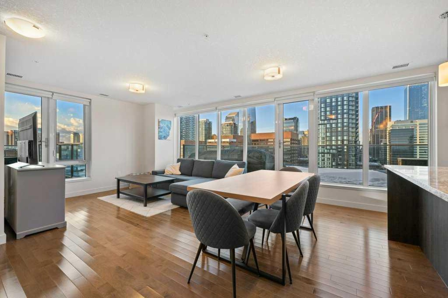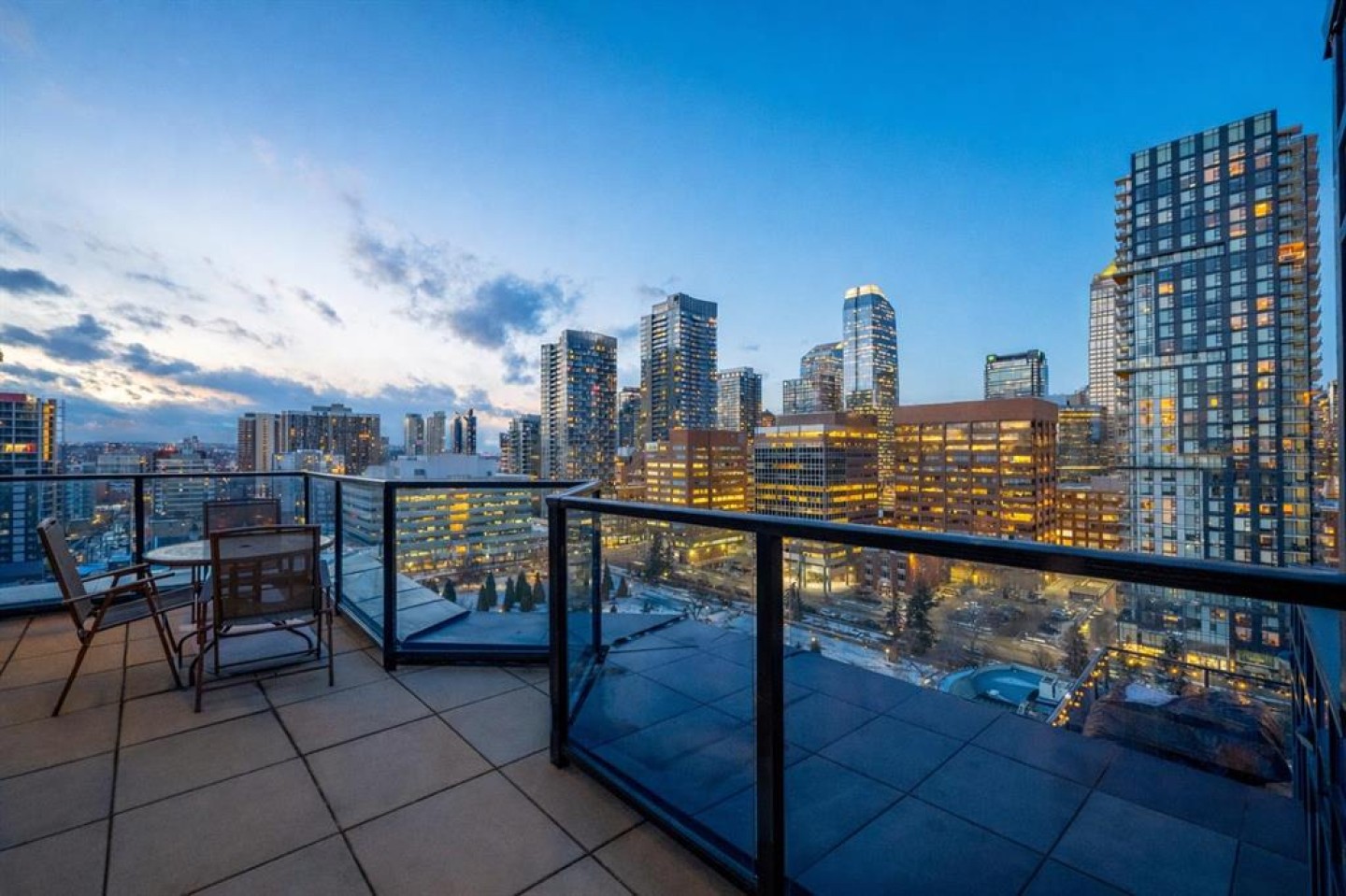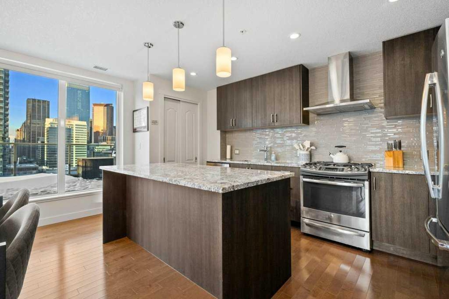 Your front-row seats to the Calgary skyline. A Penthouse feel - without the Penthouse price. Enjoy 2 bedrooms + 2 bathrooms + 2 terraces while overlooking 1 Incredible view. From the moment you walk in, the energy is undeniable. Expansive windows flood the open-concept space with natural light while the city becomes your everyday backdrop. The kitchen delivers both style and function: granite counters, stainless steel appliances, gas range, rich espresso cabinetry, pantry storage and a central island designed for gathering. The living room? Equally suited for movie nights or simply watching the lights of downtown come alive - you may find the skyline steals the show. Once you step outside, everything changes. Nearly 500 sqft of outdoor space unfolds across two oversized terraces - a true rarity in urban living. One is perfectly positioned off the primary suite for quiet morning coffee. The other becomes your summer headquarters - entertaining under the glow of Calgary’s most iconic buildings with friends, laughter and evenings that stretch into the night. The best part about the view? Protected. With Central Memorial Park below, this isn’t just beautiful, it secures long-term value. Back inside, the generous primary retreat features a walk-in closet and spa-inspired 5-piece ensuite, while the second bedroom and adjacent full bath create ideal flexibility for guests or those who work from home. The lifestyle perks continue with an underground parking stall, two storage lockers, onsite concierge, fitness facility, guest suite, community garden + shared terrace, visitor parking with EV charging and loading dock convenience. All positioned in one of Calgary’s most walkable locations - steps to restaurants, cocktail bars, pubs, downtown offices, C-Train access, Stampede grounds and the future arena district. This isn't just a condo - it's a perspective upgrade. Live differently. Live above the city.