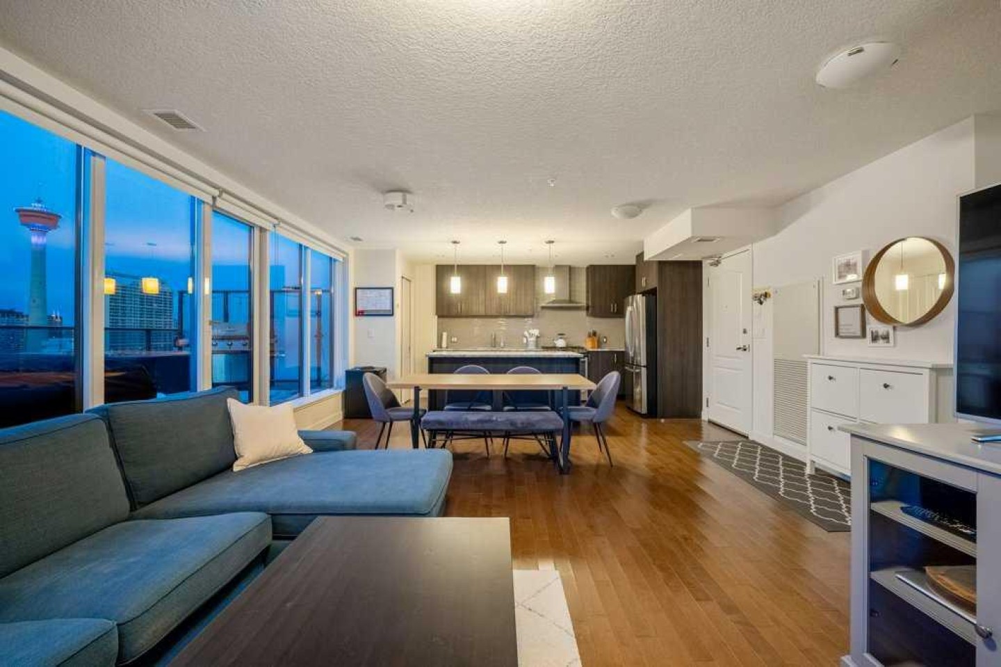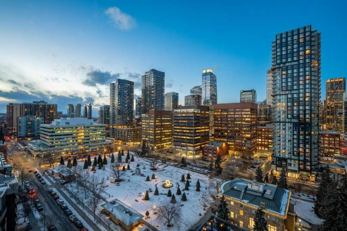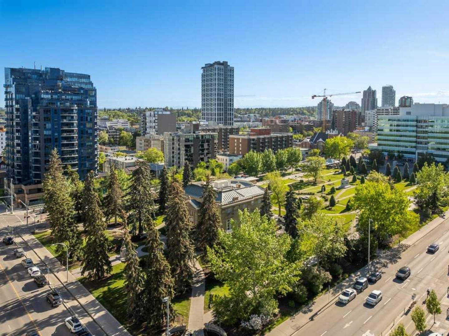 Your front-row seats to the Calgary skyline. A Penthouse feel - without the Penthouse price. Enjoy 2 bedrooms + 2 bathrooms + 2 terraces while overlooking 1 Incredible view. From the moment you walk in, the energy is undeniable. Expansive windows flood the open-concept space with natural light while the city becomes your everyday backdrop. The kitchen delivers both style and function: granite counters, stainless steel appliances, gas range, rich espresso cabinetry, pantry storage and a central island designed for gathering. The living room? Equally suited for movie nights or simply watching the lights of downtown come alive - you may find the skyline steals the show. Once you step outside, everything changes. Nearly 500 sqft of outdoor space unfolds across two oversized terraces - a true rarity in urban living. One is perfectly positioned off the primary suite for quiet morning coffee. The other becomes your summer headquarters - entertaining under the glow of Calgary’s most iconic buildings with friends, laughter and evenings that stretch into the night. The best part about the view? Protected. With Central Memorial Park below, this isn’t just beautiful, it secures long-term value. Back inside, the generous primary retreat features a walk-in closet and spa-inspired 5-piece ensuite, while the second bedroom and adjacent full bath create ideal flexibility for guests or those who work from home. The lifestyle perks continue with an underground parking stall, two storage lockers, onsite concierge, fitness facility, guest suite, community garden + shared terrace, visitor parking with EV charging and loading dock convenience. All positioned in one of Calgary’s most walkable locations - steps to restaurants, cocktail bars, pubs, downtown offices, C-Train access, Stampede grounds and the future arena district. This isn't just a condo - it's a perspective upgrade. Live differently. Live above the city.