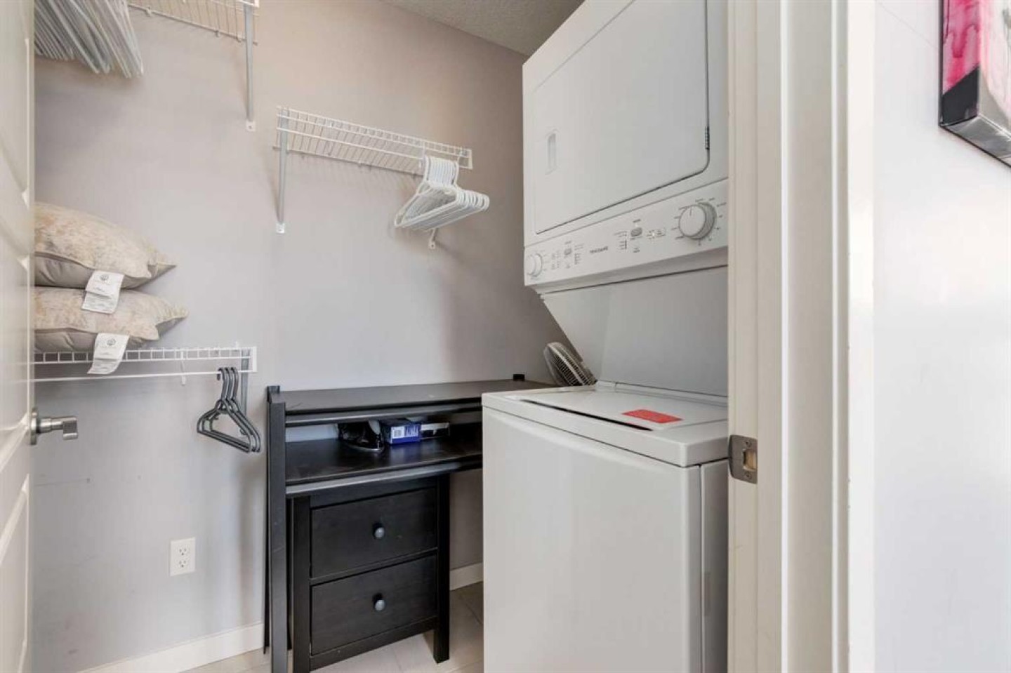 Dishwasher, Electric Stove, Microwave, Range Hood, Refrigerator, Washer/Dryer Stacked, Window Coverings
