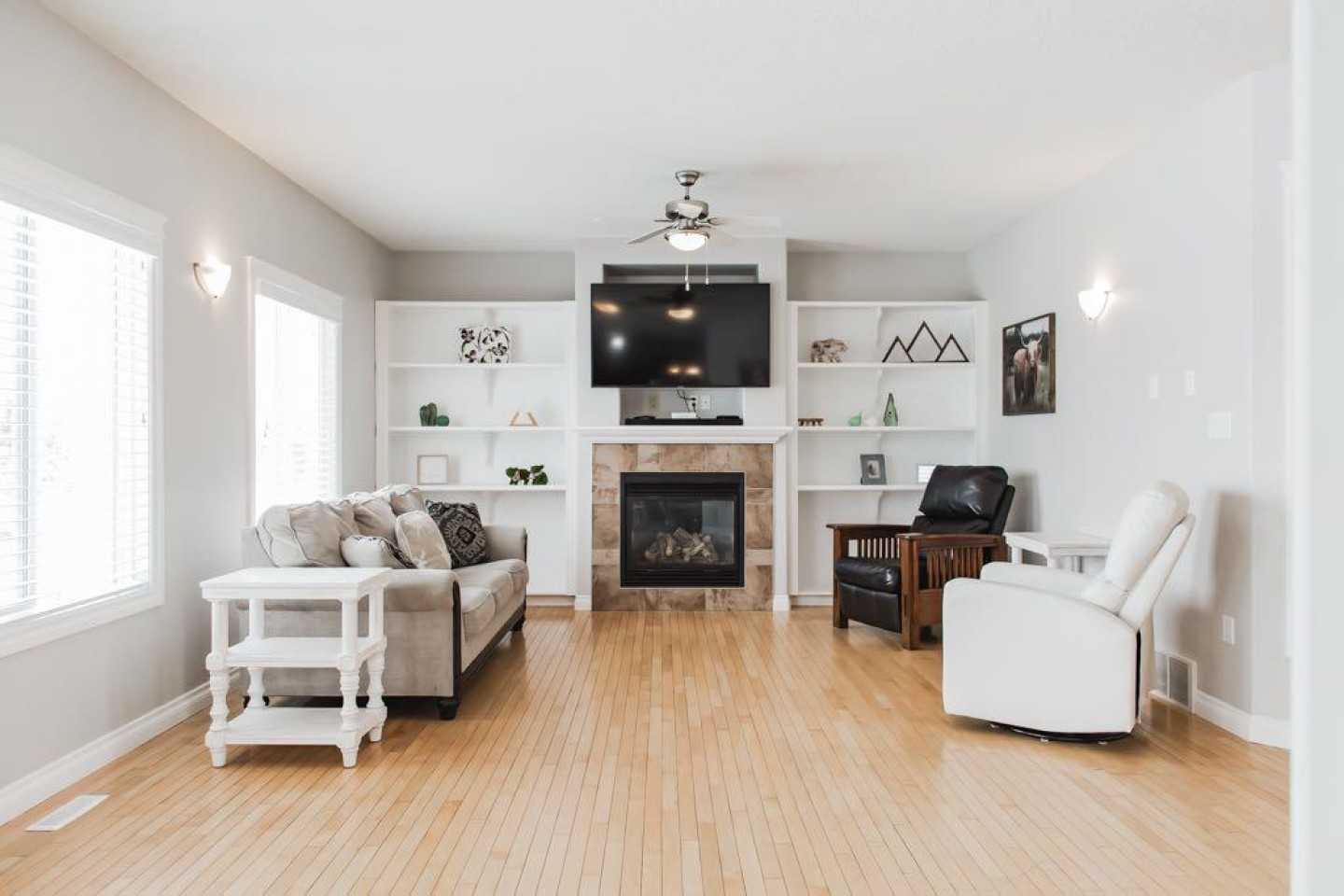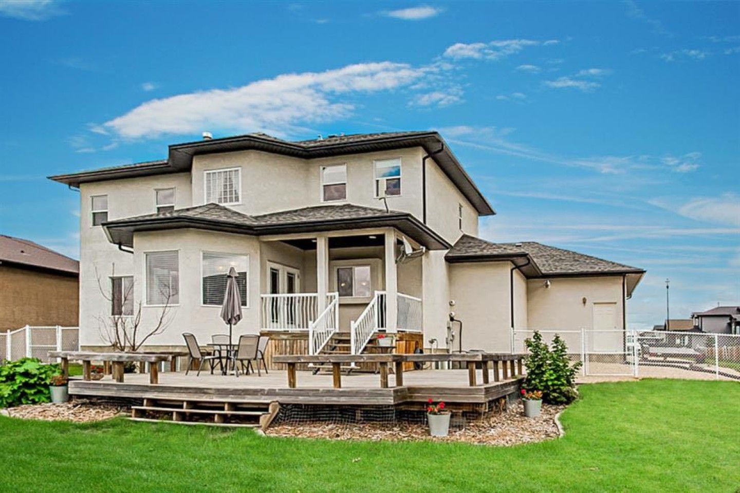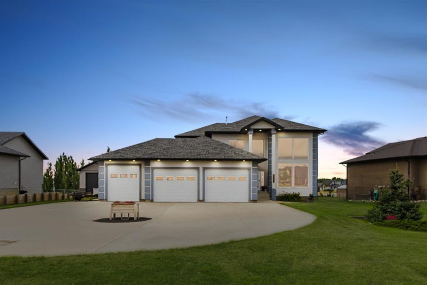 Located in the highly sought after community of Carriage Lane, this home offers the perfect blend of quiet living, strong community, and convenience. Known for its amazing neighbours, family friendly atmosphere, and a community skating rink each winter. With schools nearby and a peaceful setting just minutes from Grande Prairie, it is easy to see why this neighbourhood is so loved. This bright and spacious home features tall ceilings, central air conditioning, and large windows throughout, including floor to ceiling windows at the front of the home that fill the space with natural light. The main floor offers a formal living room, flex space, and a cozy family room with fireplace that flows into the dining area and kitchen. The kitchen includes stainless steel appliances, a pantry, and access to the partially covered deck that leads to a larger deck space overlooking the beautifully fenced west facing backyard. There is also a convenient half bathroom and laundry room with sink. Plenty of storage complete the main floor, with direct access to the triple attached garage. The upper level features a spacious primary retreat with a walk in closet and a stunning three sided fireplace shared with the ensuite. The ensuite includes a large jetted soaker tub, double vanity, and walk in shower with dual showerheads. Two additional bedrooms and a full bathroom complete the upper level. The basement offers a large recreation area with wet bar, one bedroom, flex space and a full bathroom, along with plenty of storage. With incredible natural light, generous living space, and a layout designed for both everyday living and entertaining, this property is ready to welcome its next owners.