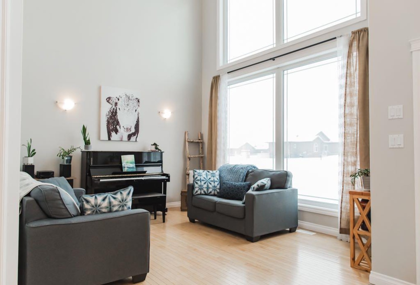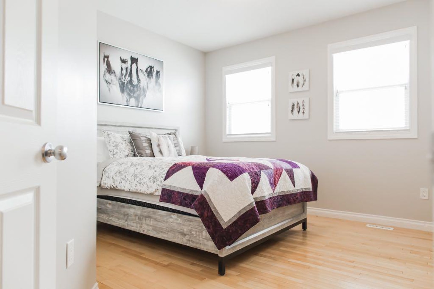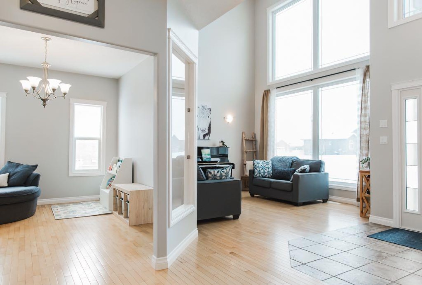 Located in the highly sought after community of Carriage Lane, this home offers the perfect blend of quiet living, strong community, and convenience. Known for its amazing neighbours, family friendly atmosphere, and a community skating rink each winter. With schools nearby and a peaceful setting just minutes from Grande Prairie, it is easy to see why this neighbourhood is so loved. This bright and spacious home features tall ceilings, central air conditioning, and large windows throughout, including floor to ceiling windows at the front of the home that fill the space with natural light. The main floor offers a formal living room, flex space, and a cozy family room with fireplace that flows into the dining area and kitchen. The kitchen includes stainless steel appliances, a pantry, and access to the partially covered deck that leads to a larger deck space overlooking the beautifully fenced west facing backyard. There is also a convenient half bathroom and laundry room with sink. Plenty of storage complete the main floor, with direct access to the triple attached garage. The upper level features a spacious primary retreat with a walk in closet and a stunning three sided fireplace shared with the ensuite. The ensuite includes a large jetted soaker tub, double vanity, and walk in shower with dual showerheads. Two additional bedrooms and a full bathroom complete the upper level. The basement offers a large recreation area with wet bar, one bedroom, flex space and a full bathroom, along with plenty of storage. With incredible natural light, generous living space, and a layout designed for both everyday living and entertaining, this property is ready to welcome its next owners.