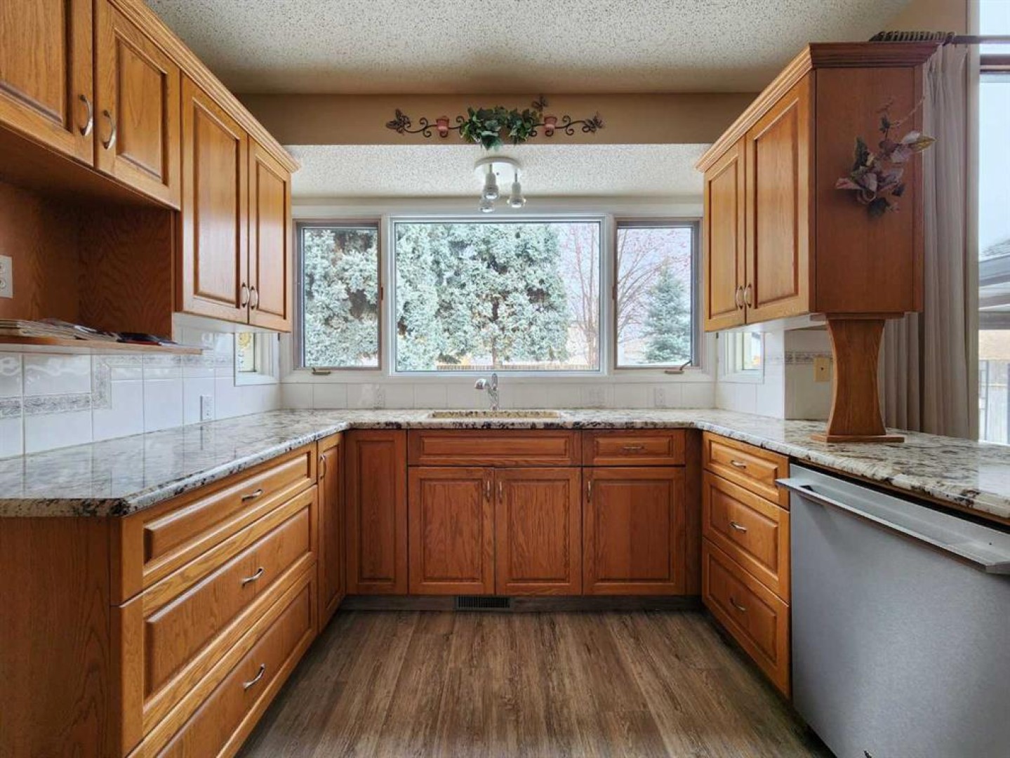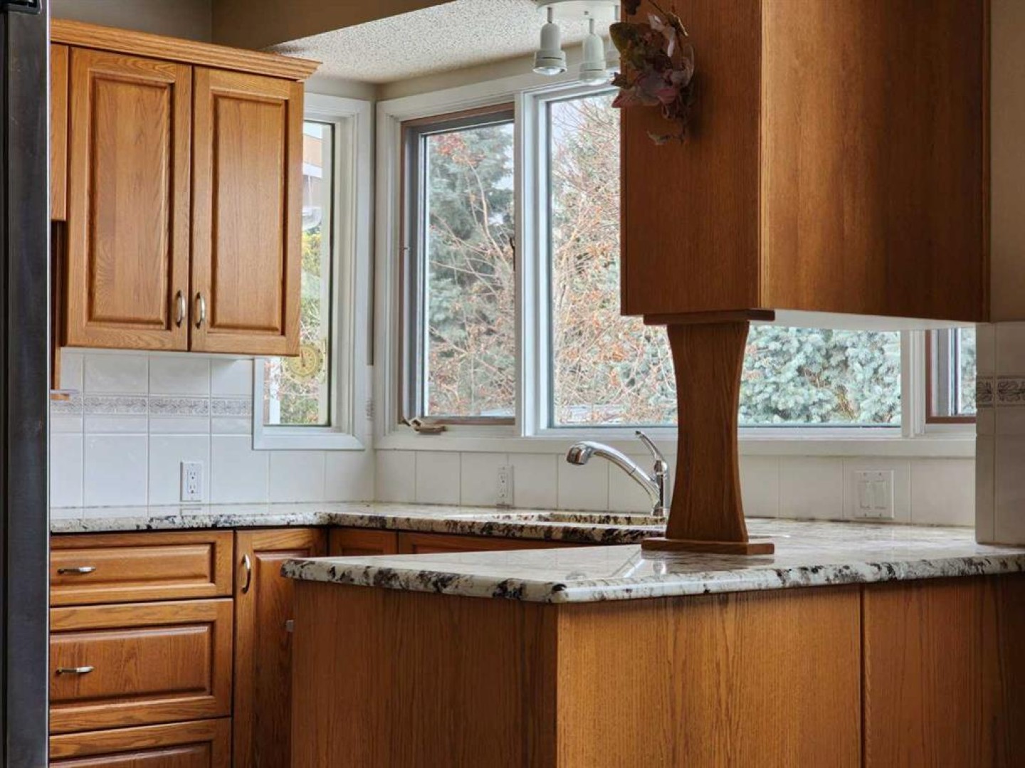 Welcome to this well-maintained 4-level split in the highly desirable Redwood neighbourhood! Offering a double attached garage plus convenient rear RV parking, this versatile home features 2 bedrooms with potential for 2 additional bedrooms in the lower basement—perfect for growing families or those needing extra space. You’ll appreciate the thoughtful layout with 3 bathrooms, including a shower at the entry to the sauna (sauna sold as is). The inviting sunken living area is highlighted by a cozy gas fireplace and direct access to the patio, complete with a gas hookup—ideal for outdoor entertaining. The home also boasts central A/C, granite countertops, and stainless steel appliances, along with an abundance of closet space and storage throughout. The primary bedroom offers a unique studio/bonus area in addition to a convenient 2-piece ensuite, creating a flexible retreat for work, hobbies, or relaxation. Large, generous windows fill the home with natural light, while the nicely landscaped yard provides a welcoming outdoor setting. Located within walking distance to multiple parks and a convenience store, and offering easy access to 43 Street, Highway 4, and 24 Avenue South, this Redwood gem combines comfort, functionality, and an unbeatable location.