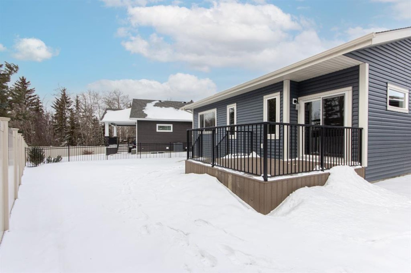 Ready to downsize but not ready for a duplex or apartment living? Welcome to low maintenance living in The Timbers, where a small monthly fee handles yard maintenance and snow shovelling year round! This stunning community offers executive single-family homes that come fully fenced and landscaped, with no restrictions on age or pets, and all of your yard work, mowing, and shovelling in the winter are taken care of for you! Offering a bright and open floor plan with 9' ceilings, main floor laundry, quartz counter tops, and beautiful modern finishes throughout. The two tone kitchen features raised cabinetry, stainless steel appliances, quartz countertops, a large island with under mount granite sink and bar seating, and a spacious corner pantry. Sliding patio doors off the dining area lead out to a spacious deck overlooking the yard, and the adjacent living room is a great place to relax and unwind. The primary bedroom features a large walk in closet and a beautiful spa like ensuite with a freestanding soaker tub, walk in shower, and his and hers sinks. There is also a den/office space at the front of the home, and a convenient powder room down the hall. The fully finished basement offers a huge family and rec room area, two large bedrooms, a 4 pce bath, and has also been roughed-in for in-floor heat. The garage is fully drywalled, insulated, taped, and roughed in for a heater, and there's a convenient floor sump to help keep floors clean in the winter months. Out back, your fully fenced and landscaped yard enjoys a South facing composite deck for the ultimate in low maintenance enjoyment. Condo fees of $223.98 cover lawn mowing, snow shovelling, and maintenance of all common areas, trails, and green spaces. A poured concrete front driveway, front landscaping, fencing, and rear sod will all be completed in 2026 as weather permits. The builder can complete Central A/C, a garage heater, or provide allowances for a washer and dryer and window coverings through the builders suppliers at an additional cost. GST is already included in the purchase price, and 1 year builder warranty and balance of 10 year Alberta New Home Warranty are included. Taxes have yet to be assessed. Immediate possession is available!