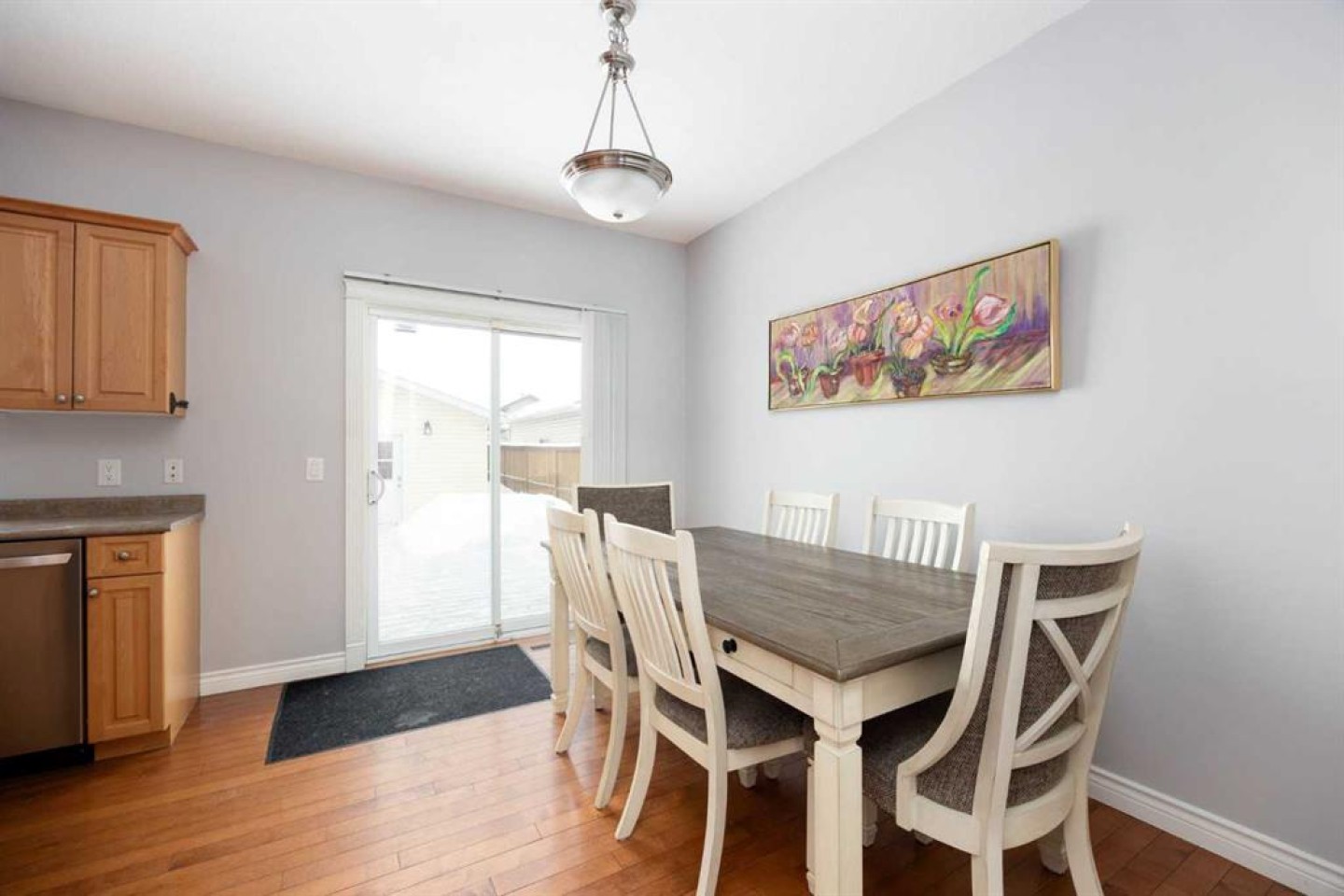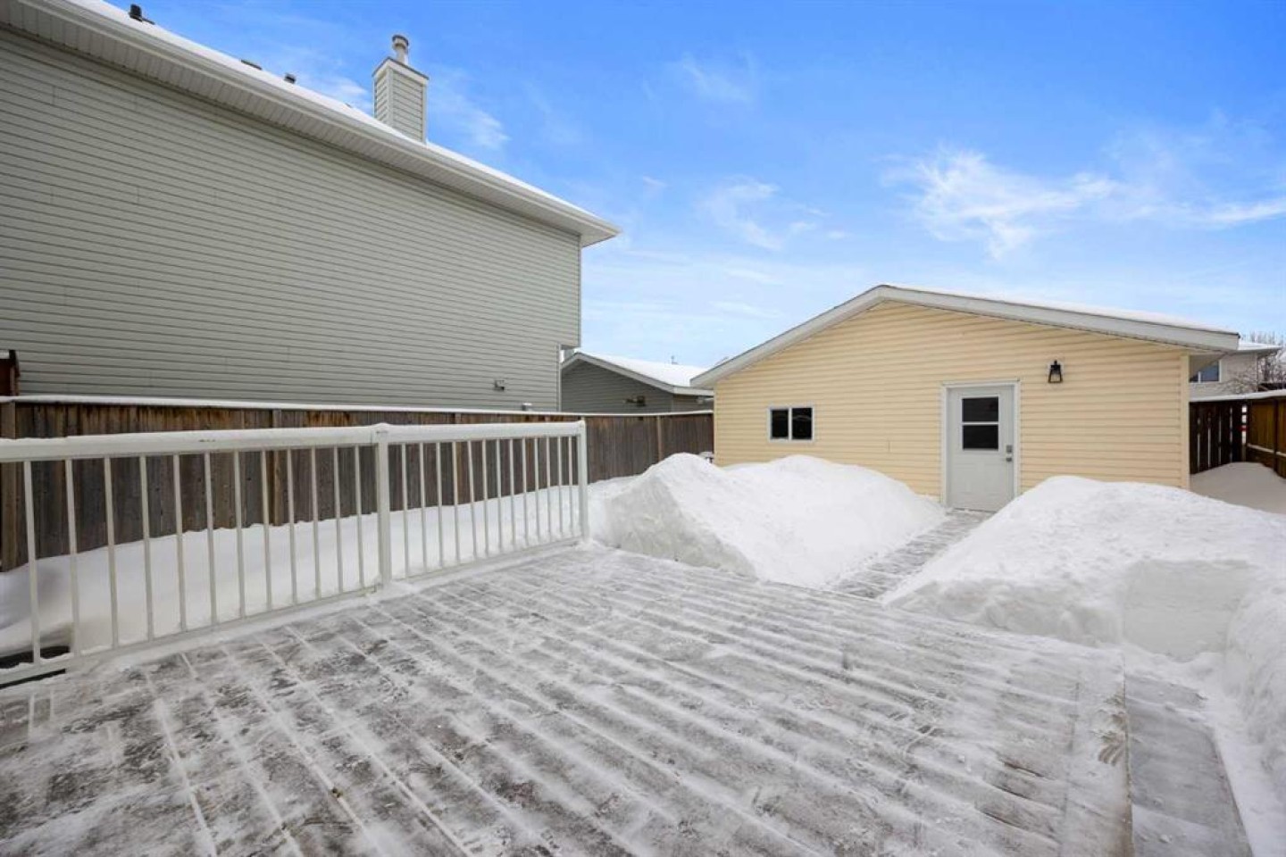 Welcome to this charming 2-storey single-family detached home tucked away on a quiet crescent in the mature community of Timberlea, offering the perfect blend of comfort, functionality, and everyday appeal. With inviting curb presence, a front yard and a fully fenced backyard, plus convenient back alley access just 1 door down, this property is designed for easy living. Step inside to a bright and open living room featuring a beautiful bay window and cozy electric fireplace, creating a warm and welcoming space to gather. The dining area flows seamlessly into the spacious kitchen, complete with hardwood flooring, walk-in pantry, stainless steel appliances, and a brand new dishwasher (2024), while patio doors off the dining room lead to a large deck overlooking the backyard - ideal for summer BBQs and relaxing evenings around the fire pit. The main floor also offers a convenient half bathroom for guests. Upstairs, luxury vinyl plank (LVP) flooring runs throughout 3 generous bedrooms, including a very spacious primary bedroom highlighted by 2 large windows that flood the room with natural light, a ceiling fan for added comfort, and a walk-in closet with built-in shelving. The full bathroom features a double vanity and a tub/shower combination with access from both the hallway and directly from the primary bedroom, offering thoughtful functionality for busy mornings. The fully developed basement adds even more living space with a rec room accented by crown molding, a full bathroom with a tiled tub/shower combination, and a laundry area featuring washer and dryer (both updated in 2023). Comfort is top of mind with air conditioning and a hot water tank updated in 2023. Outside, the OVERSIZED DOUBLE DETACHED GARAGE is heated, painted, insulated, includes built-in shelving and is accessed from the back alley, providing ample parking and workspace year-round. Located close to schools, parks, and everyday amenities, this home offers exceptional value in an established neighbourhood. Whether you’re upsizing, downsizing, or buying your first home, this Timberlea gem is ready to welcome you.