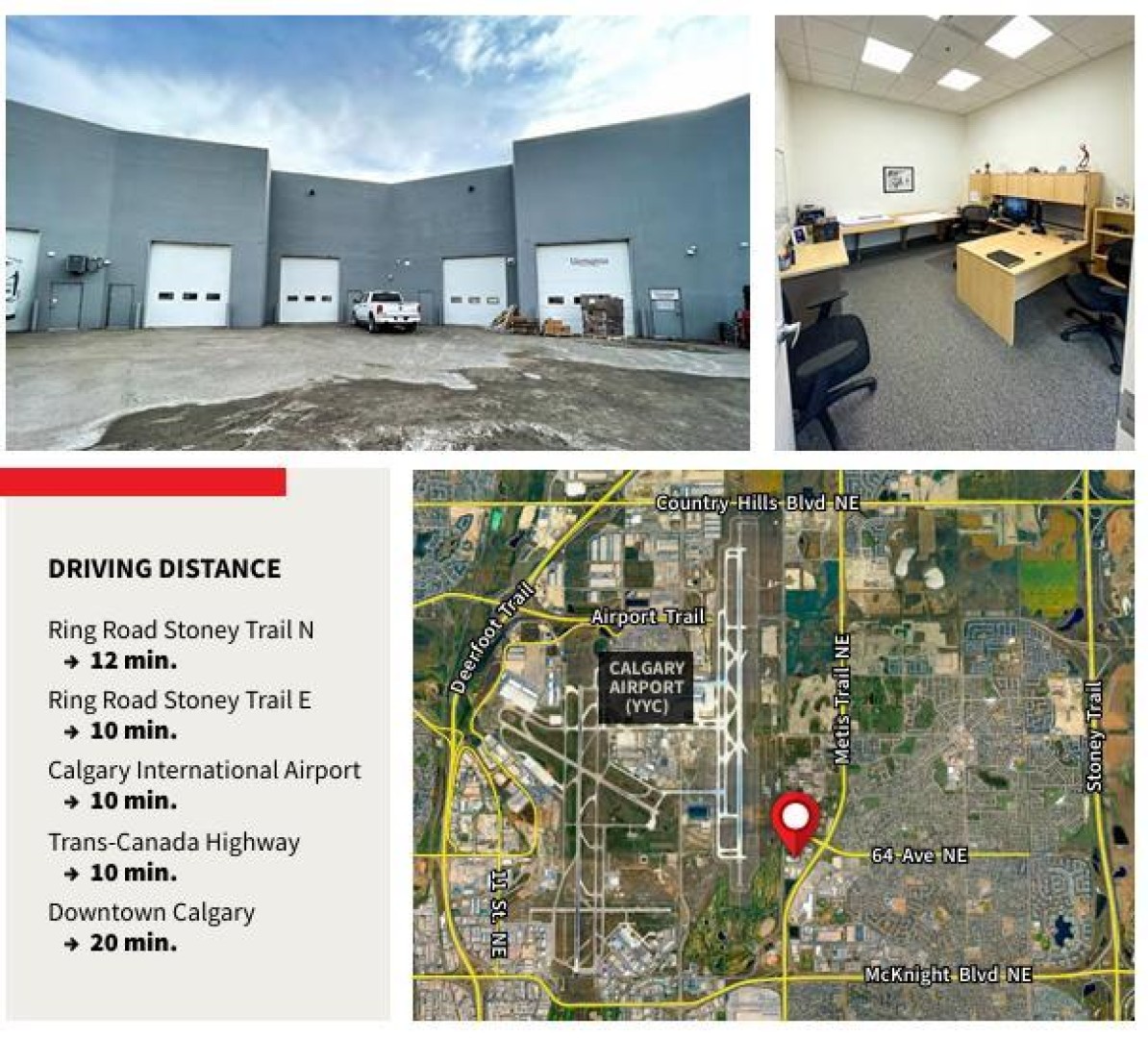 Premium 5,470 sq ft industrial bay in the highly sought-after Westwinds District, offering a functional blend of high-end office space and clean warehouse. Zoned I-B, this property features 2,713 sq ft of professional office buildout complemented by 2,757 sq ft of well-maintained warehouse space. The warehouse is equipped with two 12’ x 14’ drive-in loading doors, an air exchange system, and 100 Amp power at 600 Volts per bay (TBV), making it well-suited for a variety of industrial or commercial operations. Strategically located just 10 minutes from Calgary International Airport, approximately 12 minutes to Stoney Trail North and 10 minutes to Stoney Trail East, this property offers excellent connectivity and convenient access for logistics, staff, and clients alike.