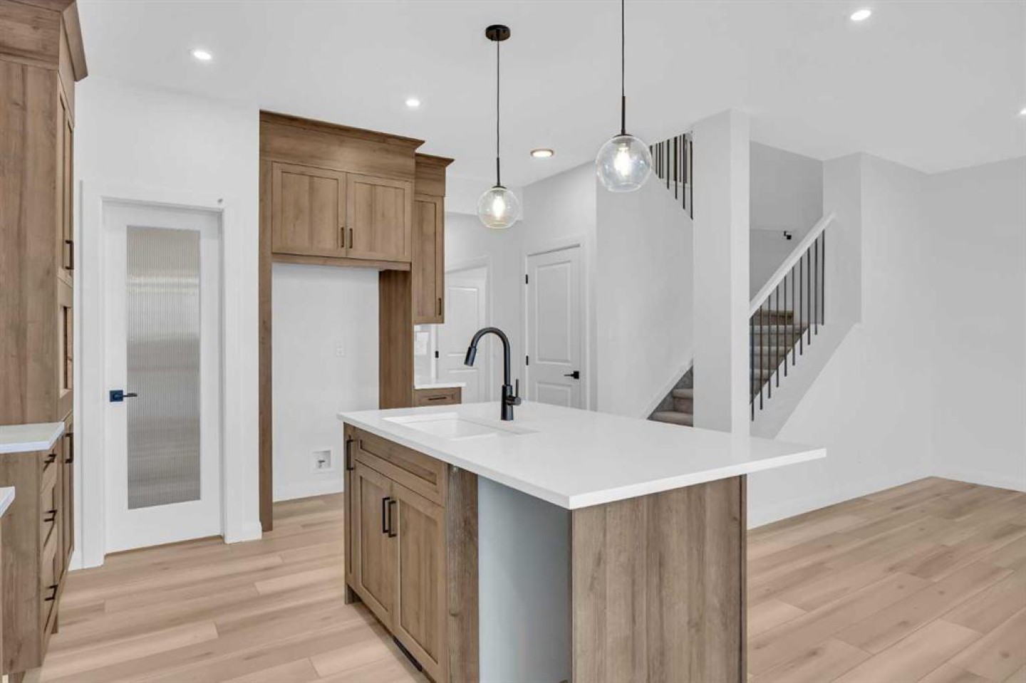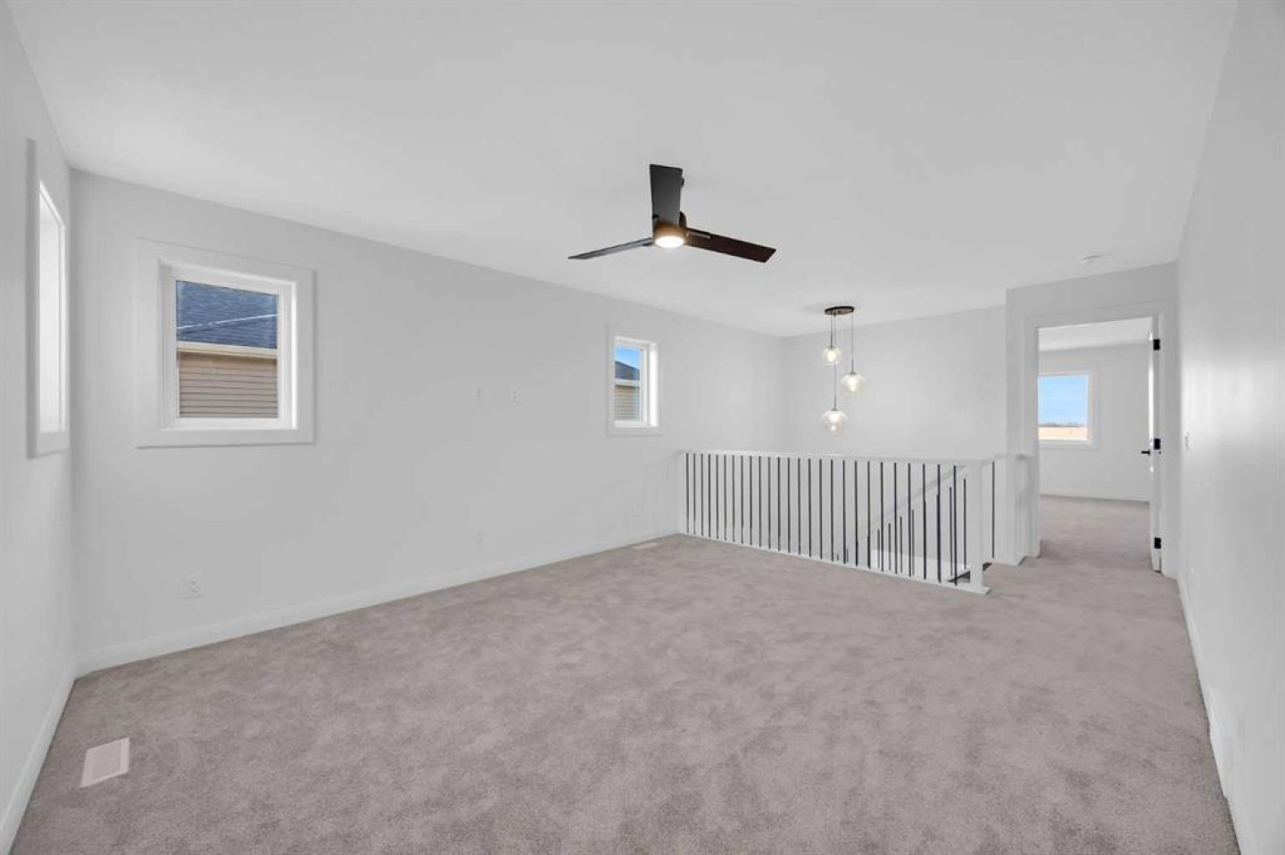 Welcome to the York by Broadview Homes in Painted Sky, Langdon, offering 2,096 square feet above grade, a rare triple attached garage, and immediate possession. Homes with this size, layout, and garage capacity are limited in Langdon. The main floor is designed with purpose. The foyer sits beside a dedicated flex room, creating true separation for a home office or private workspace. At the rear of the home, the open kitchen, dining area, and living room are positioned for connection and functionality. The kitchen is anchored by a large central island and features a walk-through pantry that connects directly to the mudroom and garage, a practical detail that supports everyday living. The living room is centered around an electric fireplace finished with floor-to-ceiling tile, creating a strong architectural focal point and a clean, modern statement. Rear windows bring in natural light and enhance the overall sense of space. Upstairs, the centrally located bonus room creates privacy between the primary suite and the additional bedrooms. The primary retreat includes a walk-in closet and an ensuite with double vanities, a soaker tub, and a tiled shower. Two additional bedrooms, a full bathroom, and a dedicated second-floor laundry room complete the upper level with a layout that is efficient and well considered. The triple attached garage offers exceptional capacity for vehicles, storage, or hobby use, a feature rarely available in this segment of the Langdon market. The unfinished basement features 9 foot ceilings, providing a more open feel and strong potential for comfortable future development. Located in Painted Sky, residents enjoy access to parks, pathways, playgrounds, and walking distance to Langdon School and Horseshoe Crossing High School. Just 20 minutes east of Calgary and 15 minutes to Chestermere, this community offers small-town living with convenient commuter access.