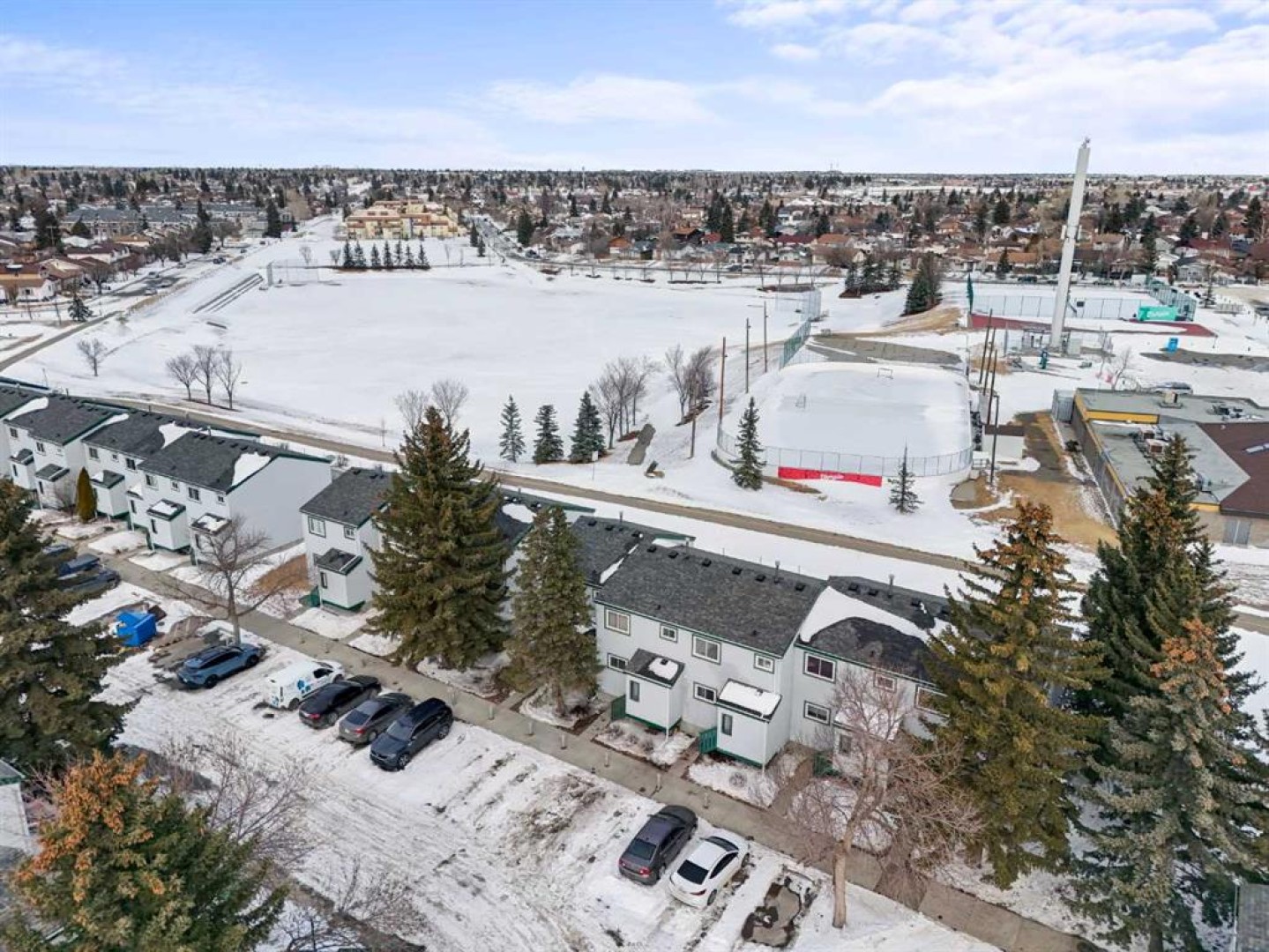 Investor or first-time buyer opportunity in Temple. Fully finished 3-BEDROOM TOWNHOME backing onto GREENSPACE in the established community of Temple — offering 1,666 SQ FT of DEVELOPED LIVING SPACE. FRESHLY PAINTED in 2026, this home presents a solid opportunity for FIRST-TIME BUYERS, INVESTORS, or those looking to ADD VALUE in a well-located neighborhood. The main floor features a functional KITCHEN complete with 2025 NEW GRANITE COUNTERTOPS, NEW KITCHEN FLOORING, WHITE CABINETRY, and TILE BACKSPLASH, plus a distinctive H-STYLE PASS-THROUGH opening connecting the kitchen to the dining and living areas, creating an OPEN FEEL while maintaining defined spaces. The spacious living and dining area provides direct access to the PRIVATE, FULLY FENCED BACKYARD featuring a GATE for immediate access to the GREENSPACE for added privacy and open views. Upstairs includes THREE WELL-SIZED BEDROOMS with 2025 NEW CARPETS throughout for comfort and warmth, NEW CLOSET DOORS, and a FULL 4-PIECE BATHROOM featuring 2026 NEW SINK WITH VANITY and NEW TOILET SEATS upstairs and downstairs. The FULLY FINISHED BASEMENT expands the living space with a LARGE FAMILY/RECREATION ROOM, a 2-PIECE BATHROOM, and a generous laundry/utility area with AMPLE STORAGE SPACE. This unit also offers PRIVATE FRONT AND REAR PATIO ENTRANCES and ONE ASSIGNED PARKING STALL with PLUG-IN, conveniently located just outside the home. Situated on a QUIET STREET with CLOSE PROXIMITY to SCHOOLS, PARKS, TRANSIT, AND SHOPPING. An excellent opportunity in a MATURE COMMUNITY with everyday amenities nearby.