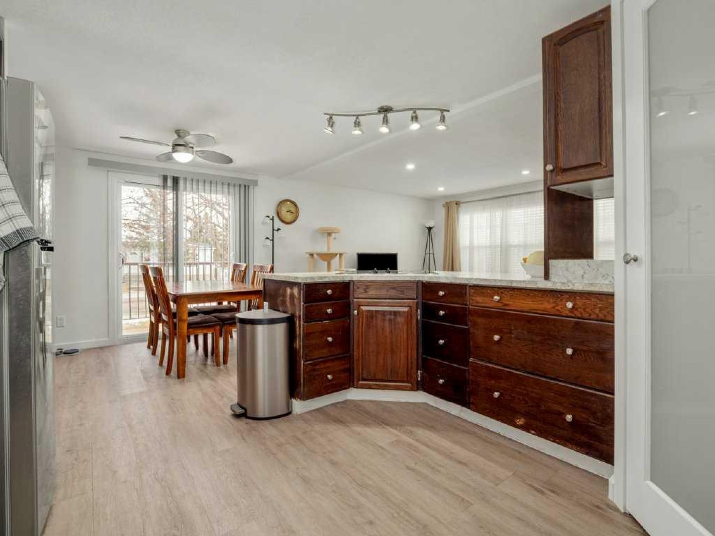 Conveniently located on a quiet circular street, affordable double-wide mobile home on its own lot, ready to move in – everything works! This bright 3-bedroom, 2 full bathroom, single storey bungalow with washer, dryer, fridge, and dishwasher all replaced in 2024. Includes all new window coverings, some new paint and is squeaky clean throughout. Outside there are 2 decks, paved driveway, concrete parking pad off the alley and partially fenced backyard with an 8’x10’ storage shed. It is fenced off from back alley and on the sides of yard. Only a 3-minute drive to Whoop Up Drive, 12-minute walk to the University and an easy walk to Nicholas Sheran pool, arena, park and elementary school. Just a 2-minute walk to a bus stop. Mature, beautiful deciduous trees in front and in the backyard provide shade and extra privacy in summer. Quick possession possible. Call your REALTOR® and come have a look - you’ll be pleasantly surprised!