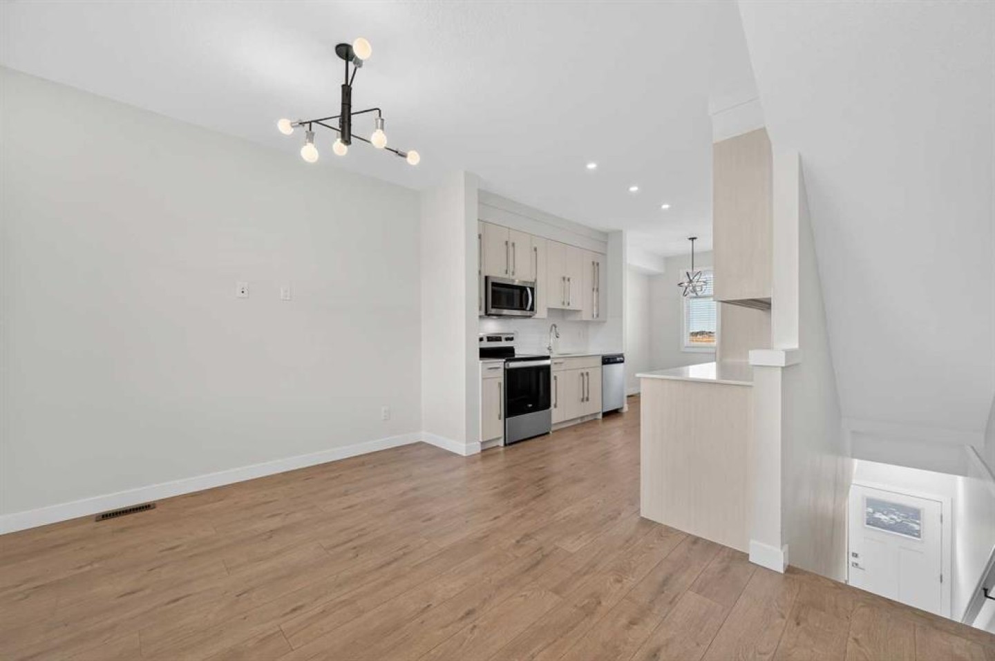 Extra parking — something rarely offered in this complex. This home features a full driveway in addition to the attached heated garage, giving you valuable space for a second vehicle or visiting guests. I nside, the home feels bright, comfortable, and easy to live in. The main level brings the kitchen, dining, and living areas together in an open layout, with south-facing light filling the dining space throughout the day. The kitchen is clean and modern with quartz countertops, stainless steel appliances, and generous prep space, making it just as practical for everyday meals as it is when friends stop by. Upstairs, two generously sized bedrooms easily accommodate king-sized beds, each with walk-in closets and stylish barn doors. The home also offers three bathrooms (2 full and 1 half) — a rare and highly practical layout for a two-bedroom townhome that makes daily routines and hosting guests much more comfortable. Step out onto your private balcony for a bit of fresh air, while nearby walking paths offer an easy way to get outside and enjoy the neighbourhood. Located in the growing community of Cornerstone, you’re just minutes from shopping, parks, playgrounds, transit, and everyday amenities. A bright, well-designed townhome with rare extra parking, three bathrooms, and a layout that simply works for everyday living.