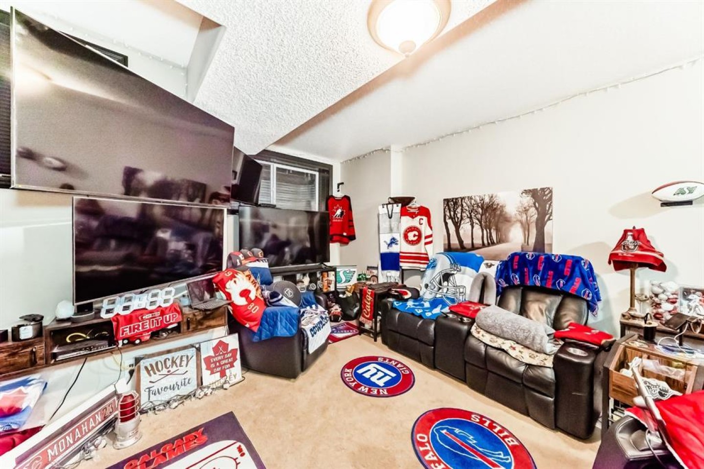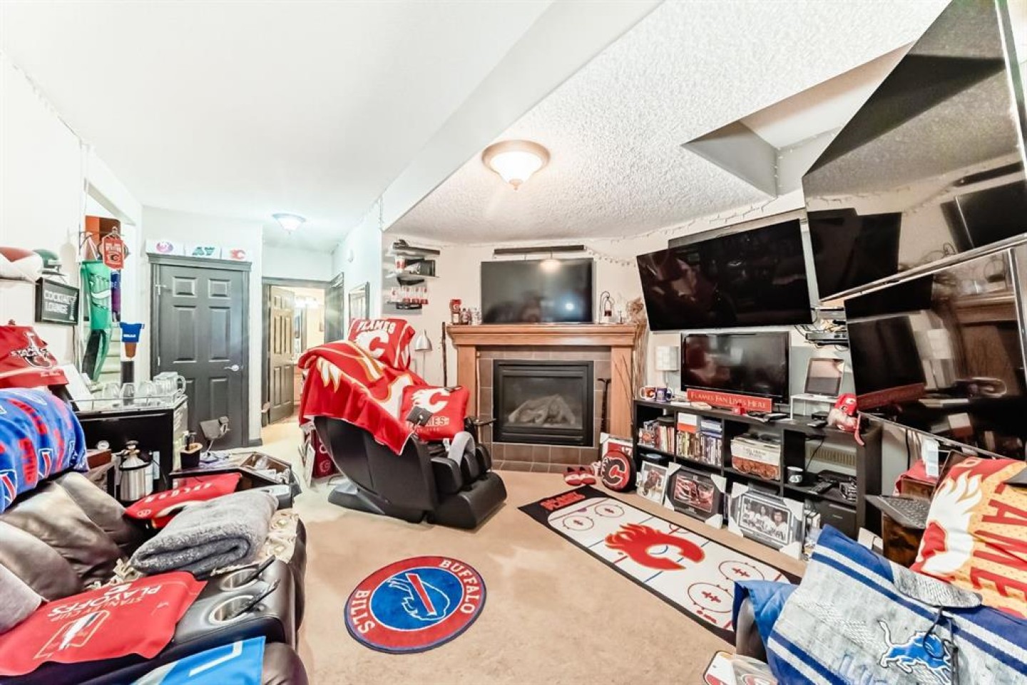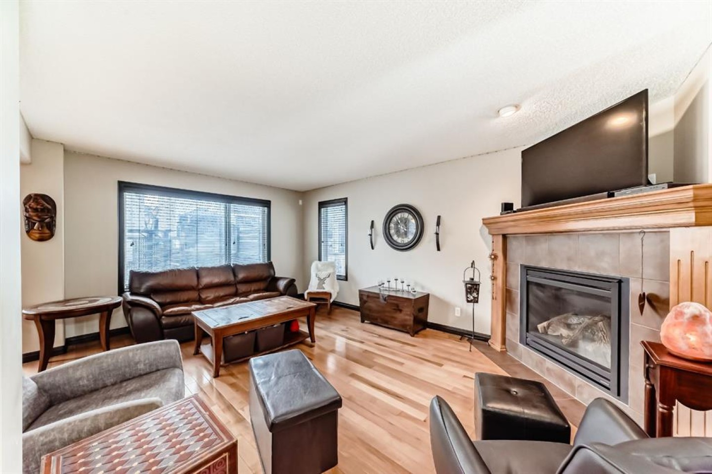 Welcome to your new home at 2071 Sagewood Rise in the family friendly community of Sagewood. This fully finished, meticulously maintained 2-storey residence offers exceptional curb appeal with a beautifully manicured front yard featuring lush shrubs, neat landscaping, and thoughtful details that welcome you home every day. Step inside through the tiled entry foyer, which flows seamlessly into an open and inviting main floor plan adorned with genuine hardwood flooring throughout. The spacious living room is a cozy focal point, highlighted by a stylish corner fireplace with an elegant mantle and tile surround, complemented by in-ceiling speakers for effortless entertainment. Large, ample windows bathe the space in natural light, creating a bright and airy atmosphere. The heart of the home is the upgraded kitchen, featuring newer SS appliances, granite countertops, an undermount granite sink, and abundant cabinetry with generous storage. A convenient corner pantry keeps everything organized, while the spacious dining area overlooks the stunning south-facing rear yard—perfect for family meals or hosting gatherings with views of your private outdoor oasis. Upstairs, the layout provides excellent separation for privacy, featuring a large bonus room ideal for movie nights or relaxation, complete with in-ceiling speakers, abundant natural light from numerous windows, and a striking feature wall. The primary bedroom is a true retreat, offering a 4pc ensuite bathroom with a large corner soaker tub, a standalone shower, and a generous walk-in closet. Two additional well-sized bedrooms and a full 4pc main bathroom complete this level. The fully developed basement serves as the ultimate “man cave” or family entertainment space, including a large living area anchored by another corner fireplace, two additional bedrooms for extended family, guests, or a home office setup, and a convenient 3-piece bathroom. Outside, the south-facing backyard is an absolute paradise designed for year-round enjoyment and privacy. Relax in the nearly new (2-year-old) Master Spa hot tub, fully enclosed for seclusion. A secondary private lounge area beneath the pergola offers another tranquil retreat. The yard is beautifully landscaped with numerous perennials and mature shrubs, a dedicated dog run for your furry friends, and a handy storage shed. The attached garage is a standout feature, complete with a built-in heater for year-round comfort, plus numerous wood shelving units—including upper shelving designed for larger items—providing excellent organized storage for tools, seasonal gear, sports equipment, and more. Additional premium upgrades throughout the home include central AC and a central vacuum system for added comfort and convenience. Ideally located near C.W. Perry School, this home provides easy access to top-rated education, parks, shopping, and all the amenities Airdrie has to offer, while still enjoying a peaceful, family-friendly neighborhood.