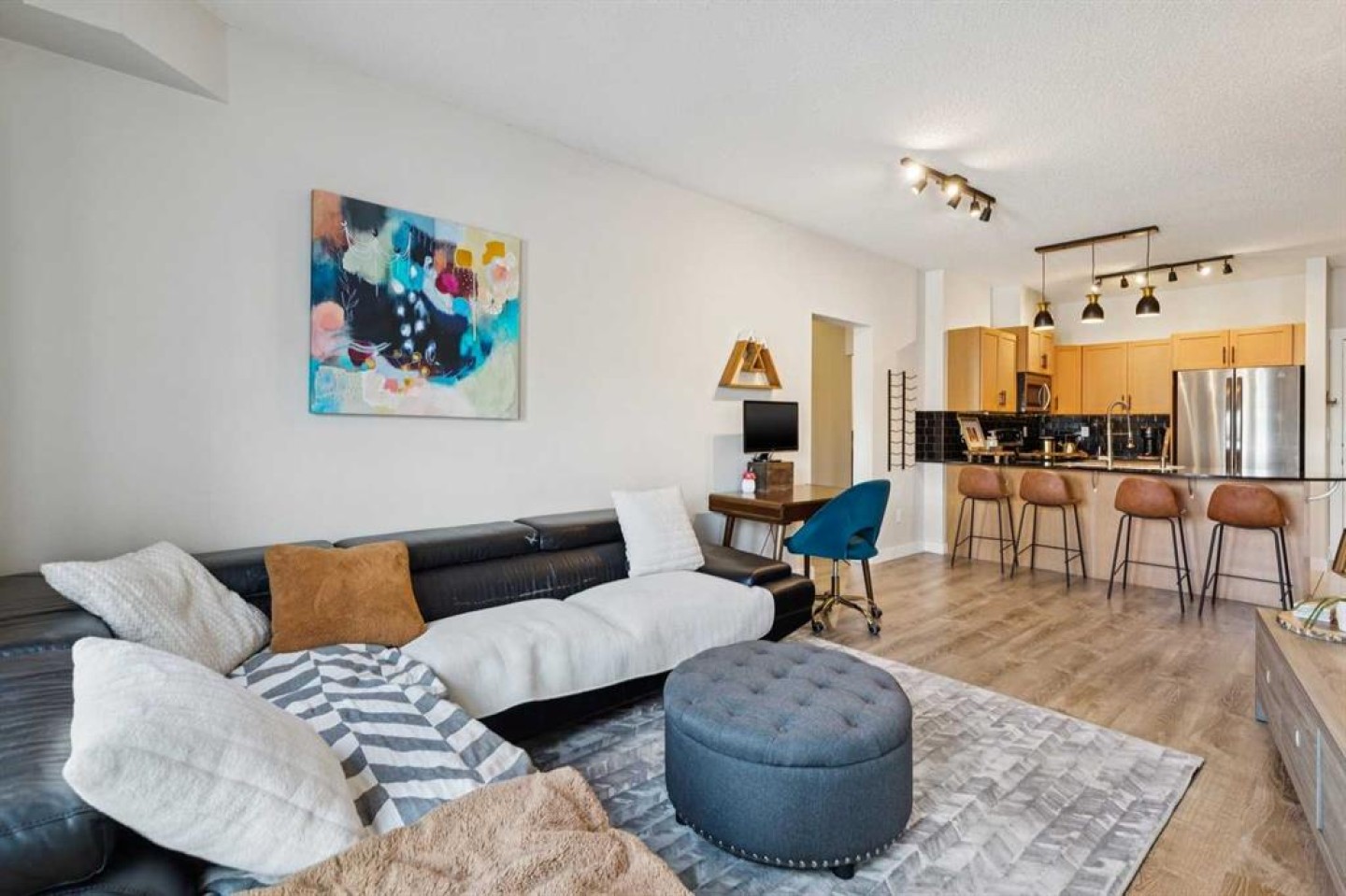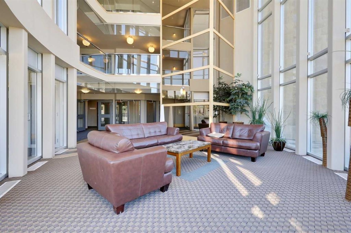 Quiet fourth-floor courtyard unit with 9’ ceilings, central A/C, and a private balcony with natural gas BBQ overlooking landscaped green space, positioned away from traffic for added privacy. This 2 bedroom, 2 bath + den layout offers true work-from-home flexibility with a fully enclosed office space and a well-proportioned living and dining area. The kitchen features granite countertops, stainless steel appliances, and full-height cabinetry. Award-winning 2025 Condo of the Year building with a full fitness centre, social lounge, rentable guest suite, and ample visitor parking. Condo fees are comprehensive and include heat, electricity, air conditioning, water, and sewer through an energy-efficient geothermal system, providing predictable monthly costs and exceptional value. Pet friendly with board approval. Includes in-suite laundry, generous storage, and titled underground parking. Ideal for professionals, downsizers, or investors seeking low-maintenance living in a well-managed, amenity-rich building.