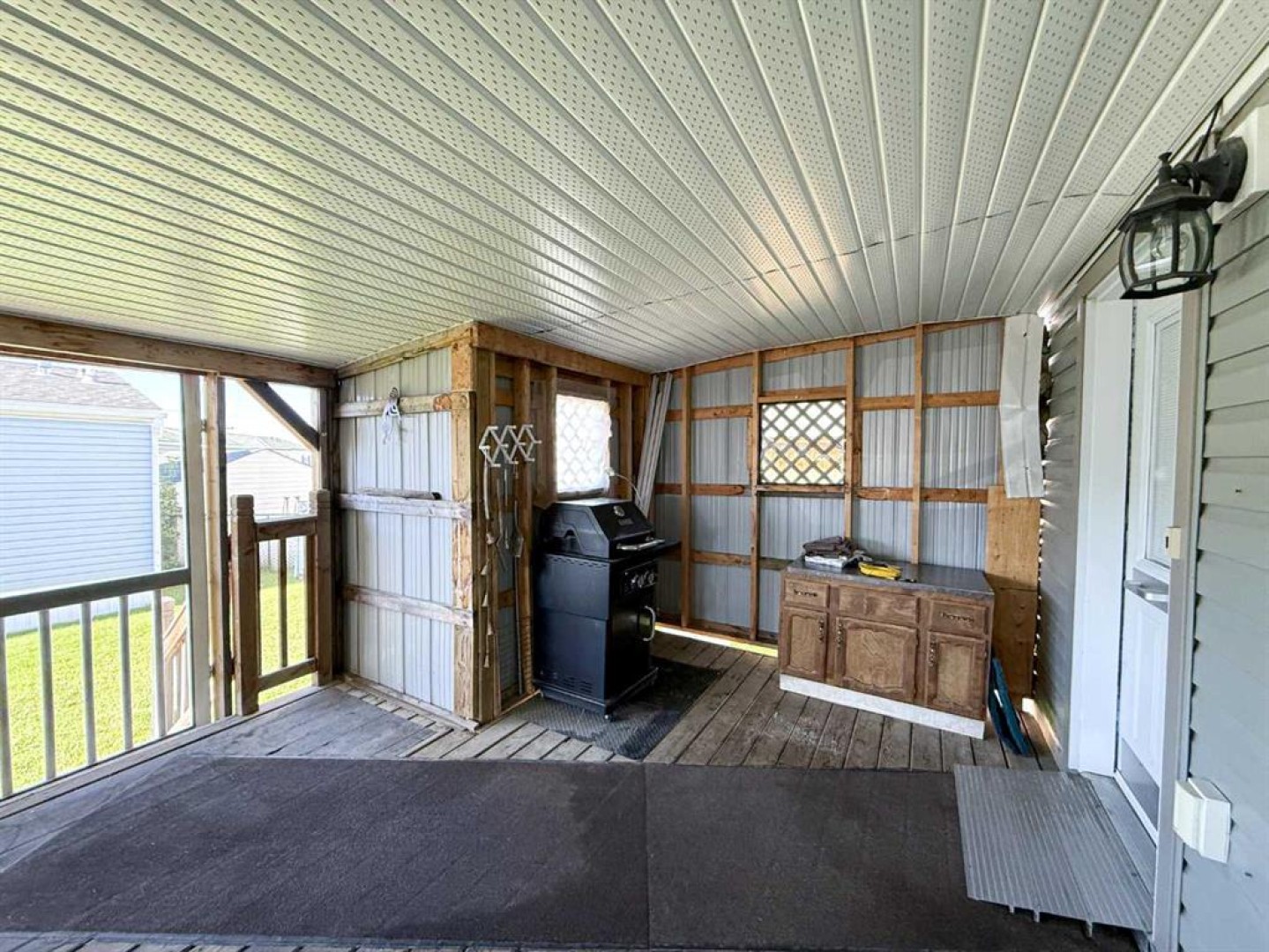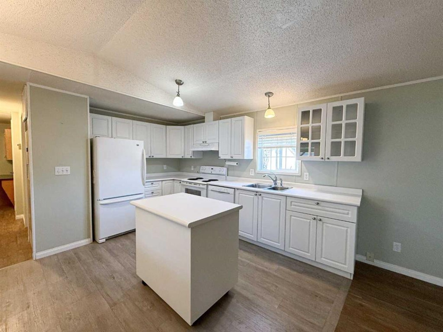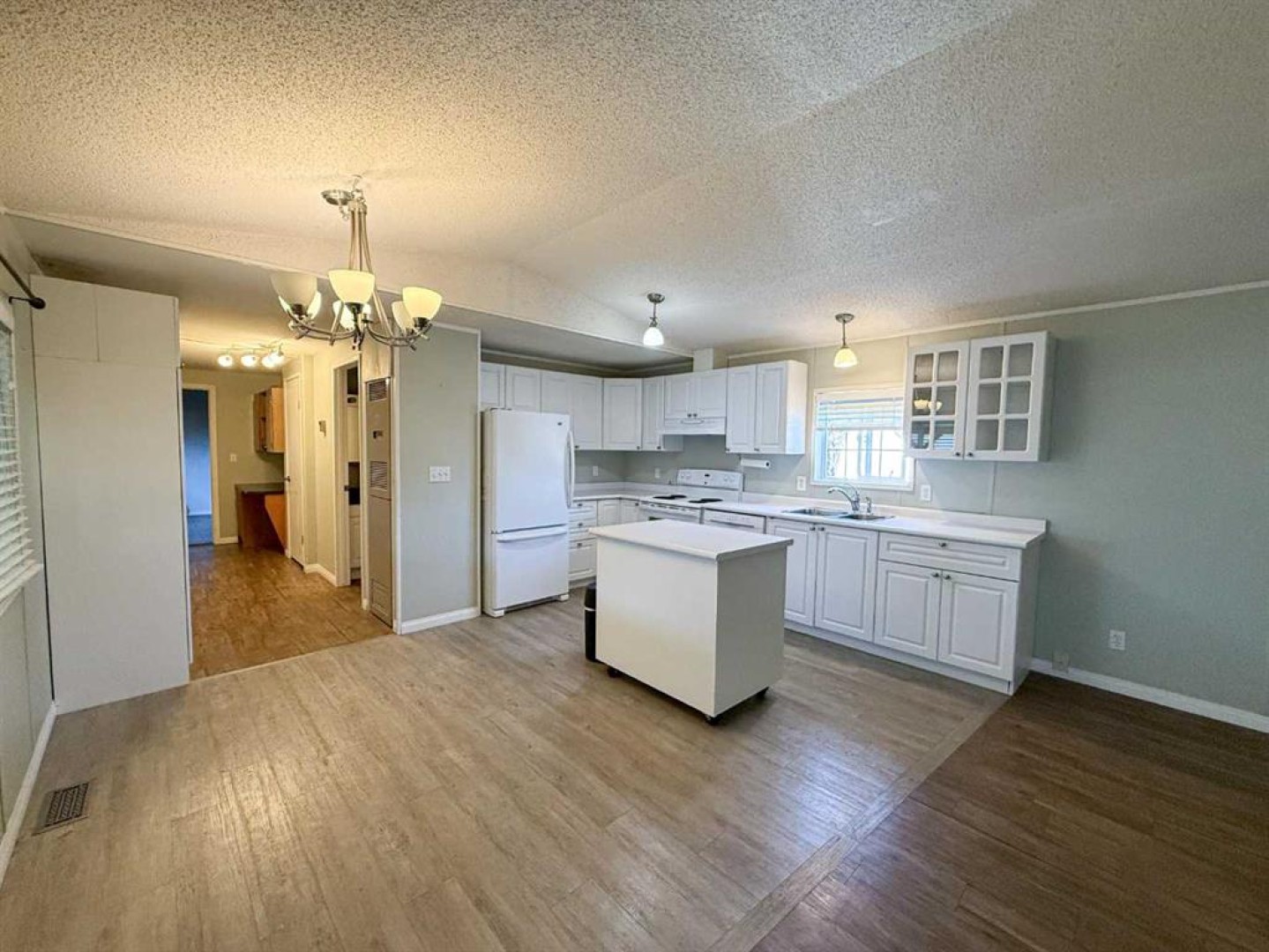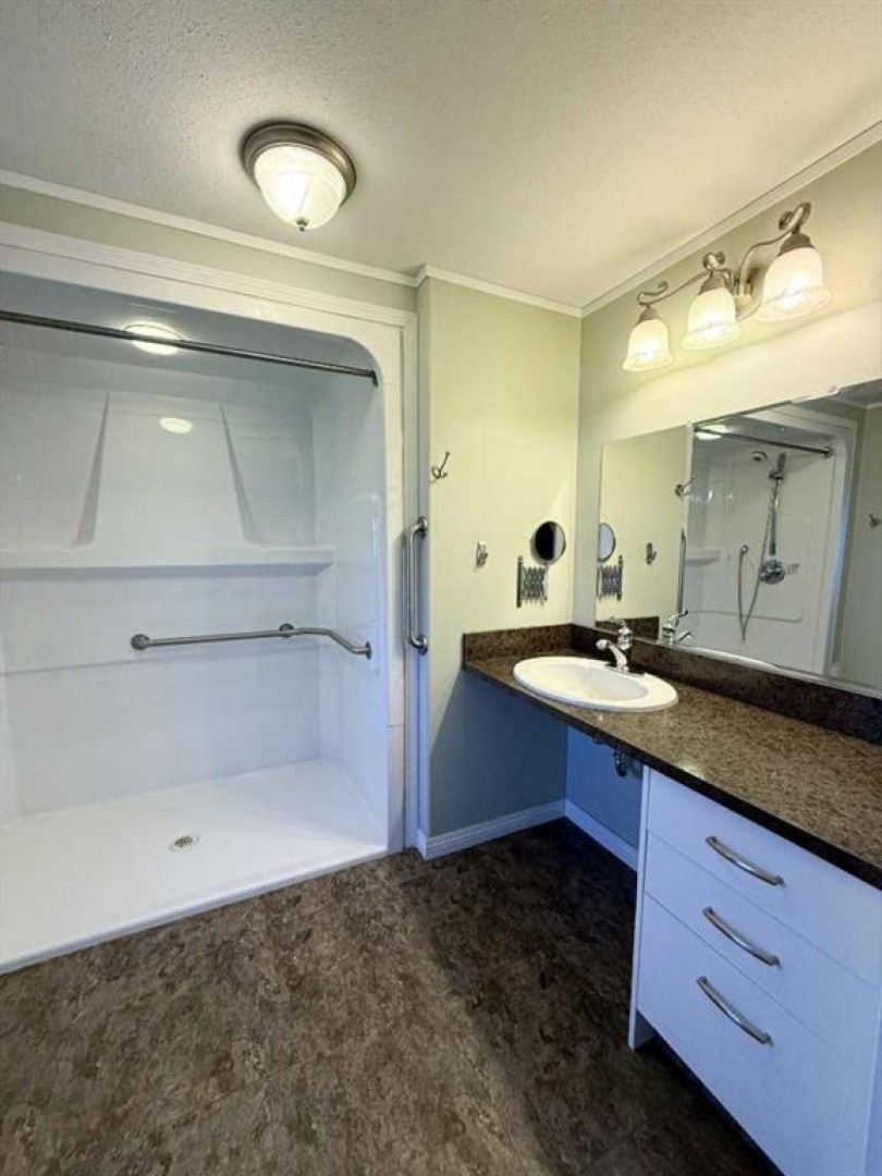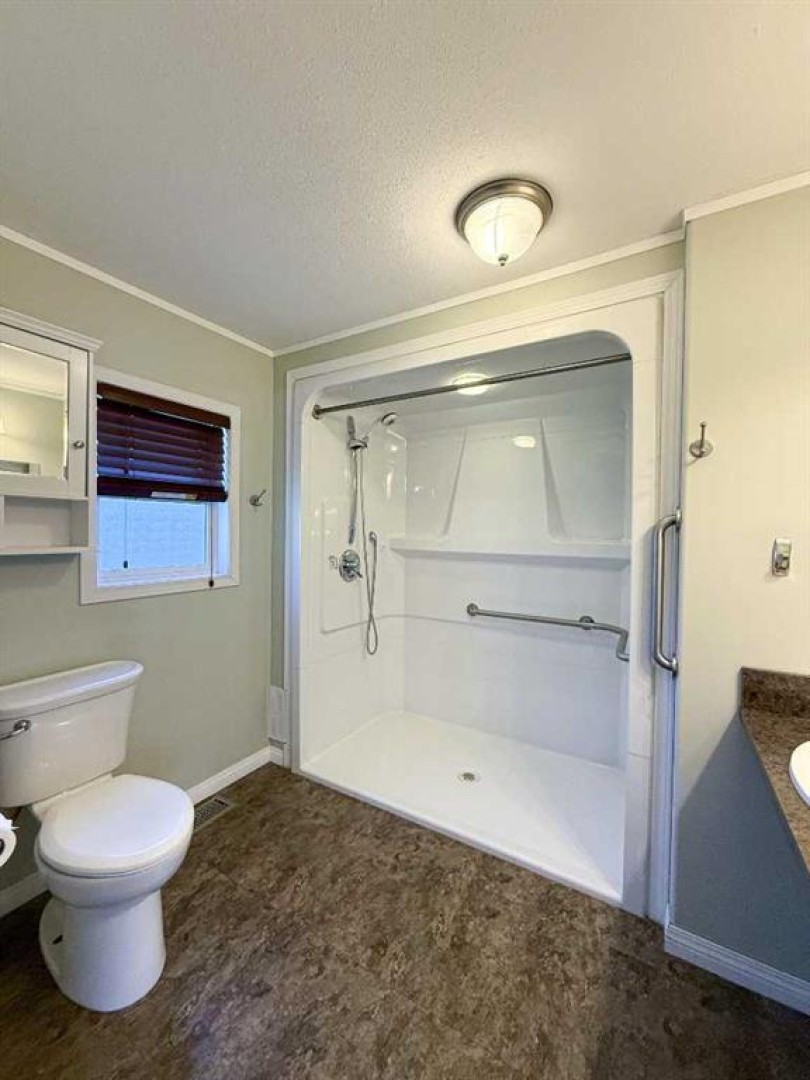 Prepare to be impressed by this beautifully maintained 1994 mobile home, thoughtfully updated over the years with comfort and accessibility in mind. From the moment you arrive, the covered ramp ensures easy entry, while the accessible floor plan offers convenience and ease of living throughout. The bright, modern kitchen showcases updated finishes, a clean contemporary design, and an abundance of natural light. Vaulted ceilings create an airy, spacious atmosphere that flows seamlessly through the kitchen, living room, and dining area, all enhanced by newer flooring throughout the home. Both bathrooms have been tastefully renovated, including the ensuite, which features wheelchair-accessible doors and a barrier-free shower for added comfort. Step outside to your private covered deck, an ideal space to relax or entertain year-round. Additional highlights include a 10' x 12' storage shed and parking for up to three vehicles. Don’t miss this opportunity, call today to schedule your private showing!