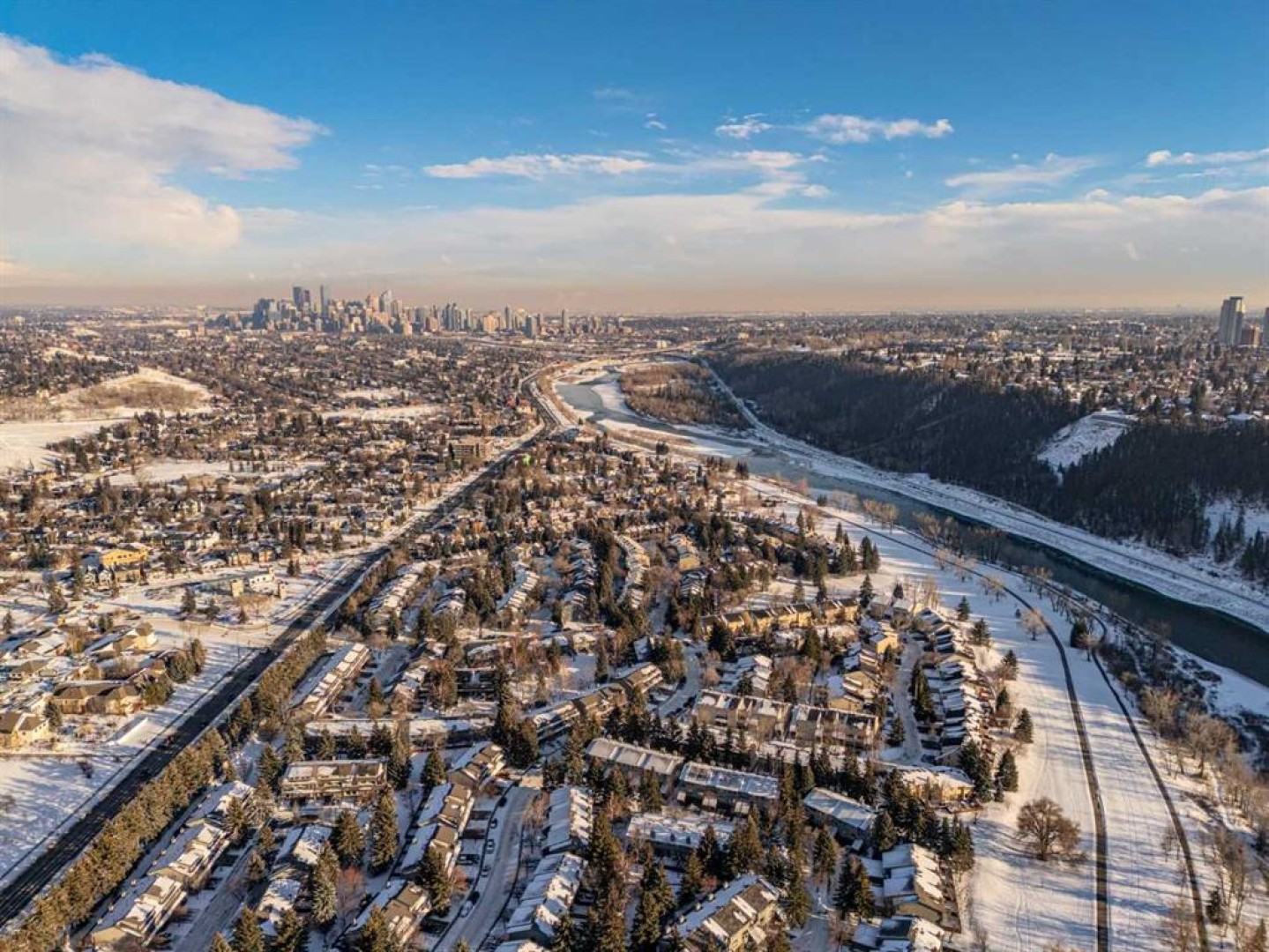 OPEN HOUSE SUNDAY MARCH 1ST FROM 11AM-3PM! Check out our 24/7 Virtual Open house...Tucked into the sought-after community of Point McKay, just steps to the Bow River and pathway system, this beautifully renovated 3-bedroom, 2.5-bath townhome offers the perfect blend of style, function, and location. With almost 1600 sq ft above grade plus a 300+ sq ft finished lower level, this move-in-ready home has been thoughtfully updated from top to bottom including 8mm luxury vinyl plank flooring throughout and an attached single garage for everyday convenience. The living room features sleek glass railings, soaring ceilings and a cozy gas fireplace anchoring the room. Off the living room, step out onto the rear deck overlooking a peaceful greenspace—a private, calming backdrop that’s perfect for morning coffee or unwinding after a long day. The redesigned kitchen is a standout—finished with quartz countertops, high-quality cabinetry with dovetail joints and soft-close hardware, a custom hood fan, apron sink, built-in microwave, high-end hardware, and brand-new appliances, including an additional beverage fridge for effortless entertaining. Upstairs, you’ll find a spacious primary retreat complete with custom-built closets and an updated ensuite, plus two additional bedrooms, each with custom closet systems, and an additional full bathroom. Downstairs, the finished lower level provides tons of extra living space, including a large rec room—ideal for a media room, gym, play area, or home office setup. Other important updates include newer triple-pane windows throughout most of the home and a brand-new hot water tank for added peace of mind. Enjoy unbeatable access to downtown, Foothills Hospital, the University of Calgary, and quick routes west to the mountains—while having endless outdoor recreation literally at your doorstep on the Bow River Pathway System. Stylish, turnkey, and exceptionally located—this is Point McKay living at its best.