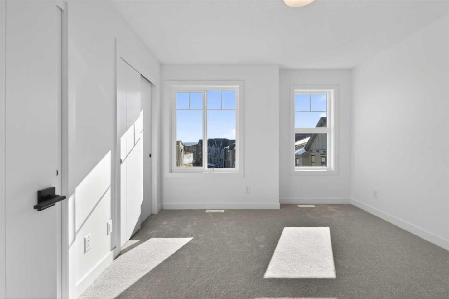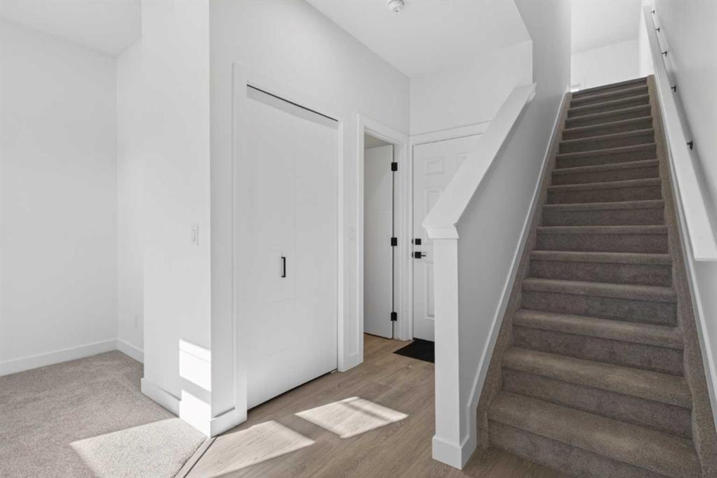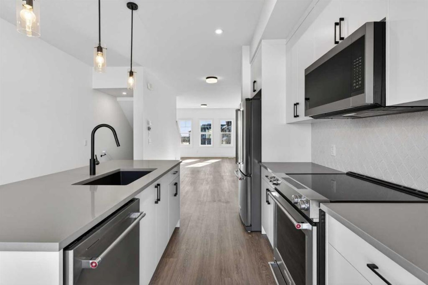 Welcome to Juniper Townhomes in prestigious Springbank Hill, where modern design meets an unbeatable west side location. This bright and stylish townhouse is built for today’s lifestyle. The entry level features a private den or home office, perfect for working from home, plus a convenient 2 piece bath. Upstairs, the open concept main floor is filled with natural light, showcasing 9 foot ceilings, large windows, and Luxury Vinyl Plank flooring throughout. The sleek kitchen shines with quartz countertops, stainless steel appliances, and a spacious breakfast bar that is ideal for entertaining. Step out from the dining area onto your full size balcony and enjoy your morning coffee or evening unwind. The upper level offers a comfortable primary retreat with double closets and a private glass shower ensuite, along with a second bedroom, a full 3 piece bath, and convenient upper floor laundry. Located just minutes to downtown, Stoney Trail, and quick mountain getaways, plus shopping and dining at Westhills and Aspen Landing, and access to some of Calgary’s top rated schools, this is west side living at its best. Move in ready, low maintenance, and packed with value. Don’t miss it.