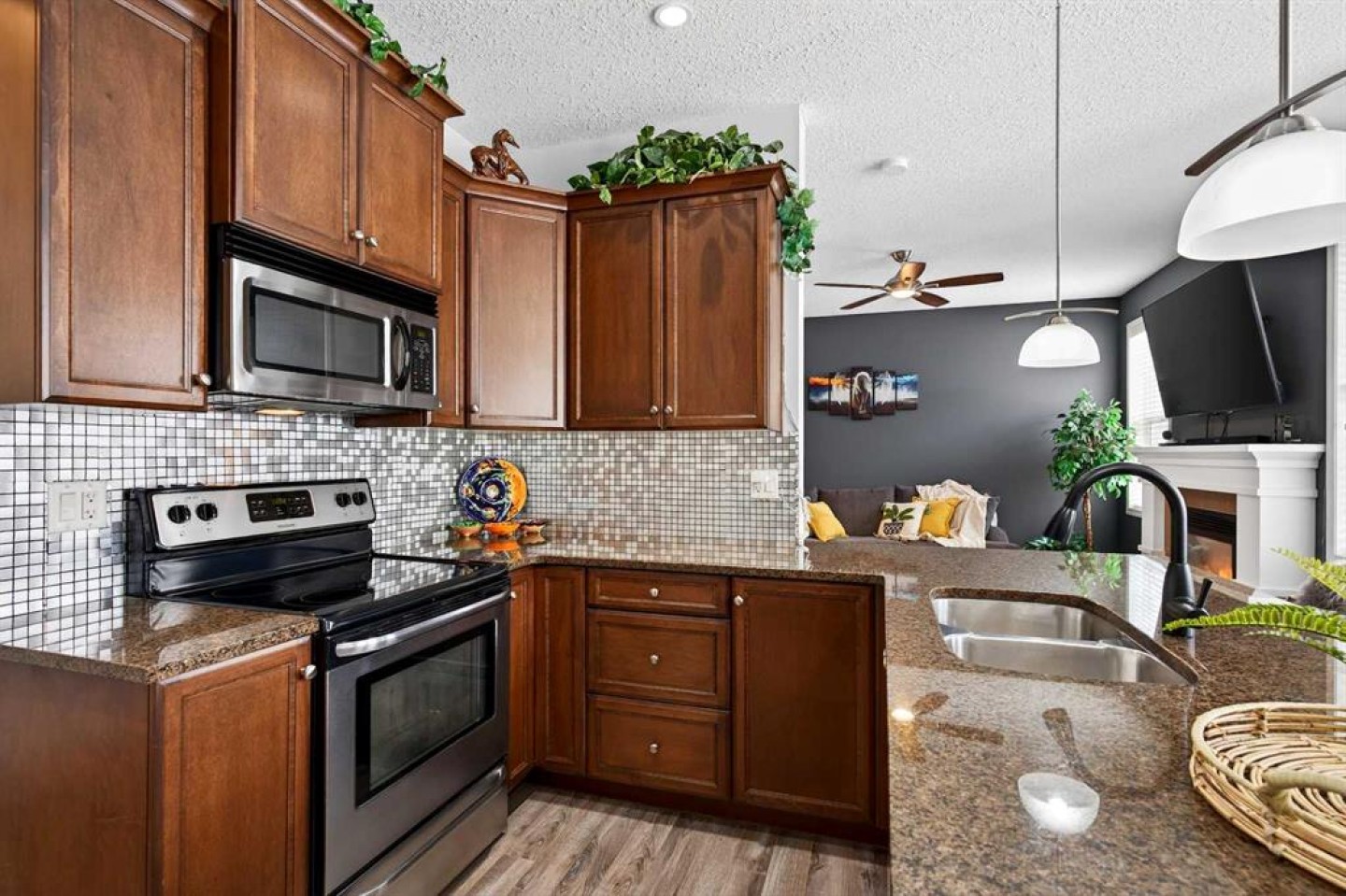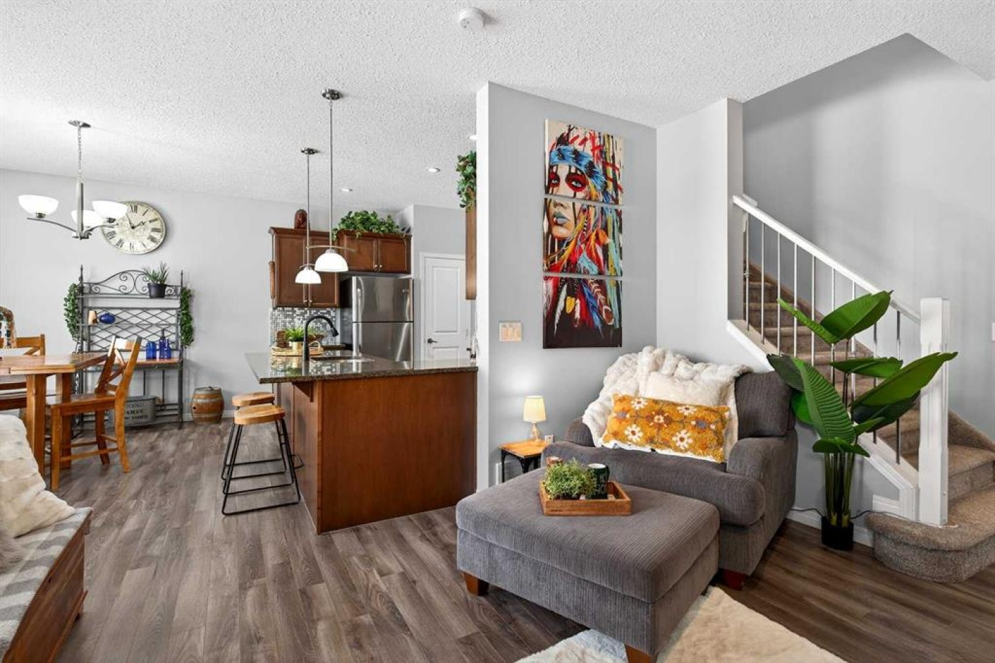 OPEN HOUSE SUNDAY MARCH 8th, 12PM-2PM - Do you ever walk into a home and it just has a really good feeling? You will get that x100 here! This executive two-storey townhouse condo with a rare double attached garage brings serious showhome vibes — and it’s completely move-in ready! Offering 3 bedrooms and 2.5 bathrooms, you will be wowed by how clean and updated it is. A few quick things to note: New carpet, newer flooring, granite countertops and an extra long island! This bright & open main floor featuring a gourmet kitchen with granite countertops, stainless steel appliances, and a breakfast bar that flows into the spacious dining area and cozy great room with the coziest gas fireplace… Patio doors open to the sunny back deck with a Phantom screen — fresh air, zero bugs. Add Hunter Douglas blinds, a living room fan, and clear pride of ownership throughout. Upstairs, the primary retreat offers dual closets and a 4-piece ensuite with a deep soaker tub and separate shower. Two additional well sized bedrooms, another full bath, and upper laundry with plenty of storage make life easy. The basement is ready for your ideas with rough-in plumbing already in place. you’ve got a home with that good AURA! Come check it out today!
