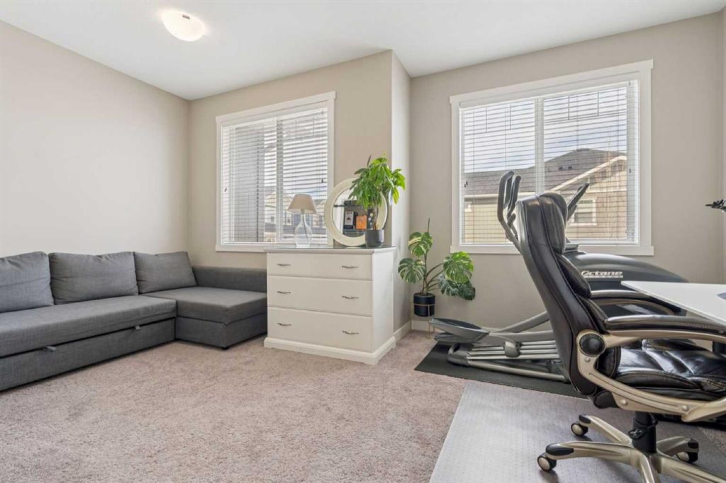 Welcome to 645 Evanston Manor NW. Stylish Living in the Heart of Evanston. Pride of ownership shines throughout this beautifully maintained 2-storey townhome offering over 1,500 sq. ft. of thoughtfully designed living space. Featuring 2 spacious bedrooms, 2.5 bathrooms, a versatile flex room, double attached garage, and central A/C, this home delivers the perfect balance of comfort, style, and functionality. The main floor welcomes you with 9-foot ceilings and an open-concept layout ideal for everyday living and entertaining. The bright living room flows seamlessly into the dining area and a stunning kitchen complete with stainless steel appliances, quartz countertops, pantry, and a large central island. Step through the double sliding doors onto your large balcony...perfect for summer BBQs and relaxing evenings. Upstairs, you’ll find two oversized bedrooms, each with its own ensuite bathroom. The primary suite is a true retreat featuring vaulted ceilings, dual closets, and plenty of room for a king-sized bed. Large windows throughout the home fill the space with natural light, enhancing its warm and inviting atmosphere. The lower level offers a flexible bonus space ideal for a home office, gym, rec room, or guest area, along with laundry, additional storage, and direct access to the double attached garage. Located in the family-friendly community of Evanston, you’re surrounded by parks, playgrounds, schools, and scenic walking paths. Enjoy close proximity to FreshCo, Sobeys, Creekside Shopping Centre, Evanston Towne Centre, The Shops of Carrington Green, restaurants, medical clinics, and quick access to Stoney Trail for an easy commute anywhere in the city. This is more than just a home; it’s a lifestyle opportunity in one of NW Calgary’s most desirable communities. Don’t miss your chance to view this exceptional property. Book to view today!