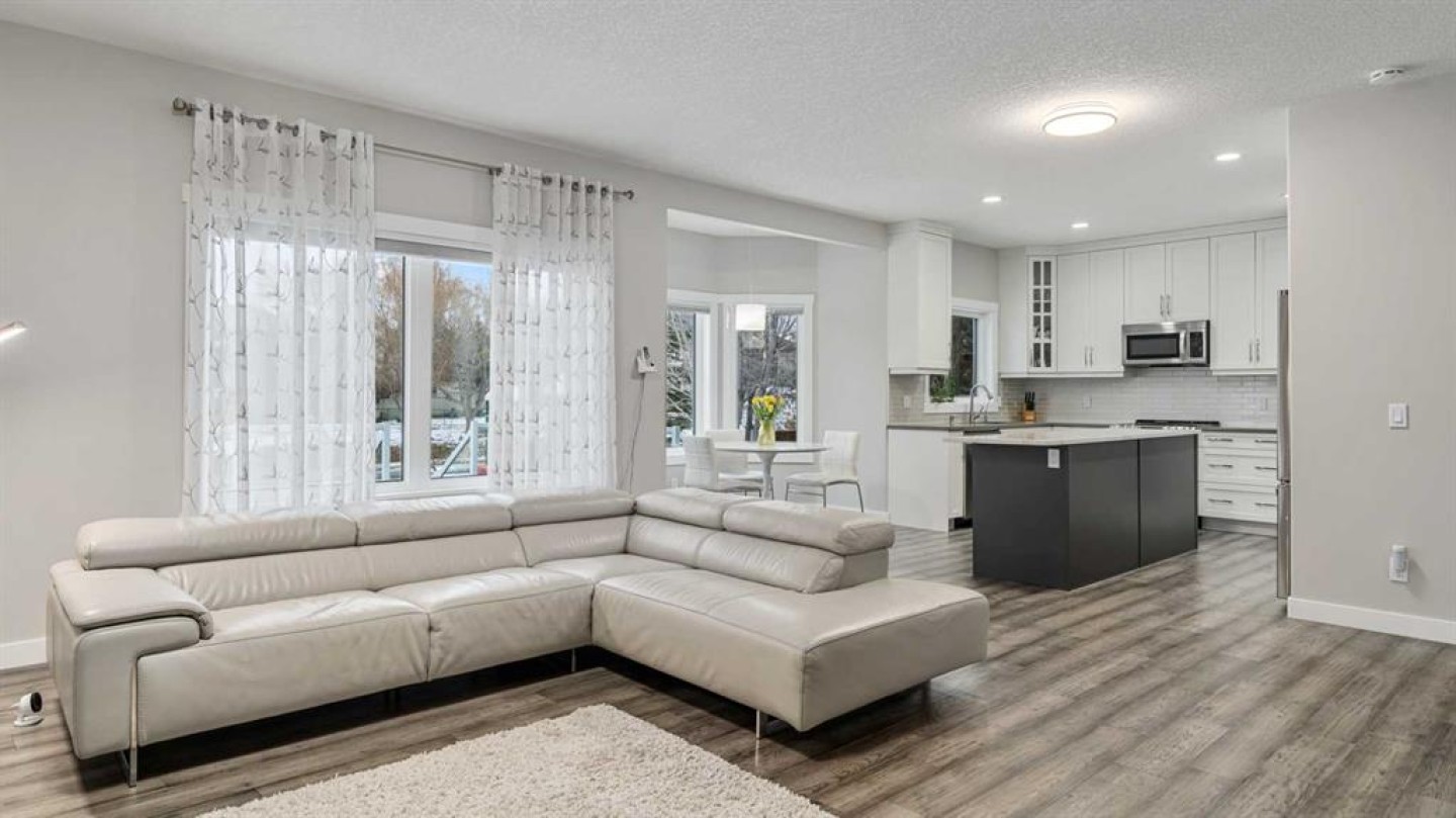 Welcome to this beautifully fully renovated family home in the highly sought-after community of McKenzie Lake. Offering over 3,500 sq. ft. of developed living space and 6 bedrooms, this impressive property perfectly combines modern upgrades, functional design, and an unbeatable location in one of Calgary’s most established and family-friendly neighbourhoods. Perfectly situated on a quiet street backing directly onto a park and playground, this home offers rare privacy with no rear neighbours and peaceful green space views. Step inside to a dramatic open-to-below foyer featuring a curved staircase and skylight, filling the entryway with natural light and creating a grand first impression. The main floor offers a versatile layout with a bright front flex room, a formal dining area with elegant arched openings, and a spacious living room anchored by a gas fireplace with a striking stone surround. The fully renovated kitchen showcases timeless two-tone cabinetry, stone countertops, stainless steel appliances, and a large central island. A sun-filled breakfast nook overlooks the backyard, and the adjacent deck provides the perfect setting for summer barbecues and outdoor entertaining. A main-floor office offers an ideal workspace, study area, or optional guest room. Upstairs, the primary suite serves as a true retreat, featuring dual closets and a spa-inspired ensuite with dual vanities, a fully tiled walk-in shower with 10mm glass, a freestanding soaker tub, and heated floors. Three additional spacious bedrooms and a full bathroom complete the upper level. The fully finished basement expands the home’s living space with a large recreation and entertainment area with a built-in bar, plus two additional bedrooms and a full bathroom, offering excellent flexibility for guests, teenagers, or extended family. Recent upgrades provide added peace of mind, including a new roof and skylight installed in April 2023, new triple-pane windows installed throughout in 2023 and 2024, a hot water tank replaced in 2020, and washer and dryer installed in 2020. Conveniently located with quick access to Deerfoot Trail and Stoney Trail, this home offers easy commuting across the city. Just steps away, enjoy the scenic Bow River pathways and the natural beauty of Fish Creek Provincial Park, along with stunning Rocky Mountain views. Daily conveniences are close at hand with shopping, dining, and services at South Trail Crossing (130th Ave SE). Families will appreciate the nearby schools, including McKenzie Lake School and Mountain Park School. With a double attached garage, over 3,500 sq. ft. of developed space, and a rare park-backing location, this exceptional home offers the perfect balance of comfort, style, and family-friendly living in one of Calgary’s most desirable communities.