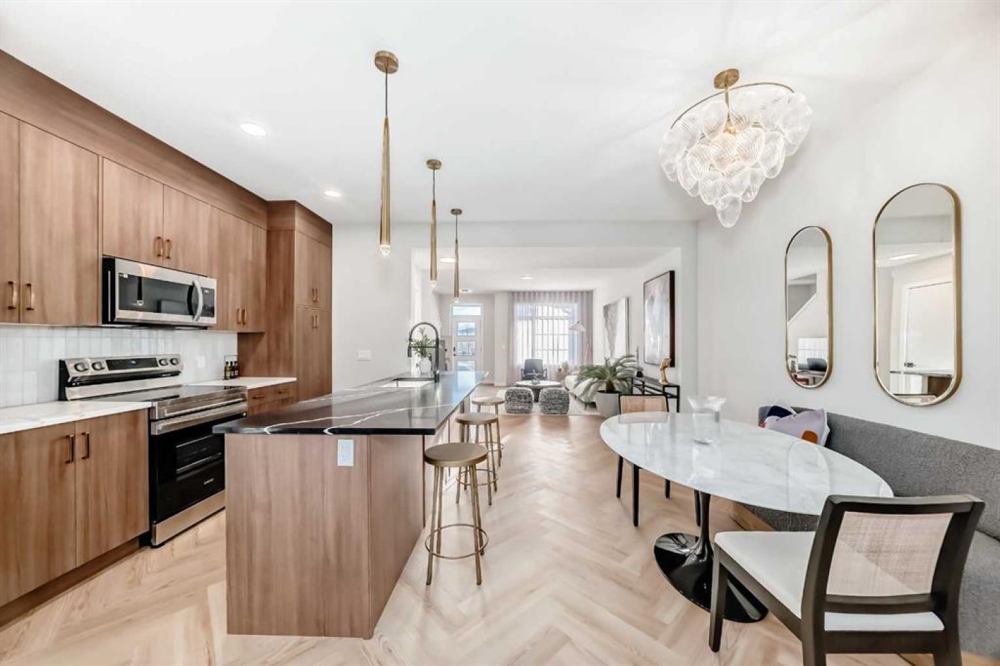 ** OPEN HOUSE at Show Home - 180 Cobblestone Gate, Airdrie - Saturday, March 7th 3-5pm and Sunday March 8th 3-5pm ** Welcome to this beautifully crafted Talo model by Rohit Homes, situated in the vibrant and rapidly growing community of Cobblestone Creek in Airdrie. This home is an excellent fit for families, first-time buyers, or anyone looking to right-size without compromising on style or versatility. Offering 3 bedrooms, 2.5 bathrooms, and 1,520 sq. ft. of well-designed living space, this brand-new home features a bright, open-concept main floor with 9' ceilings and a seamless connection between the kitchen, dining, and living areas—ideal for both daily living and entertaining. The contemporary kitchen serves as the focal point, complete with quartz countertops, a central island, and modern cabinetry that blend practicality with sophisticated design. At the rear, the property features a parking pad offering practical and easy access. Upstairs, the spacious primary suite includes a private ensuite and generous closet space, complemented by two additional bedrooms and a full bathroom—ideal for kids, guests, or a home office. A convenient upper-floor laundry room adds to the everyday ease of living. Set in Cobblestone, you'll enjoy quick access to parks, schools, scenic pathways, local amenities, and major routes—making commuting to Calgary or weekend escapes to the mountains a breeze. Don’t miss your chance to live in this stylish and functional quadplex in one of Airdrie’s most desirable new neighborhoods—schedule your private showing today!