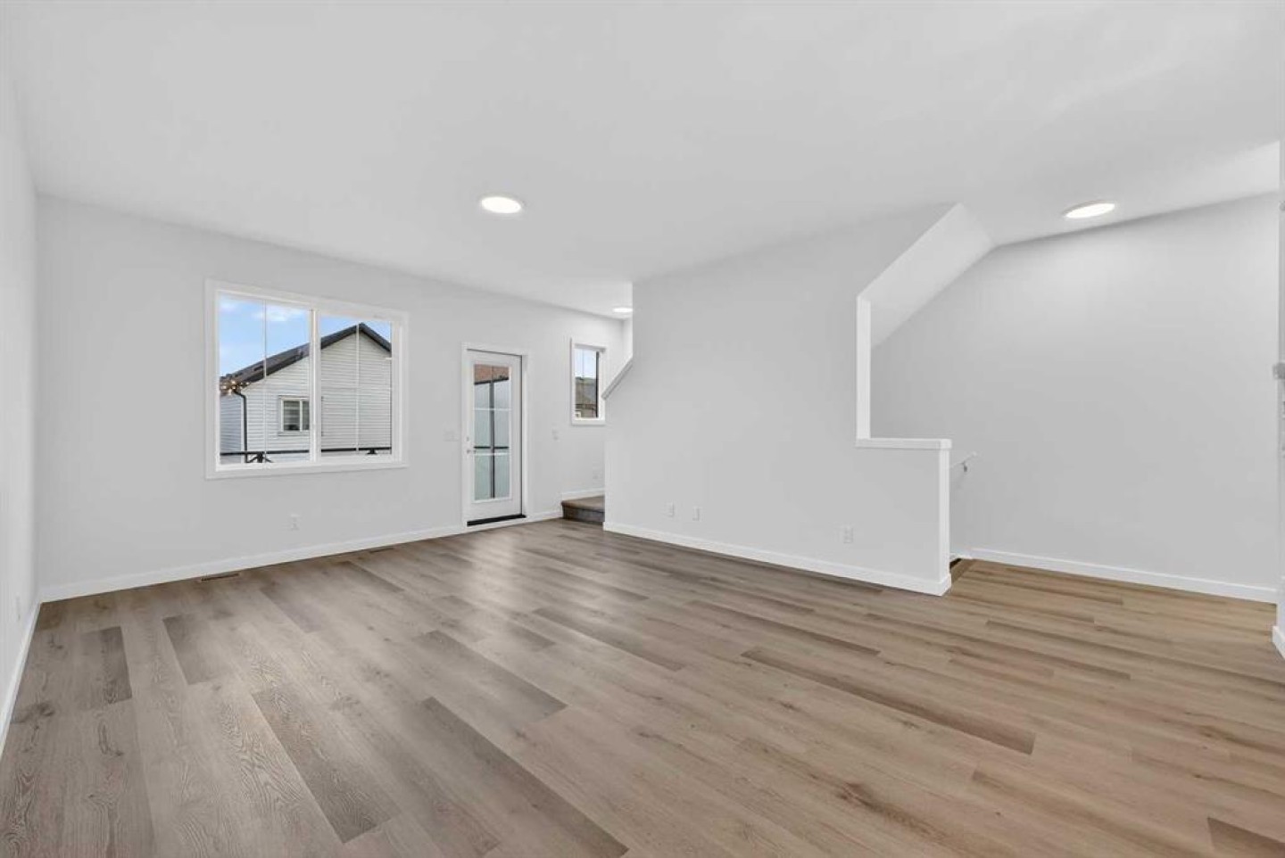 StreetSide proudly presents this highly desired interior unit townhome that offers a sophisticated blend of expansive living space and elegant modern finishes. Designed with versatility in mind, the residence features four spacious bedrooms—including a convenient lower level bedroom ideal for guests or a home office—and two and a half well appointed bathrooms. The heart of the home is an open-concept main floor that flows seamlessly onto a private balcony, perfect for indoor-outdoor entertaining. Culinary enthusiasts will appreciate the chef-inspired kitchen, which comes standard with modern light slab-style cabinetry, a full bank of storage drawers, polished white quartz countertops, and premium stainless steel appliances. This residence is a water meter unit, allowing for precise and efficient utility management. The interior aesthetic is defined by contemporary durability, featuring luxury vinyl flooring throughout the primary areas and premium 8lb underlay carpet for added comfort on the stairs and upper level. Practicality meets luxury with a dedicated upper-level laundry room and an attached double car garage. Situated in the community of Rangeview, Calgary’s premier garden-to-table neighborhood, residents enjoy a unique village-like serenity paired with urban vibrancy. The development is centered around a lush courtyard garden and provides unparalleled connectivity to community greenhouses, pathways, and local markets. With immediate proximity to major transportation routes, schools, and parks, this home offers the perfect balance of comfort and convenience.