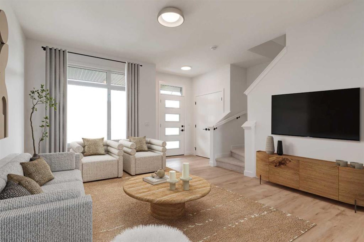 **Open House 120 Clydesdale Ave Showhome** - Welcome to this beautifully crafted semi-detached Talo model by Rohit Homes, situated in the vibrant and rapidly growing community of Heartland in Cochrane. This home is an excellent fit for families, first-time buyers, or anyone looking to right-size without compromising on style or versatility. Offering 3 bedrooms, 2.5 bathrooms, and 1,520 sq. ft. of well-designed living space, this brand-new home features a bright, open-concept main floor with 9' ceilings and a seamless connection between the kitchen, dining, and living areas—ideal for both daily living and entertaining. The contemporary kitchen serves as the focal point, complete with quartz countertops, a central island, and modern cabinetry that blend practicality with sophisticated design. At the rear you'll find a parking pad for convenience, while preserving the home’s inviting curb appeal. Upstairs, the spacious primary suite includes a private ensuite and generous closet space, complemented by two additional bedrooms and a full bathroom—ideal for kids, guests, or a home office. A convenient upper-floor laundry room adds to the everyday ease of living. Set in the dynamic community of Heartland, you'll enjoy quick access to parks, schools, scenic pathways, local amenities, and major routes—making commuting to Calgary or weekend escapes to the mountains a breeze. Don’t miss your chance to live in this stylish and functional duplex in one of Cochrane’s most desirable new neighborhoods—schedule your private showing today! Please