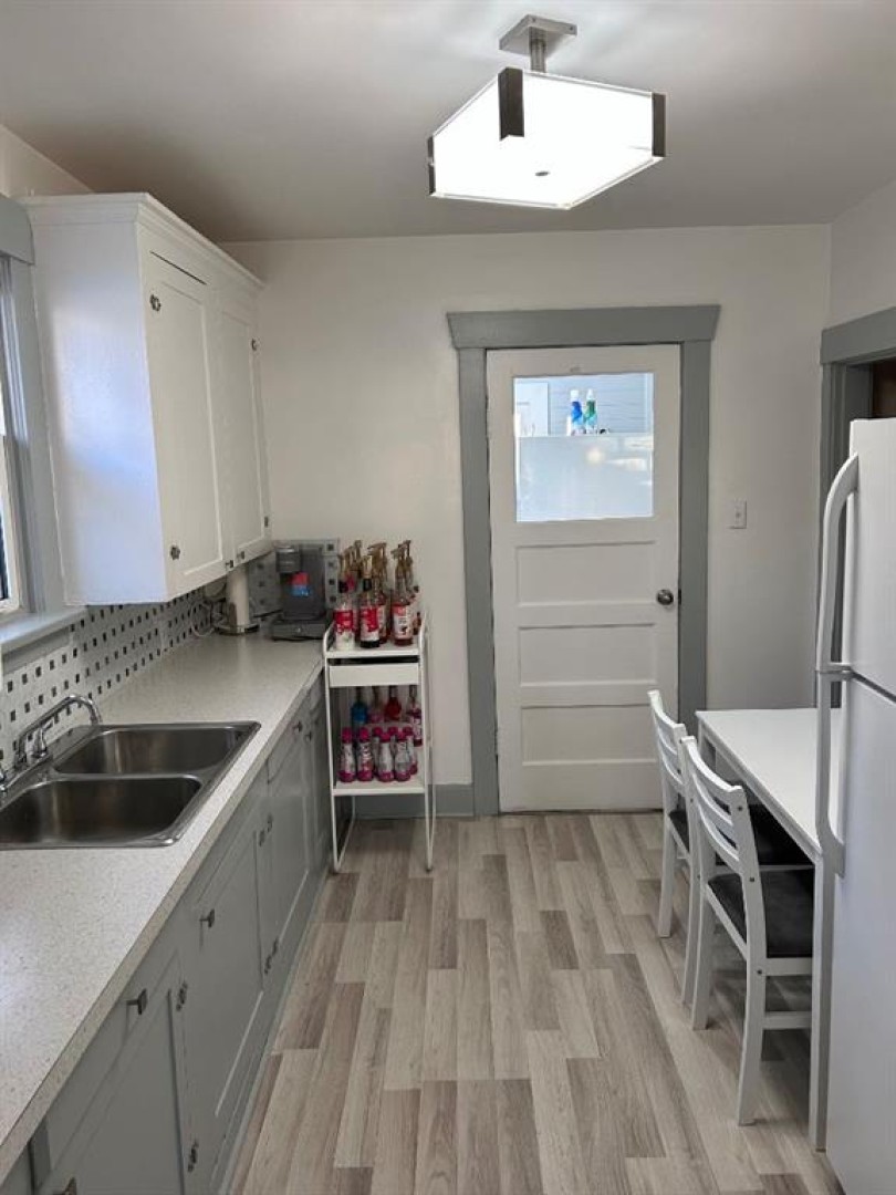 Cheerful Little Bungalow that is sure to warm your heart! Lots of sunshine and natural light welcome you throughout this clean and tidy home. Well cared for by the current owner for the past 23 years with major recent updates including high efficiency furnace (2024); shingles, fascia, eaves, front doors, and bathroom fan (2023); and hot water tank (about 7 years ago). All the flooring has been updated as well with wood laminate providing easy maintenance and a modern feel. The parking space is exceptional too as you've got a front parking pad/driveway, parking stall off the back lane, and wonderful potential for your new garage to be built. For added convenience there is main floor laundry in the front foyer, and a mud room off the back entrance to drop your boots and shoes. The basement is partial, but is concrete, dry, and offers surprisingly good storage. Enjoy summer patio time on the charming ground level deck out front, or gardening in the very deep yard out back. This real estate package is definitely BIGGER than the square footage might suggest. Contact your preferred agent of choice and book your viewing!