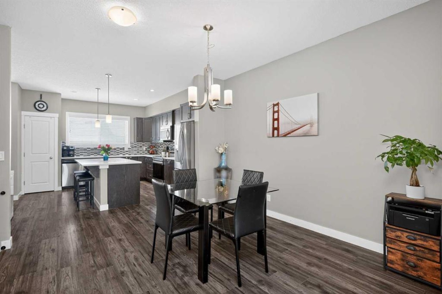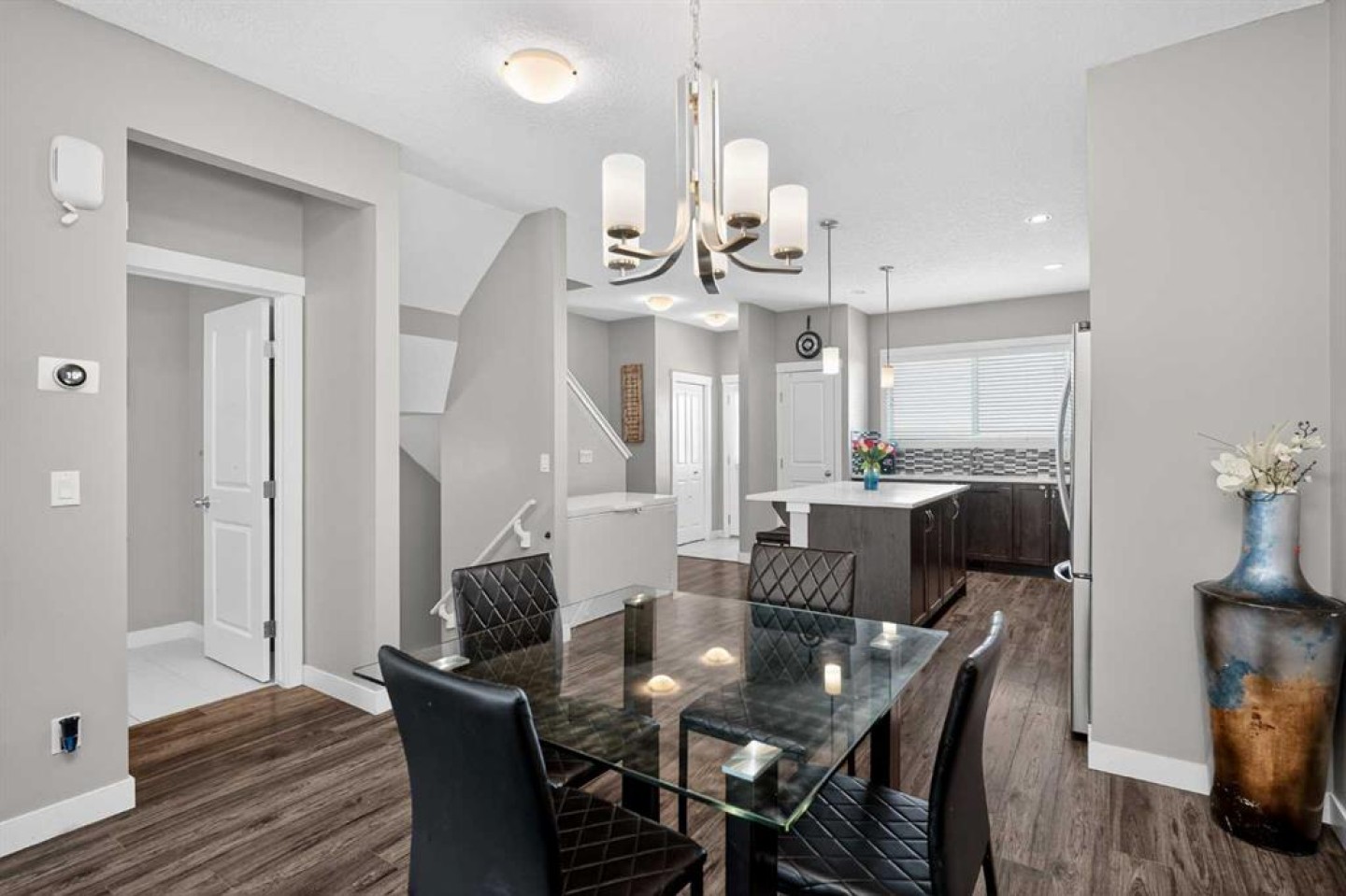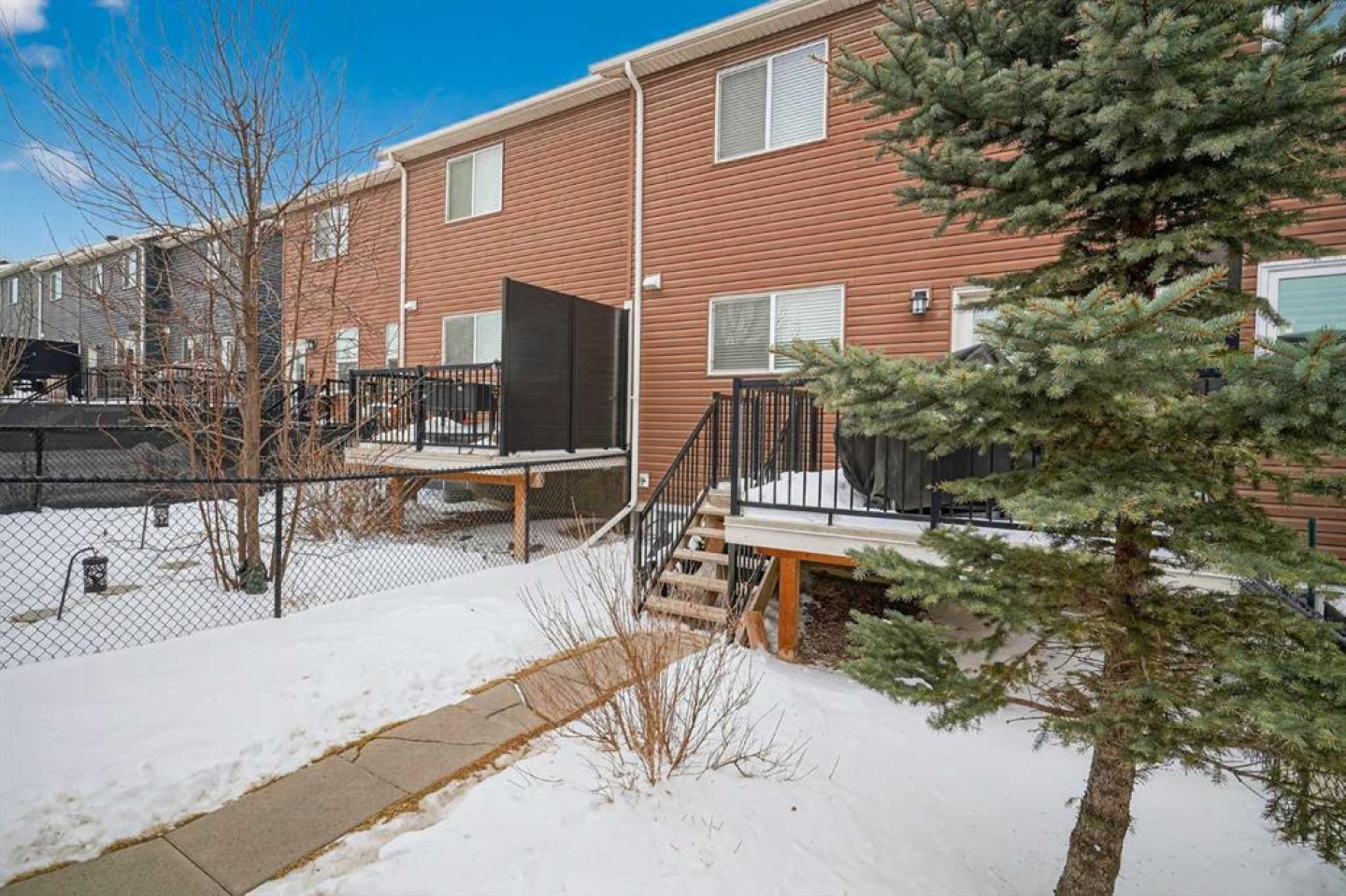 ** Welcome to this beautifully maintained NO CONDO FEE townhome in the highly sought-after community of Nolan Hill - where modern design, functional living, and unbeatable value come together. Offering over 2200 sqft of fully developed living space, this 4-bed, 3.5-bath home delivers the flexibility today’s buyers are searching for, complete with a professionally finished basement and a double detached garage. The bright, open-concept main floor is designed for effortless everyday living and entertaining. A spacious living and dining area flows seamlessly into the contemporary kitchen, showcasing quartz countertops, a large central island with seating, stainless steel appliances including an electric range and over-the-range microwave, and a pantry for additional storage. A convenient 2-piece powder room completes the main level. Upstairs, you’ll find laundry ideally located on the upper floor with a stacked unit, along with three well-appointed bedrooms. The primary suite features a walk-in closet and a private 3pc ensuite with sliding glass shower doors. A full 4pc main bathroom serves the additional two bedrooms. The fully developed basement significantly expands your living space with a large rec room, a 4th bedroom with its own walk-in closet and private 4pc ensuite, plus additional storage tucked under the stairs. This lower level offers excellent flexibility for guests, extended family, or a private work-from-home setup. Step outside to enjoy the rear deck (9'6"x9'8"), perfect for summer evenings, while the 440 sqft double detached garage provides secure parking and extra storage. Additional highlights include central air conditioning for year-round comfort and a newer hot water tank for added peace of mind. Move-in ready, fully finished, and free of condo fees, this Nolan Hill home offers exceptional value in one of NW Calgary’s most desirable communities.
