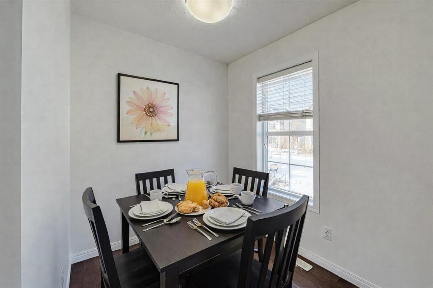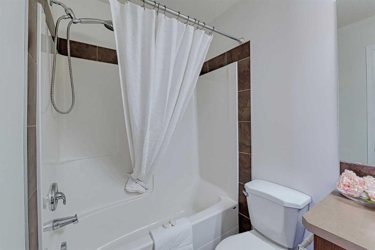 AMAZING VALUE! Freshly painted on all levels, professionally deep cleaned, and completely move-in ready. This impressive townhome offers generous square footage with all levels above grade and a wide, open layout that feels more like a detached home. Ideal for smaller families, roommates, or investors looking for strong rental potential. Street-level entry features a versatile flex room, perfect for a home office, gym, playroom, or gaming space. Oversized windows flood the open-concept main floor with natural light. Enjoy a spacious family room with sliding doors to a sunny south-facing deck, plus a well-designed kitchen with dining nook, center island, full tile backsplash, stainless-steel appliances, and abundant cabinetry. Genuine hardwood floors adorn the main level, while freshly steam-cleaned carpet adds comfort in the bedrooms. Dual primary suites each offer a 4-piece ensuite and walk-in closet, an ideal setup for shared living a spacious nursery/child’s room, or guests. The oversized upper laundry room includes shelving and extra space for added storage or a drying station. Skip the tandem compromise. This home offers the sought-after side-by-side double garage for everyday convenience and long-term appeal. Both the monthly condo fees and annual community fee are quite affordable. Located in a beautifully maintained and well-managed complex where nearby amenities include South Health Campus, Cineplex VIP Cinema, YMCA and major shopping. Cranston Residents’ Association offers tennis courts, fitness, skating rink and splash park. Don’t miss out on this exceptional space in one of Southeast Calgary’s most loved communities. Book your viewing today. We can’t wait to show you around!