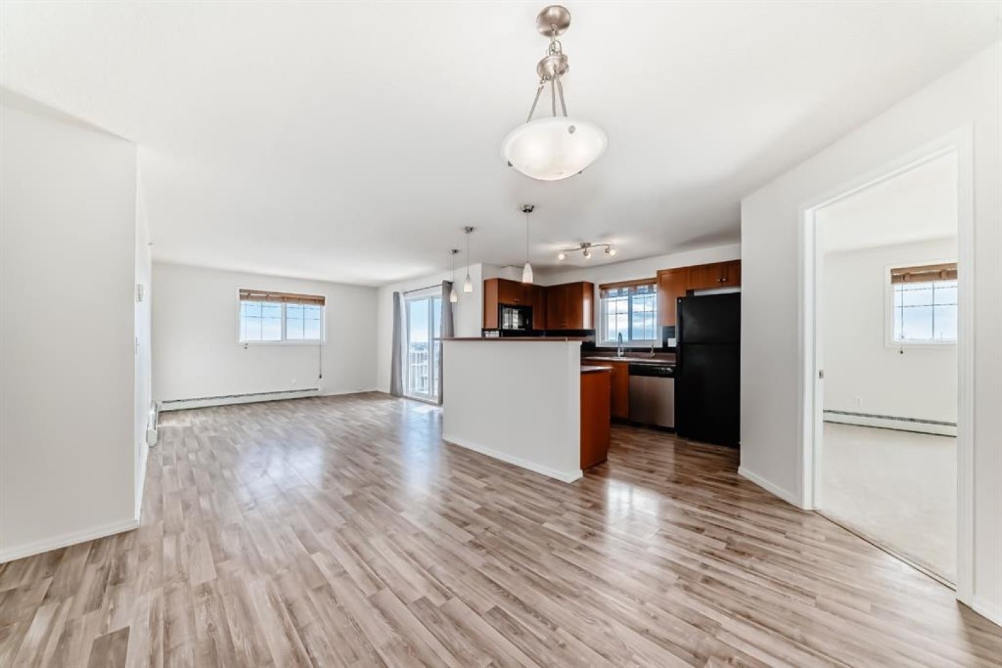 UPDATED TOP FLOOR CORNER END UNIT. *Heat - Electricity - Water all included in condo fees*. Welcome to this 988 square foot 2 bedroom + 2 bathroom home with new carpet and fresh paint located in the SE community of McKenzie Towne. Along with a titled, heated underground parking spot. This unit welcomes you to an over-sized entry seamlessly transitioning to the dining area and open-concept kitchen with timeless maple cabinetry and breakfast bar. The living room gives access to the oversized balcony where you can enjoy your morning coffee. The primary bedroom features ample space for a sizable bed and includes a walk-through closet leading to a 4-piece ensuite bathroom. A generously scaled second bedroom, 4 piece bathroom, convenient insuite laundry (with stacking washer/dryer) and large storage room complete this unit. A well-thought-out layout positions the bedrooms on opposite sides of the unit, offering privacy, which is a convenient setup for roommates, children, or guests. Perfectly situated just steps away from the vibrant 130th Avenue shopping district, schools, playgrounds, and gorgeous pathways for lovely evening walks, this condo offers unparalleled convenience and lifestyle. Don't forget, the affordable monthly condo fees include your heat, water, and electricity! Book your showing today!
