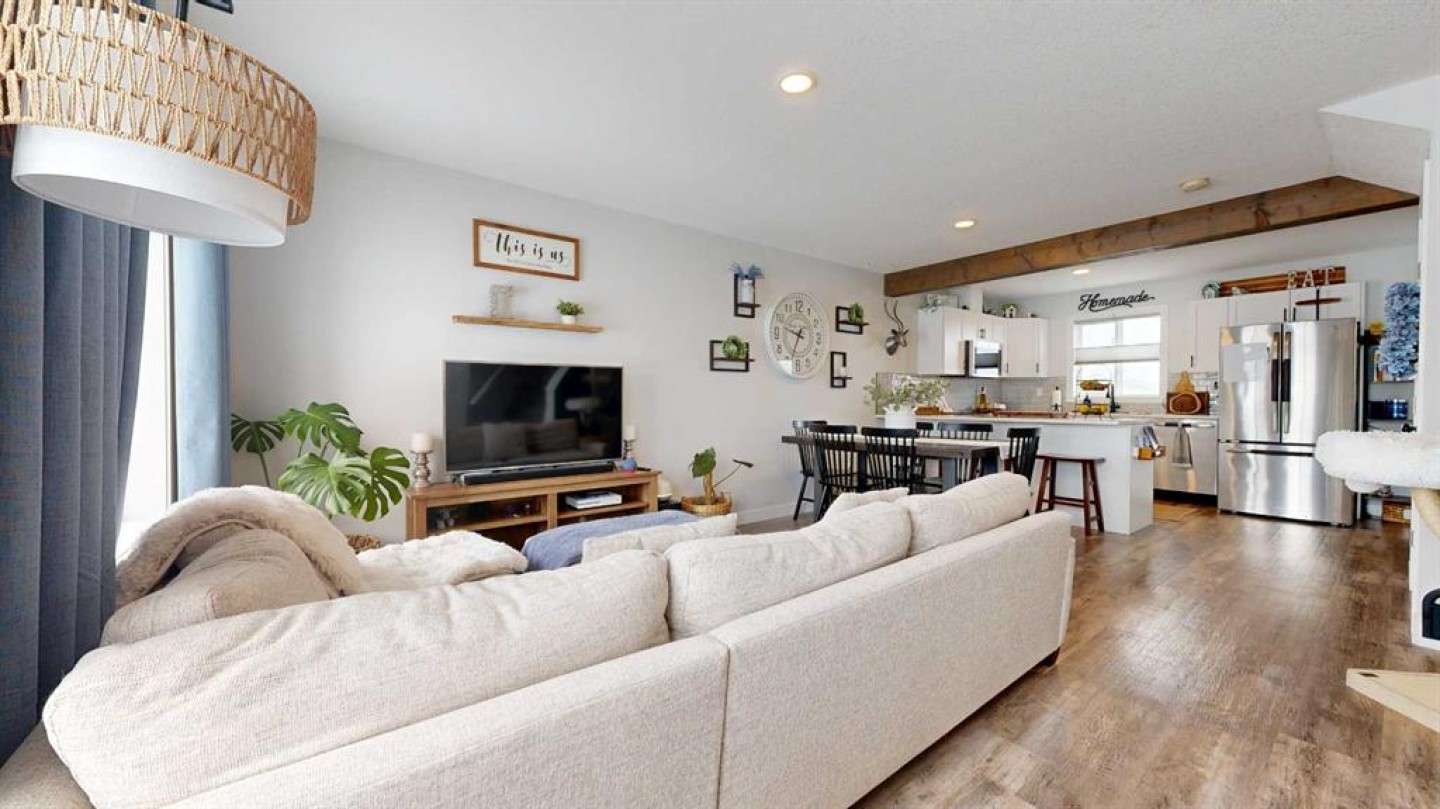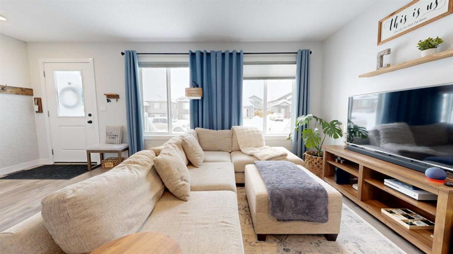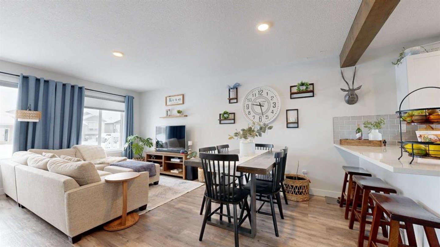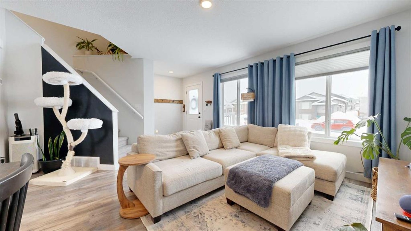End unit, fully finished, and beautifully maintained — this 4 bedroom, 2.5 bathroom townhome in Clairmont is move-in ready and packed with value. Built in 2018 and now upgraded with central air conditioning, this home offers a bright, functional layout perfect for families or first-time buyers. The main level features durable vinyl plank flooring, a spacious kitchen with ample counter space, and soft-close cabinets and drawers for a clean, modern feel. Upstairs you’ll find 3 bedrooms, including the primary suite with a walk-in closet, plus a full 4-piece main bathroom. The fully developed basement adds a fourth bedroom and an additional bathroom featuring a tile tub surround. Outside, enjoy the rear deck, fenced yard, and a parking pad for two vehicles. Located in the growing community of Clairmont, close to a K–8 school, bike park, splash park, and convenience stores, this home checks all the boxes for comfortable, low-maintenance living. Reach out to your realtor today to book a showing! Virtual tour available as well.