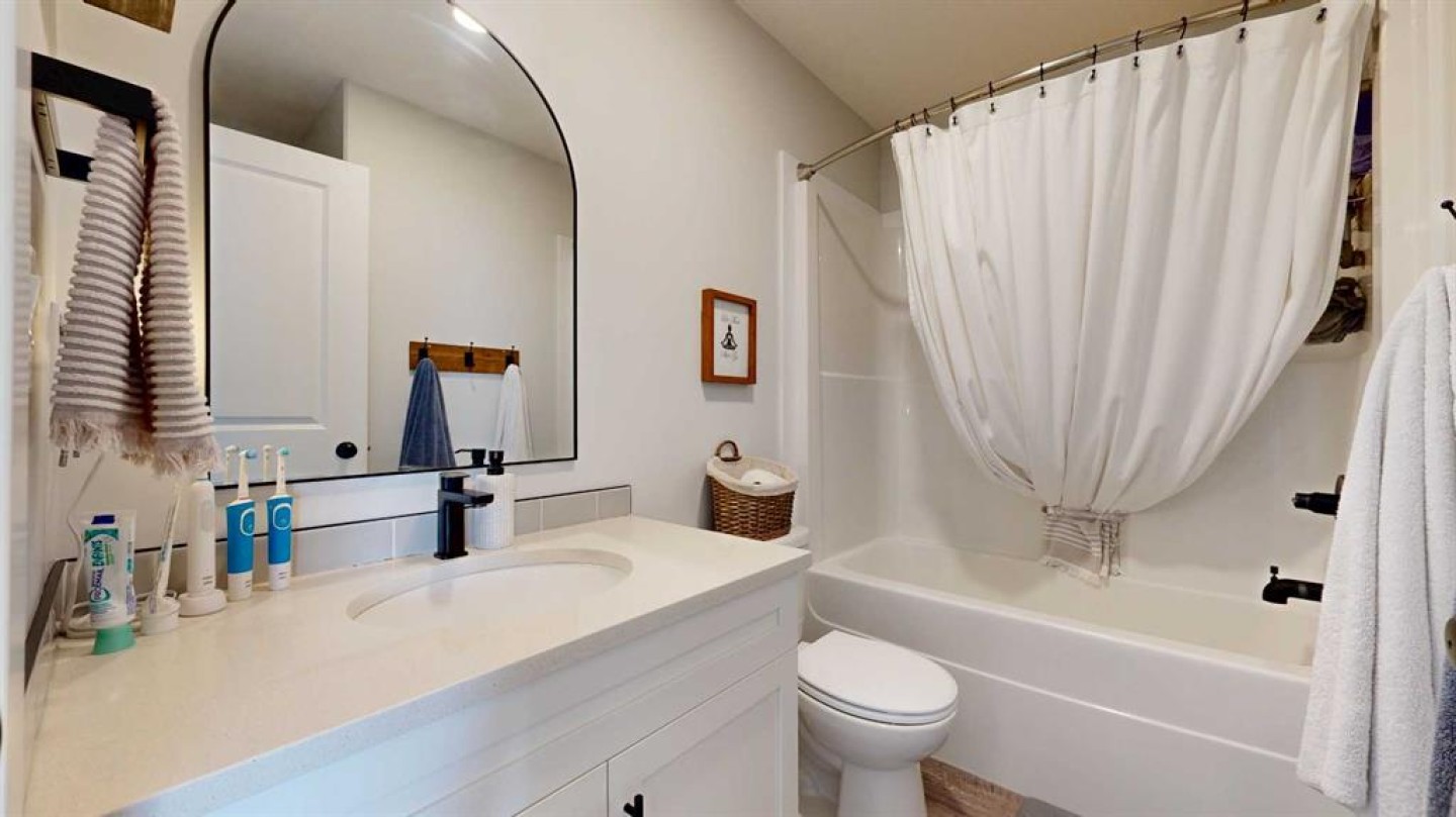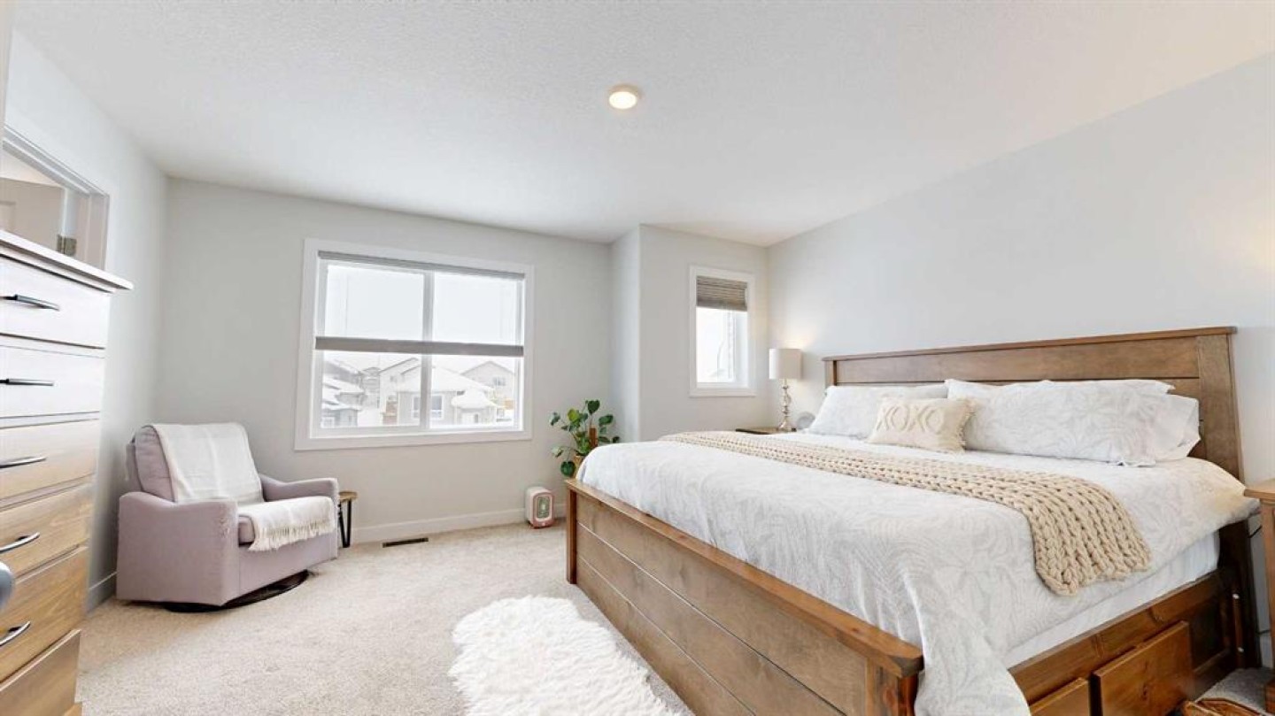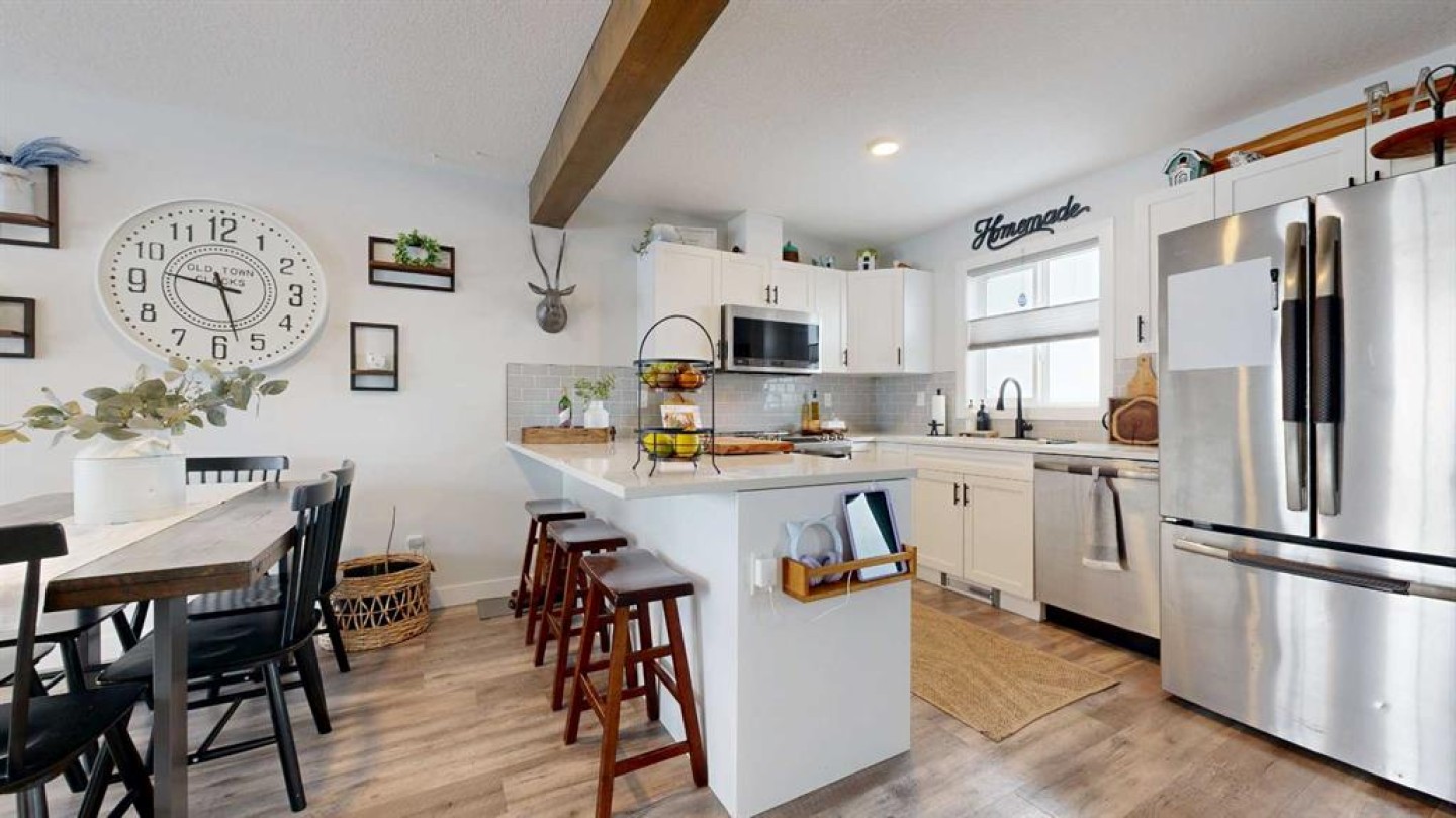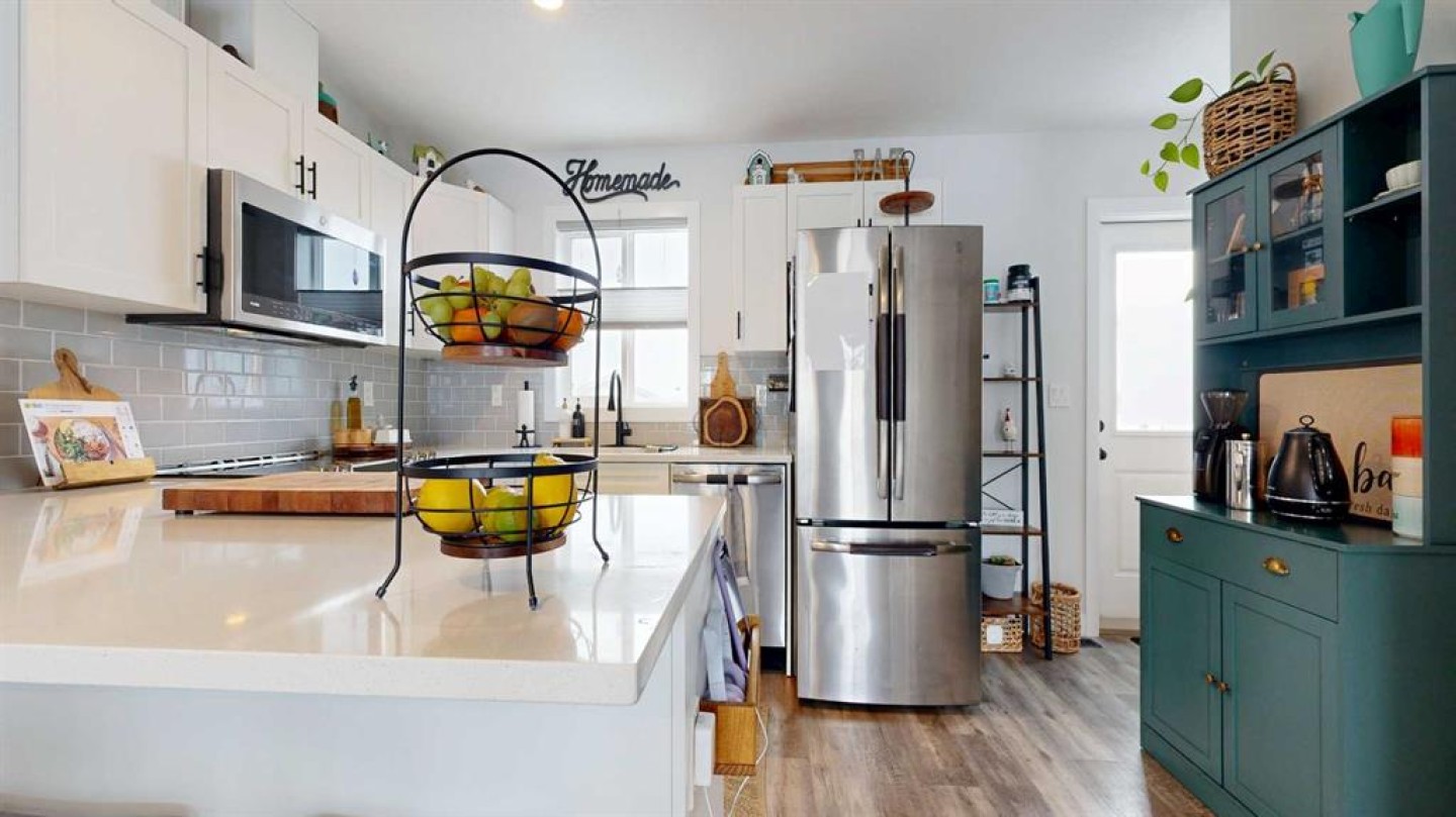 End unit, fully finished, and beautifully maintained — this 4 bedroom, 2.5 bathroom townhome in Clairmont is move-in ready and packed with value. Built in 2018 and now upgraded with central air conditioning, this home offers a bright, functional layout perfect for families or first-time buyers. The main level features durable vinyl plank flooring, a spacious kitchen with ample counter space, and soft-close cabinets and drawers for a clean, modern feel. Upstairs you’ll find 3 bedrooms, including the primary suite with a walk-in closet, plus a full 4-piece main bathroom. The fully developed basement adds a fourth bedroom and an additional bathroom featuring a tile tub surround. Outside, enjoy the rear deck, fenced yard, and a parking pad for two vehicles. Located in the growing community of Clairmont, close to a K–8 school, bike park, splash park, and convenience stores, this home checks all the boxes for comfortable, low-maintenance living. Reach out to your realtor today to book a showing! Virtual tour available as well.