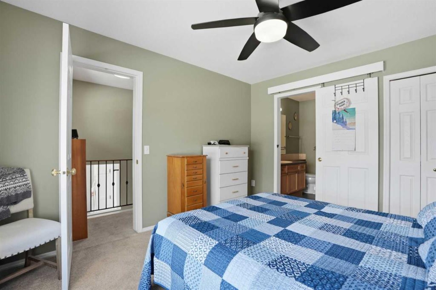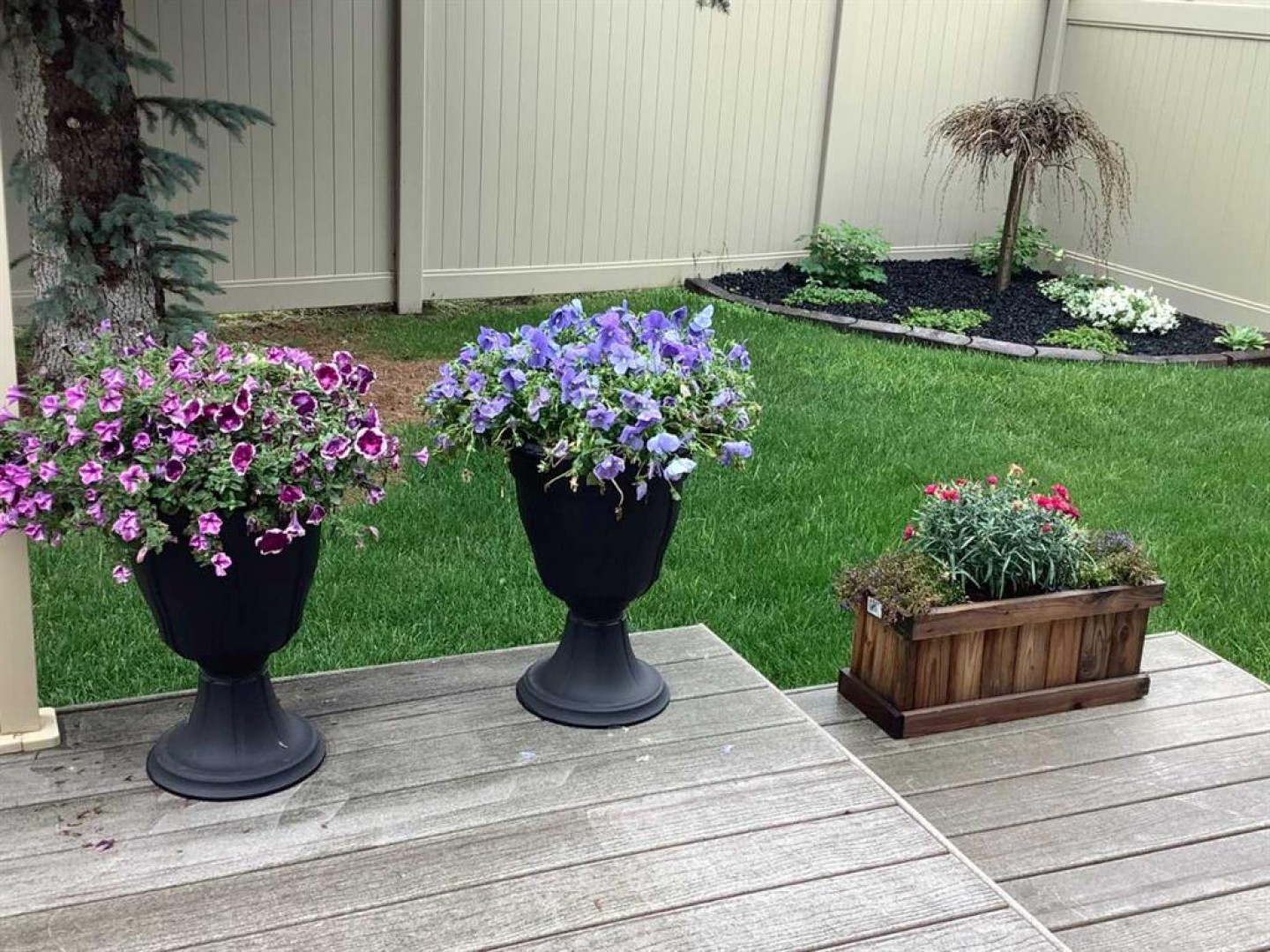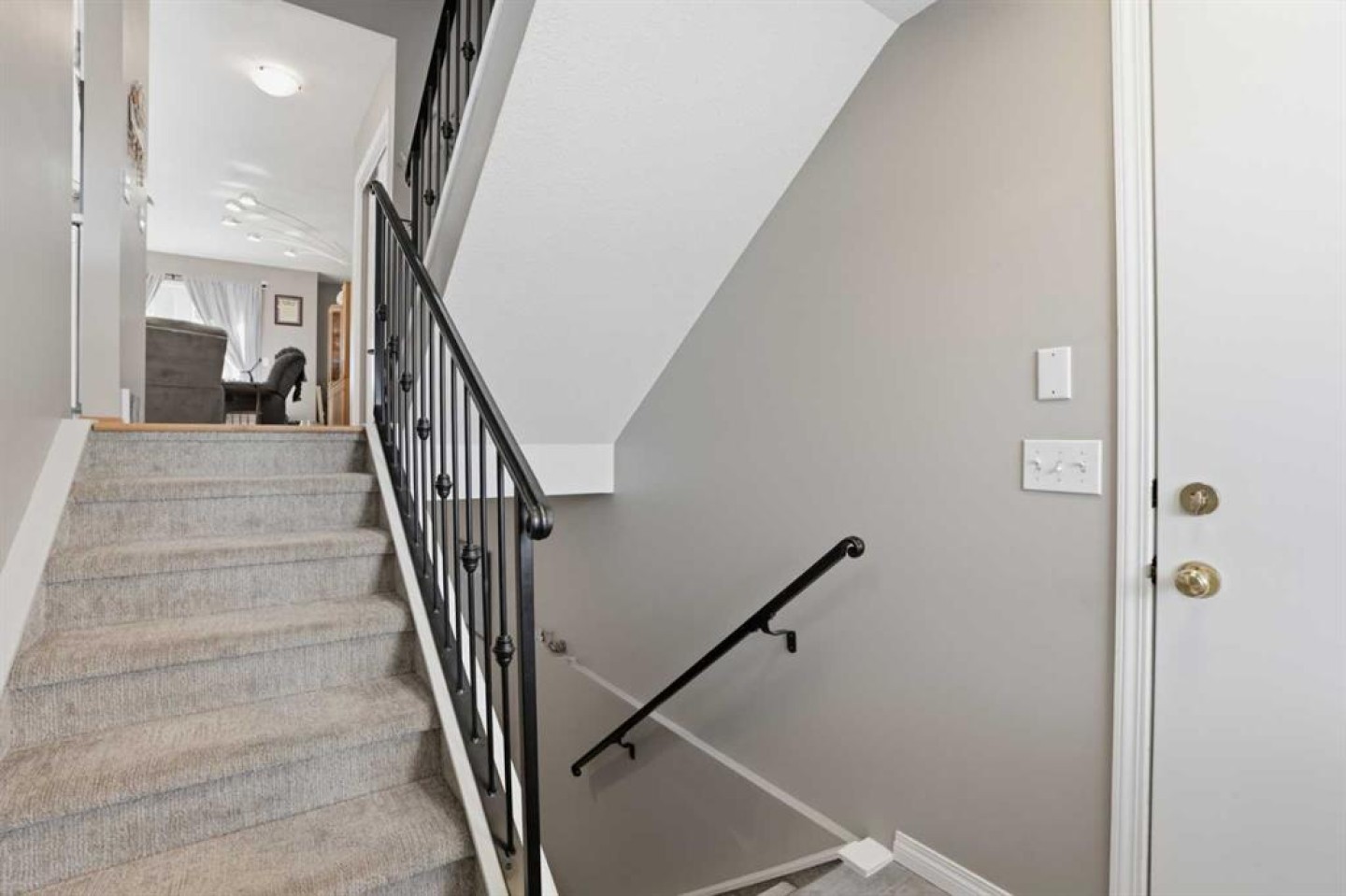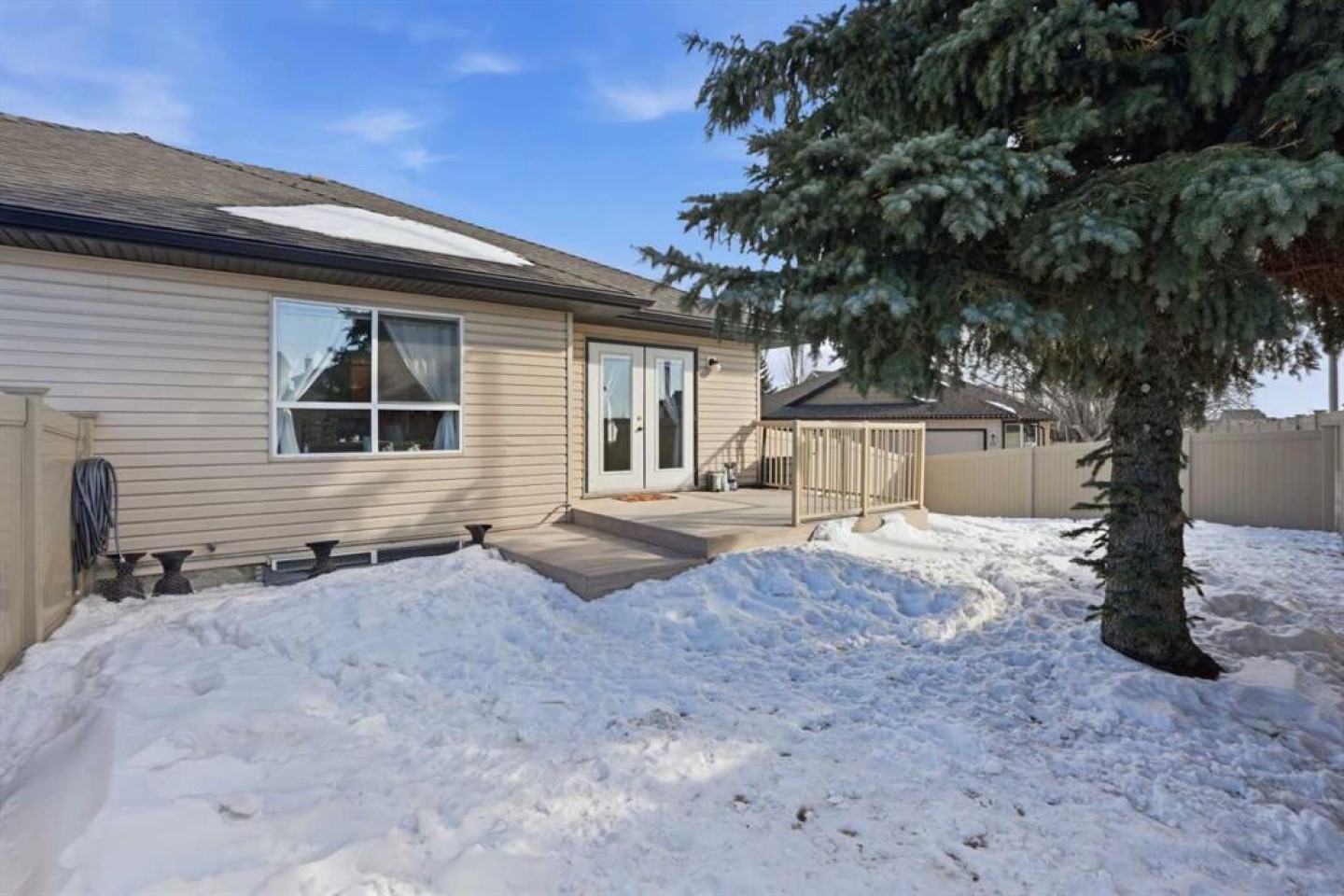 WOW! Take a look at this incredible end-unit duplex in the West Point Villas II complex, in the sought-after neighbourhood of Fairways, NW Airdrie! Boasting 1,881 square feet of fully developed living space, this home features 3 bedrooms + den, and 3 full bathrooms! Noteworthy upgrades/updates include a tastefully renovated kitchen (with bright white cabinetry, laminate countertops, and newer appliances), a newly custom-built glass-enclosed walk-in shower in the primary ensuite, central air conditioning, central vacuum system, cozy natural gas fireplace in the living room, and upgraded flooring throughout (hardwood, linoleum, and plush carpet). The furnace has been recently serviced and new smoke/CO detectors have been installed for added peace of mind. Additional highlights include a large, private, fully-fenced, south-facing backyard with a spacious composite deck and beautiful perennial garden, an insulated single attached garage with storage cabinetry, and a front driveway for extra parking. Don’t miss this rare opportunity—call today!