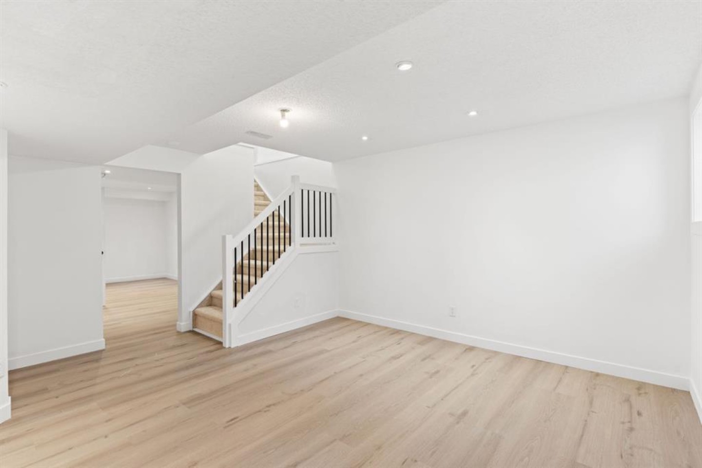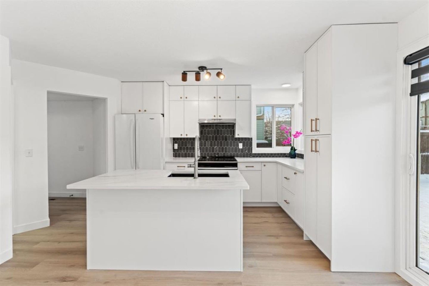 Great value in this updated two-storey family home in lovely MacEwan Glen—move-in ready! With 1,700+ sq.ft. of developed living space on a 35’ x 101’ lot, this 3 bedroom + 2.5 bath home delivers comfort and practicality. The bright front living room features a wood-burning fireplace and large windows. At the heart of the home is a newly designed kitchen, complete with full-height cabinetry, quartz counters, decorative tile backsplash, new Whirlpool stove & Bosch dishwasher, convenient central island, and new lighting. The dining nook opens onto a large west-facing backyard via sliding doors—perfect for BBQ's or evenings on the deck. Upstairs, two large bedrooms (including a roomy primary) sit alongside a fully remodelled 4-pc bath with a tiled tub/shower and quartz-topped vanity. The lower level has new carpet, pot lights, along with 2 newly cut-in egress windows, one in the front family room and the other in the newly added 3rd bedroom complete with 4-pce ensuite bath. A fully fenced, west-facing backyard offers loads of room to play and the added bonus of alley access, perfect for a future garage. A tandem front parking pad adds everyday convenience. Notable updates include: new roof, hot water tank, fridge, stove, front door, interior doors, flooring (LVP, carpet, tile with upgraded 12 mm underlay for extra cushion), wall paint, kitchen (cabinets, quartz counters, tile backsplash), half bath, full bath, basement egress windows, new basement bedroom and ensuite bath, replacement of interior electrical outlets, exterior wood siding and fence paint, complete with municipal plumbing and electrical permits. A warm, modern home in an established NW community—this one’s worth the visit.