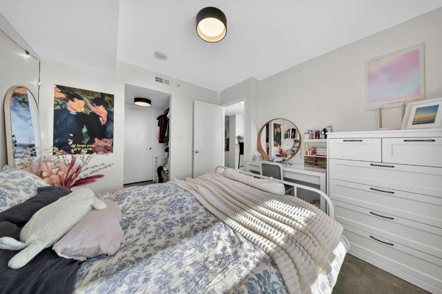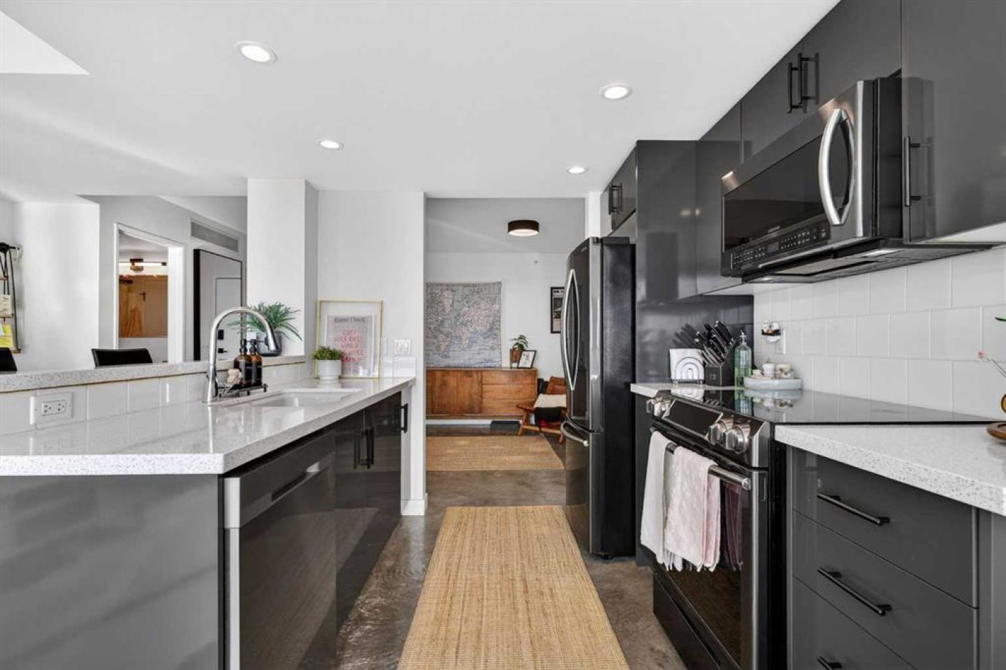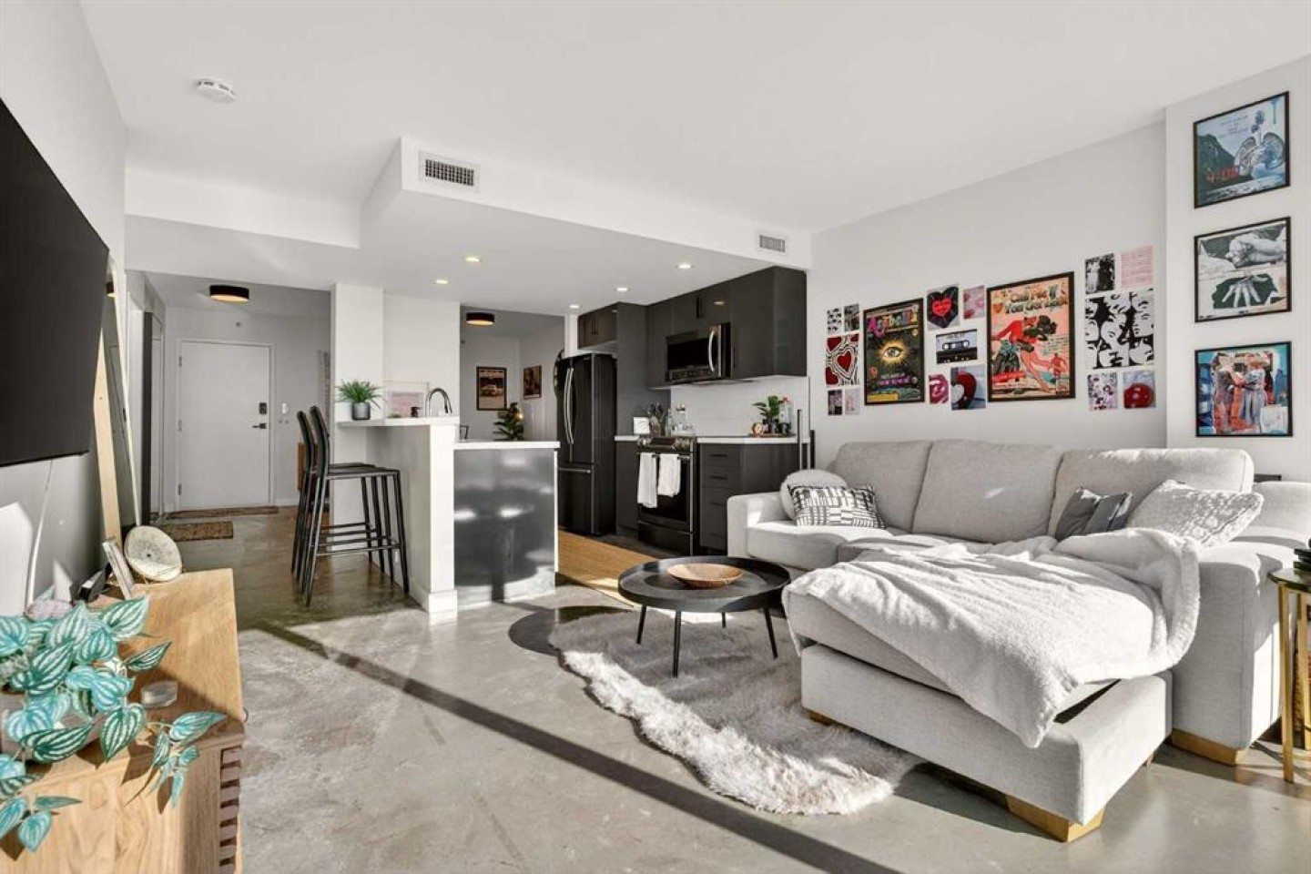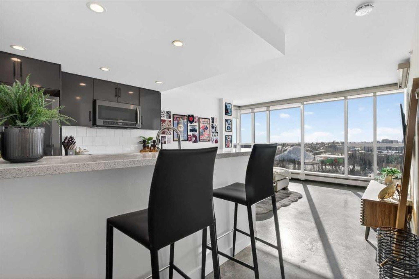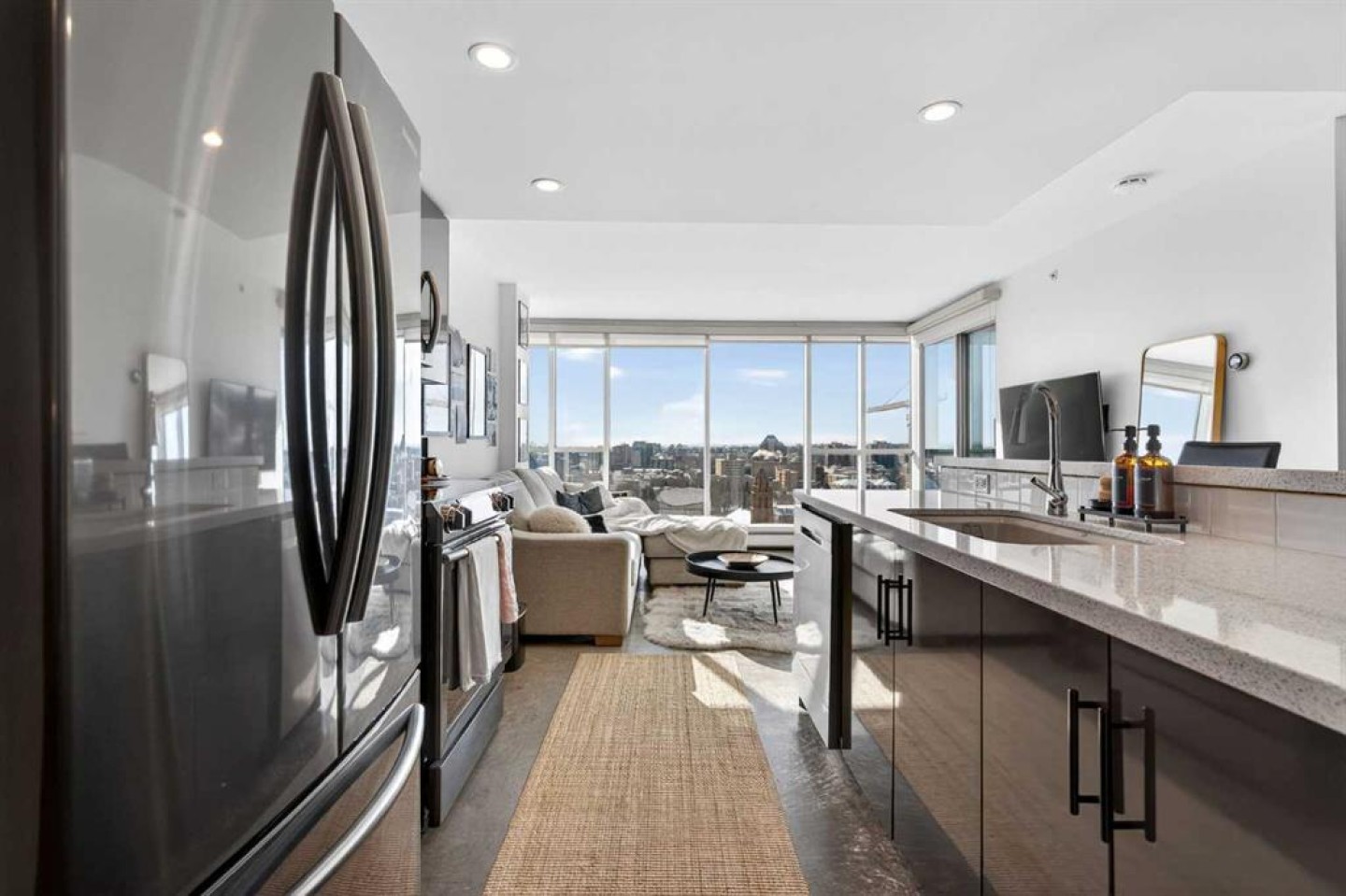 Welcome home! This 18th floor condo offers over 700 square feet of well-designed space with a functional, open layout that feels bright and connected. The kitchen features a breakfast bar for casual meals and opens directly into the living area. Floor to ceiling, south facing windows bring in natural light throughout the day, and the balcony offers open views with plenty of afternoon and evening sun with views of the mountains on a clear day. The primary bedroom includes a walk-through closet with cheater access to the 4-piece bathroom, creating a practical and efficient layout. There is also a generous flex space that could be used as a dining area, home office, reading corner, or a dedicated yoga or wellness space depending on your needs. In unit laundry and air conditioning add everyday comfort. A titled underground parking stall makes parking easy, and the building amenities include a recreation room, outdoor terrace/picnic area, and a rooftop patio with wide city and Stampede Park views. Up to three pets are allowed upon written board approval with no size or weight restrictions. Located in the heart of the Beltline, you're close to 17th Avenue, MacLeod Trail, shopping, and dining options. Book your showing with your favourite REALTOR® today.