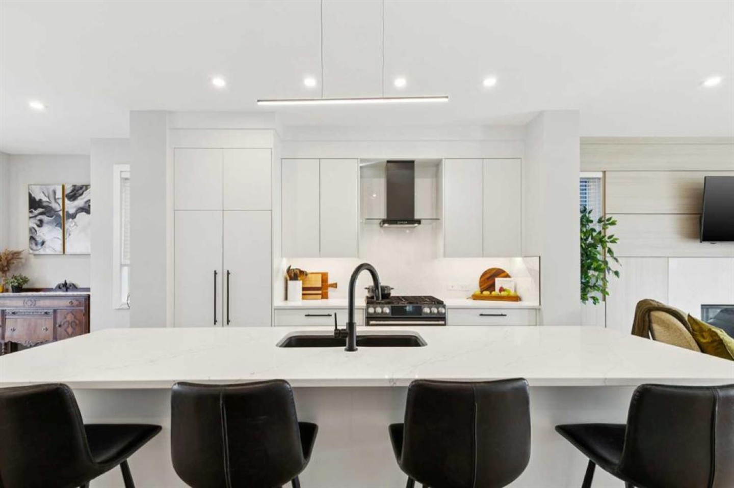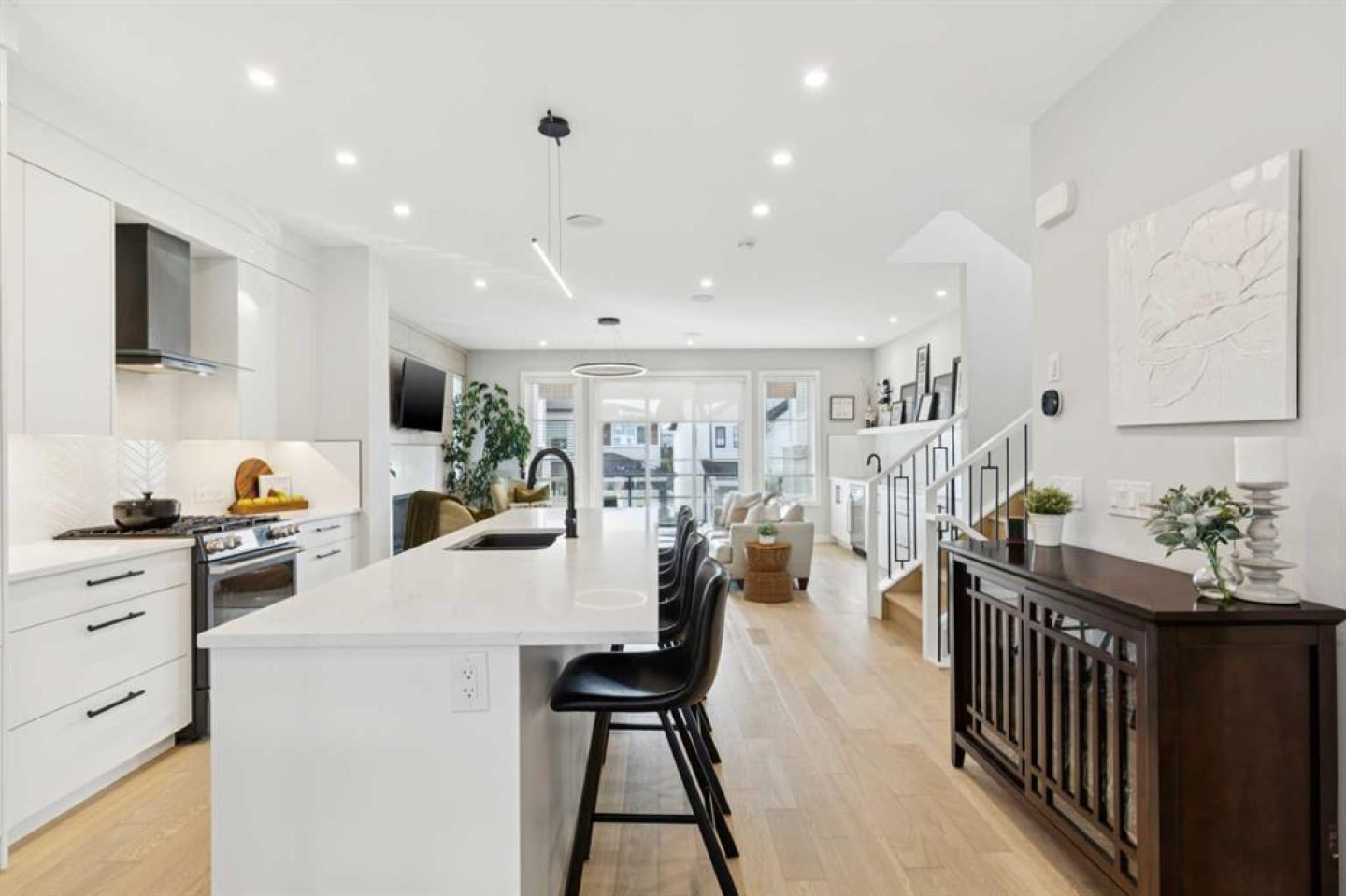 OPEN HOUSE - Saturday Mar 7th 2:00-4:00pm - FORMER SHOW HOME Set on a quiet street in prestigious Timberline Estates, this Truman-built modern farmhouse blends elevated design with everyday comfort, offering over 2,700 sq ft of thoughtfully planned living space and an oversized double garage with added storage or workshop area, with flexibility for an extra single bay if desired. The main floor is anchored by a custom A.B. Cushing kitchen that feels both refined and functional, with integrated built-in appliances, sleek cabinetry, and a generous central island that naturally becomes the heart of the home. Expansive aluminum-clad windows fill the main level with natural light and connect the kitchen to a spacious private front office and an inviting great room at the rear. In the great room, a clean-face 42" fireplace provides a warm focal point, while oversized three-panel sliding doors open to the backyard, creating an easy flow for indoor-outdoor living and entertaining. The layout maintains a sense of openness while still offering defined spaces for work, relaxation, and gathering. Upstairs, three well-proportioned bedrooms are complemented by a versatile bonus room that works beautifully as a media space, kids’ lounge, or quiet retreat. The primary suite stands out as a true sanctuary, with a generous bedroom, walk-in closet, and a spa-inspired ensuite featuring dual vanities, a custom-tiled walk-in shower, and a freestanding soaker tub. Everyday life is made more comfortable and convenient with central air conditioning and a private in-home elevator. The AC keeps the home cool through Calgary’s warm summer days, while the elevator provides effortless movement between levels—an exceptional feature that enhances accessibility and supports long-term, age-in-place living. Beyond the home itself, the location is a major advantage. Timberline Estates sits within sought-after Springbank Hill, minutes from top-rated public and private schools such as Webber Academy, Rundle College, Calgary Academy, Griffith Woods School, and Ernest Manning High School. Daily errands and dining are easy with nearby Aspen Landing, Westhills, and Signal Hill shopping centres offering grocery stores, coffee shops, fitness studios, restaurants, and professional services. Outdoor recreation is close at hand, with quick access to pathways, green spaces, and nearby Westside Recreation Centre with its pool, fitness facilities, and programs for all ages. Commuters and weekend adventurers benefit from convenient access to the 69 Street LRT station, Stoney Trail, Sarcee Trail, and Highway 1, making both downtown and the mountains remarkably accessible. 28 Timberline Way ~ delivers a rare combination of modern farmhouse style, air-conditioned comfort, elevator convenience, and a premier West Calgary location surrounded by amenities. It is a superior choice for buyers seeking a future-ready home in an established, highly desirable community.