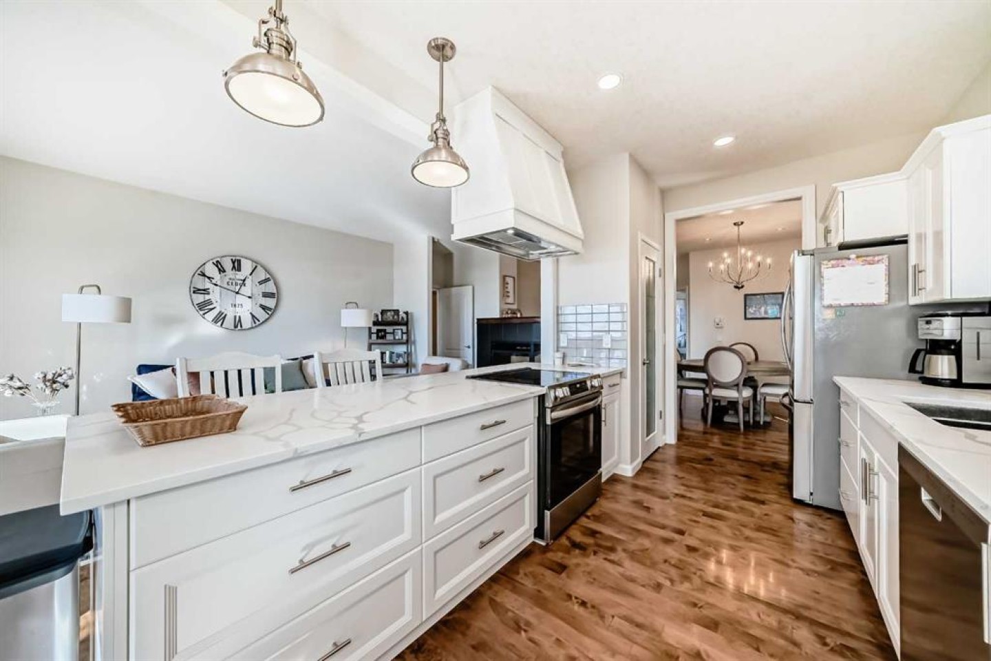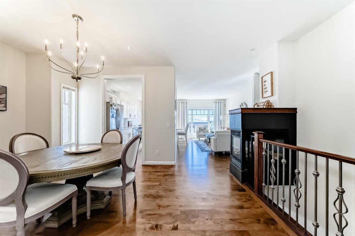 Welcome to Bridle Estates—one of Calgary’s premier 55+ adult communities. From the moment you arrive, you'll be drawn in by the home’s charming curb appeal, featuring a covered front porch and a double attached garage. Inside, a wide foyer opens into a bright, open-concept layout highlighted by a striking three-sided fireplace and large south-facing windows that flood the space with natural light. The main level showcases rich refinished hardwood floors and a thoughtfully designed floor plan that includes a formal dining room, a dedicated home office, and a spacious living room. The fully modernized kitchen is equipped with stainless steel appliances, ample cabinetry, and generous quartz countertop space perfect for everyday cooking and entertaining. A cozy breakfast nook leads to the large deck overlooking a sunny south-facing backyard. Also on the main floor is a spacious primary bedroom with a walk-in closet and 4-piece ensuite, a convenient laundry room, and a 2-piece powder room. The fully finished walkout basement has brand new carpet and offers even more living space with two large bedrooms, an in-floor heated luxurious 5-piece bathroom with jetted tub, and a bright family room with a second gas fireplace. Step outside to a private lower patio, an ideal retreat for relaxation. Additional features include ample storage, underground irrigation, and approximately 2,350 sq. ft. of developed living space. Bridle Estates is a quiet, well-maintained community offering green spaces, a clubhouse, and walking paths. A low HOA fee ($180/month) covers landscaping and snow removal, ensuring a truly maintenance-free lifestyle. Conveniently located near transit, shopping, dining, and just minutes from Spruce Meadows with easy access to Stoney Trail. Don't miss your opportunity to enjoy vibrant, carefree living in a beautifully appointed home.
