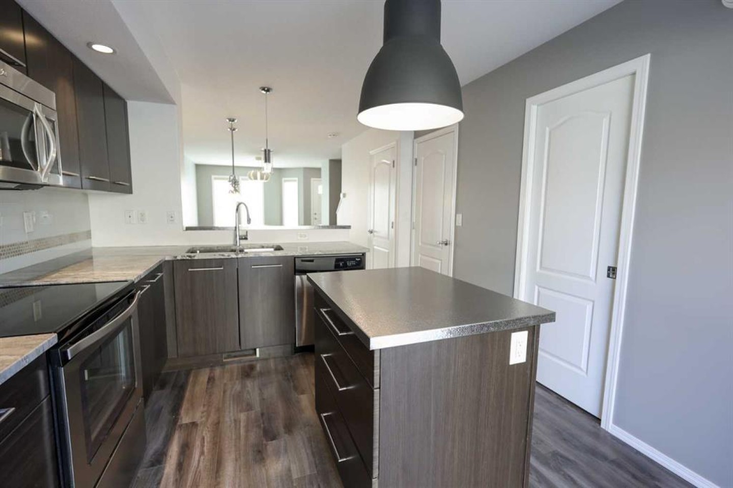 IMMEDIATE POSSESSION & MOVE IN READY ~ FULLY DEVELOPED 3 BEDROOM, 3 BATHROOM 2-STOREY CONDO ~ CONVENIENT & WALKABLE LOCATION ~ Covered front entry welcomes you and leads to the sun filled foyer and open concept main level ~ The living room features floor to ceiling south facing windows that fill the space with natural light ~ The dining room has a stylish feature wall, dual chandeliers, and plenty of space to host large gatherings ~ The kitchen offers a functional layout with ample cabinet space, stone and stainless steel countertops including an island and a raised eating bar, large wall pantry and sliding patio doors with access to the deck and fully fenced, low maintenance backyard ~ 2 piece main floor bathroom ~ The primary bedroom is a generous size and can easily accommodate king size furniture plus multiple pieces of large furniture, and features a walk-in closet with built in organizers ~ 5 piece bathroom has an oversized vanity with dual sinks and extra storage cabinets, and a linen closet ~ 2nd bedroom located on the upper level is also a generous size with built in clothing organizers and has large south facing windows (with blackout blinds) ~ The fully finished basement offers a spacious family room, 3rd bedroom, 3 piece bathroom with a walk-in tile shower, laundry and ample storage space throughout ~ 2 powered parking stalls just outside the front door ~ Low monthly condo fees include; grounds maintenance, parking, professional management, reserve fund contributions, and snow removal ~ Excellent location; steps to Clearview Market Square (grocery stores, restaurants, gyms, Starbucks, etc), Timberland Crossing (grocery stores, restaurants, gyms, car wash, child care and more), plus multiple schools, parks and walking trails that connect to Red Deer's extensive trail system ~ This move in ready home delivers both convenience and modern comfort!