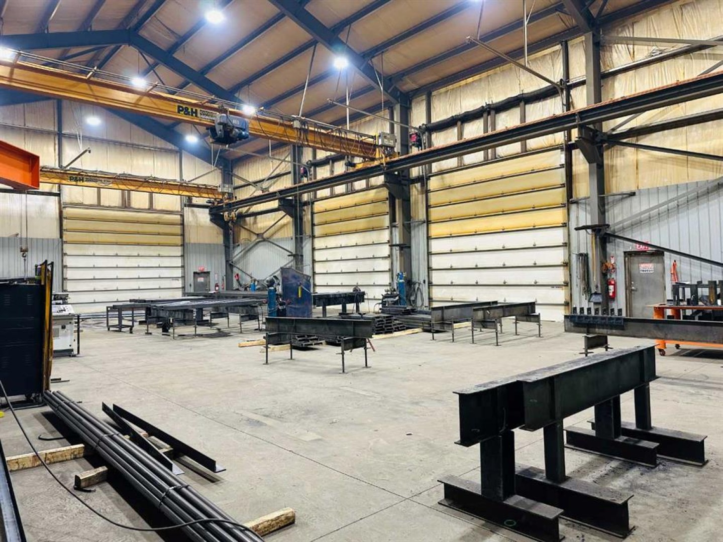 Multi building fabricating or manufacturing facility with 3 CRANES on 7 Acres just outside Grande Prairie. Great exposure to get you noticed and access right along Hwy 43. You will get 4 buildings totaling 16,978 Sq Ft and a well graveled partially fenced yard. "Shop A" is almost 7400 Sq Ft and features (2) 10 ton bridge cranes , 40' ceiling , (3) 18' H x 18' W and (1) 14' H x 15' W Overhead doors. Also has shop/ office staff locker room , parts room and 2 bathrooms. "Shop C" is wide open 50' wide x 70' deep shop with a 7.5 Ton crane with 24' hook height and huge 20' H x 24' W door. Shop "B" is 1584 Sq Ft with newly renovated interior. Office features welcoming reception 8 private offices , boardroom, full kitchen 2 bathrooms and a 2 car garage. Base rent is $25,467.00 and additional rent is $5052.69 for a total monthly payment of $30,519.69 + GST.