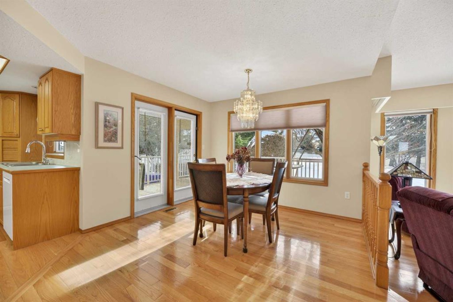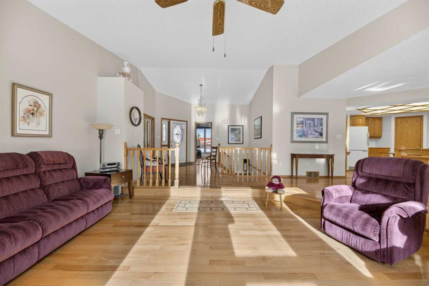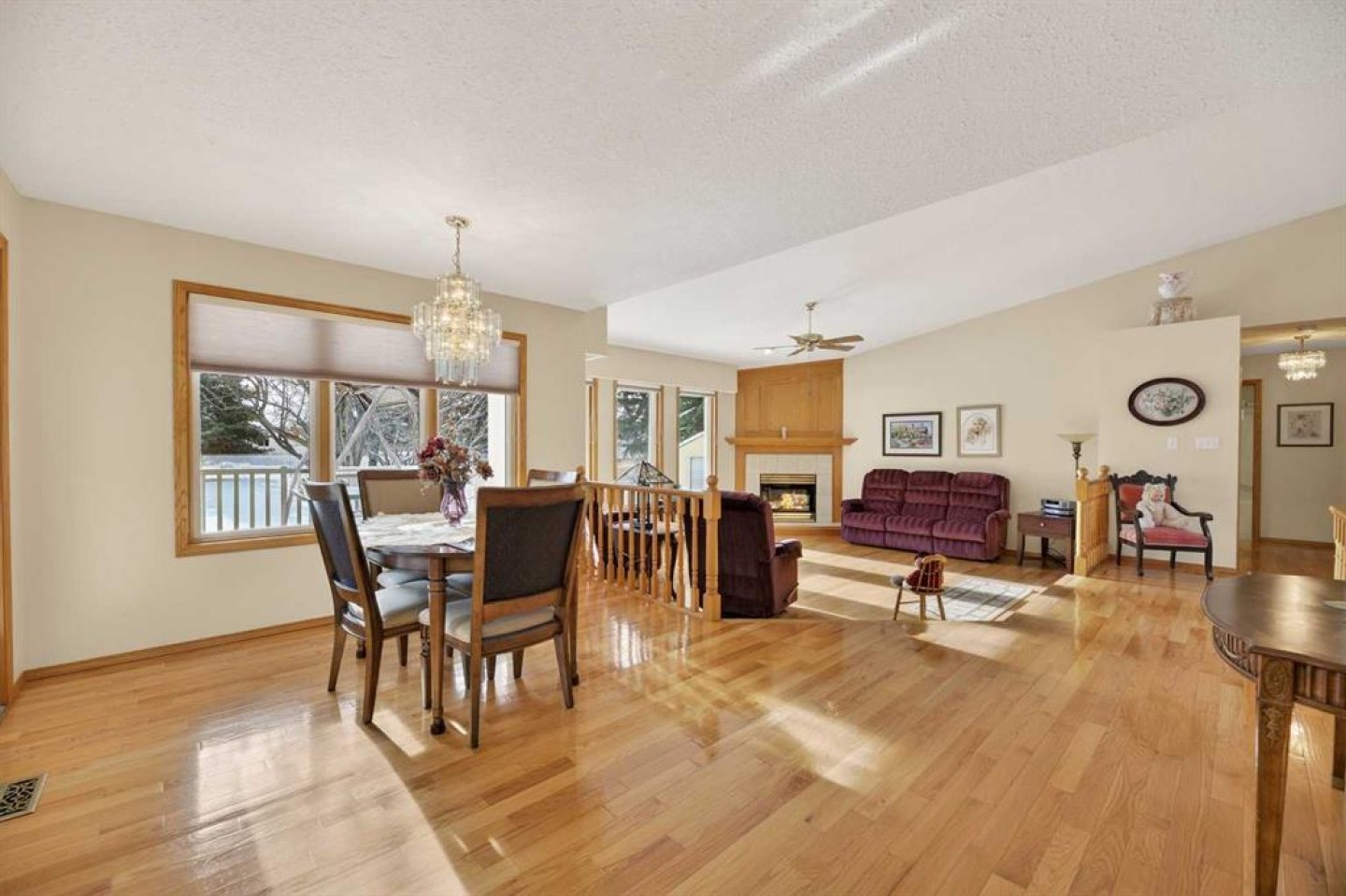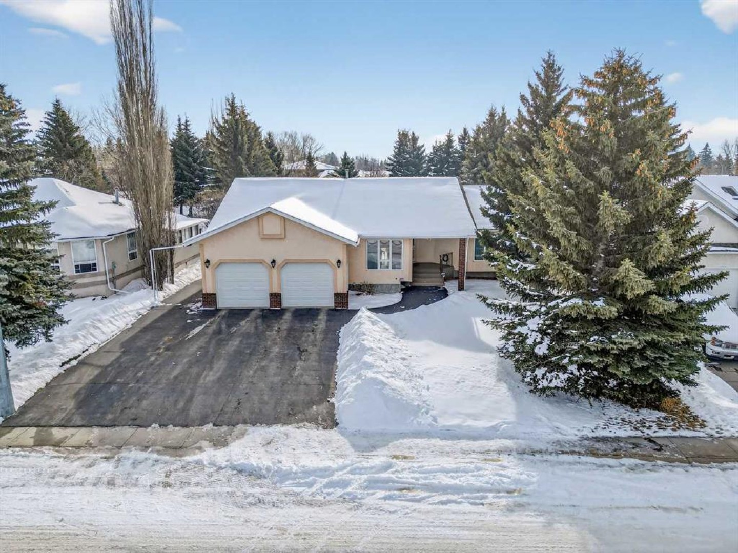 Welcome to this well maintained 1992 bungalow nestled in a quiet, family-friendly neighborhood. From the moment you step into the large welcoming foyer, you’ll appreciate the bright, open-concept design with an abundance of windows and natural light. The sunken living room features vaulted ceilings and a cozy gas fireplace, creating a warm yet airy gathering space. Just off the foyer is a versatile office or sitting room—perfect for working from home or enjoying a quiet retreat. The spacious dining area is perfect for large family gatherings and has garden doors leading to a nice sized covered 20'8 x 15'2 deck complete with a gas hookup for your BBQ, overlooking the large south-facing backyard. The functional kitchen has an island, sunshine ceiling and corner pantry. Main floor laundry with a sink adds convenience and includes direct access to the attached double garage with in-floor heating. The primary bedroom offers a walk-in closet and 3-piece ensuite, while a second bedroom with double closets and a 4-piece bathroom complete the main floor. Gleaming oak hardwood floors run throughout the main level and continue down the stairs, adding warmth and appeal. Downstairs, comfort continues with in-floor heating throughout the fully finished basement. This level features a spacious bedroom with a pocket door leading to a flexible adjoining space—ideal for additional sleeping quarters, or hobby room, A large recreation room, 3-piece bathroom, utility room, and extensive storage options complete the lower level. Outside, the front yard faces a green space and the large back yard leads to a green space and walking path which offers plenty of room to enjoy, along with RV parking and an asphalt driveway built over concrete for added durability. Over the years, this home has seen upgrades including vinyl windows, plumbing and updated taps in the kitchen, laundry room, primary ensuite, and main bathtub. Pride of ownership shines throughout this immaculate bungalow.