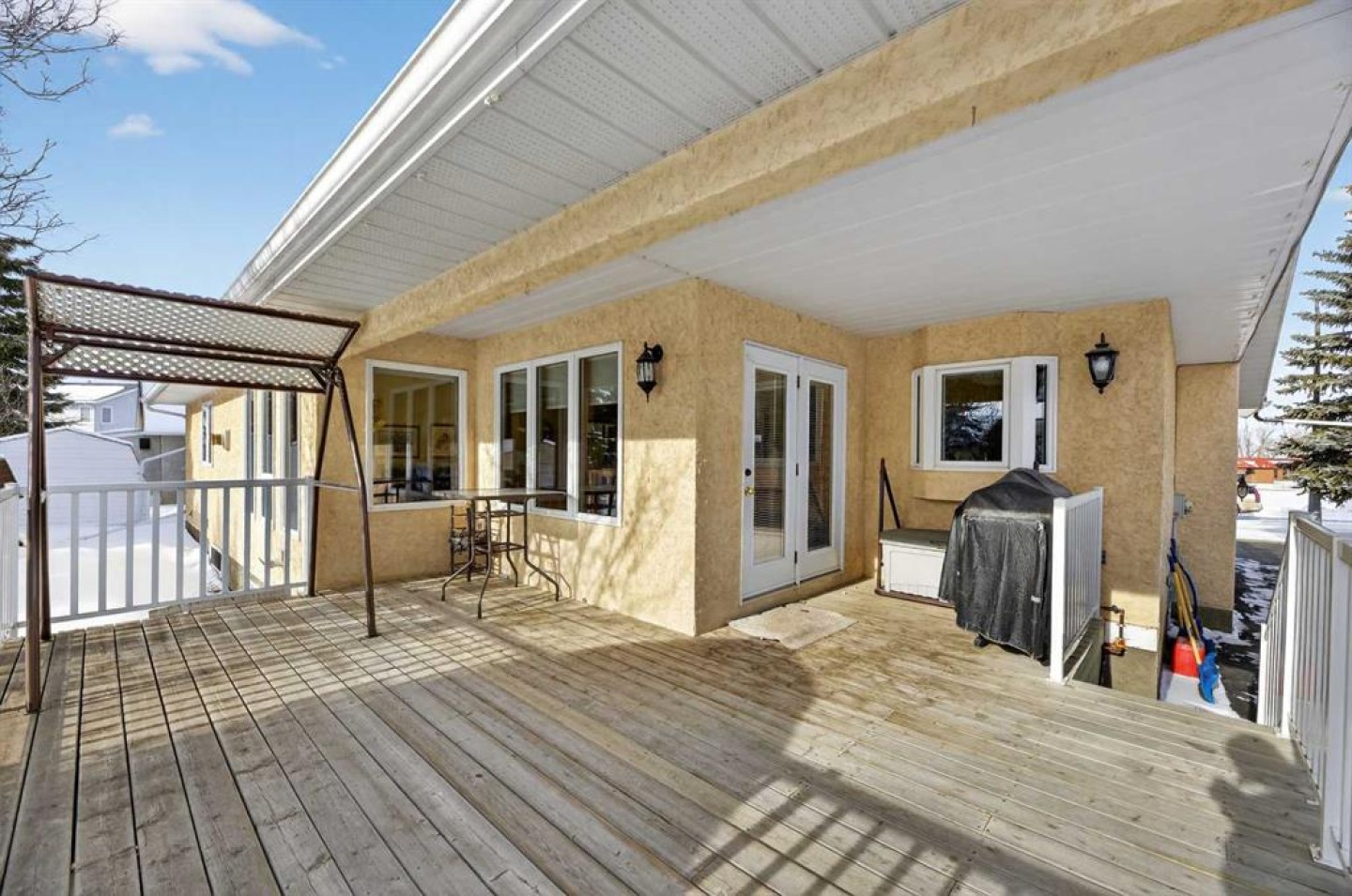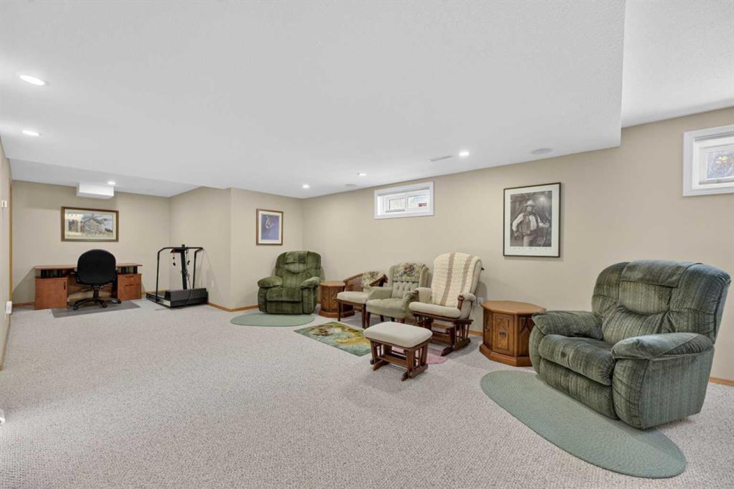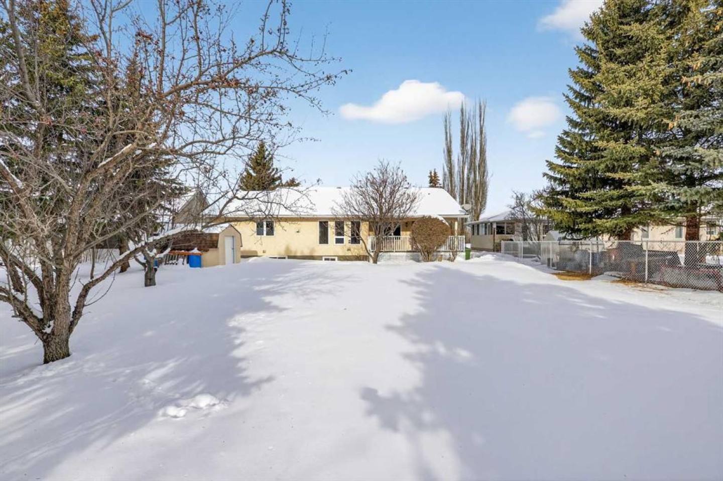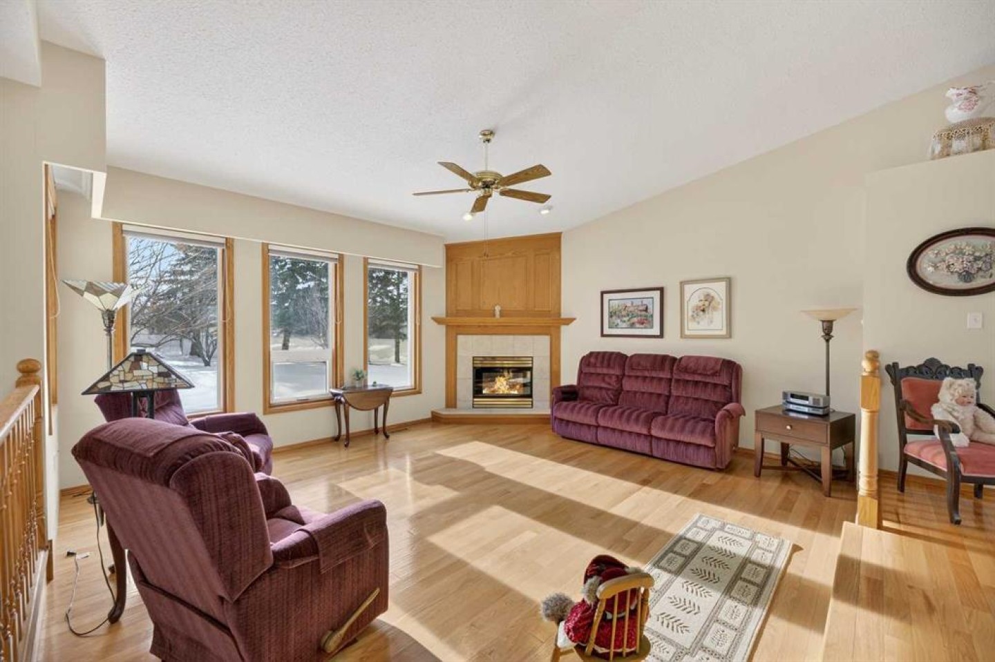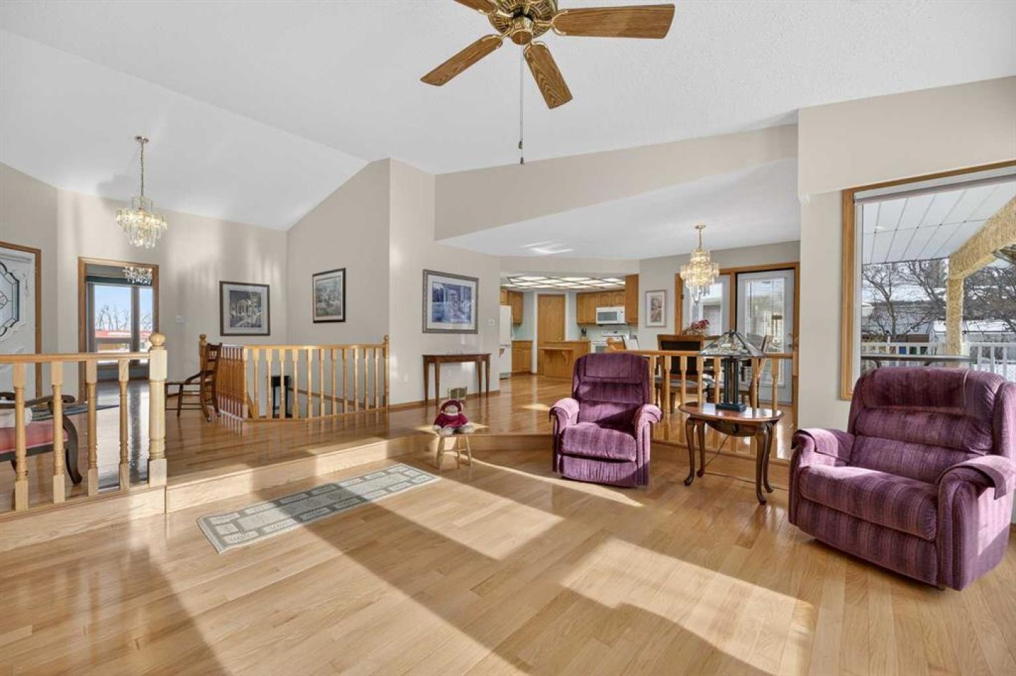 Welcome to this well maintained 1992 bungalow nestled in a quiet, family-friendly neighborhood. From the moment you step into the large welcoming foyer, you’ll appreciate the bright, open-concept design with an abundance of windows and natural light. The sunken living room features vaulted ceilings and a cozy gas fireplace, creating a warm yet airy gathering space. Just off the foyer is a versatile office or sitting room—perfect for working from home or enjoying a quiet retreat. The spacious dining area is perfect for large family gatherings and has garden doors leading to a nice sized covered 20'8 x 15'2 deck complete with a gas hookup for your BBQ, overlooking the large south-facing backyard. The functional kitchen has an island, sunshine ceiling and corner pantry. Main floor laundry with a sink adds convenience and includes direct access to the attached double garage with in-floor heating. The primary bedroom offers a walk-in closet and 3-piece ensuite, while a second bedroom with double closets and a 4-piece bathroom complete the main floor. Gleaming oak hardwood floors run throughout the main level and continue down the stairs, adding warmth and appeal. Downstairs, comfort continues with in-floor heating throughout the fully finished basement. This level features a spacious bedroom with a pocket door leading to a flexible adjoining space—ideal for additional sleeping quarters, or hobby room, A large recreation room, 3-piece bathroom, utility room, and extensive storage options complete the lower level. Outside, the front yard faces a green space and the large back yard leads to a green space and walking path which offers plenty of room to enjoy, along with RV parking and an asphalt driveway built over concrete for added durability. Over the years, this home has seen upgrades including vinyl windows, plumbing and updated taps in the kitchen, laundry room, primary ensuite, and main bathtub. Pride of ownership shines throughout this immaculate bungalow.