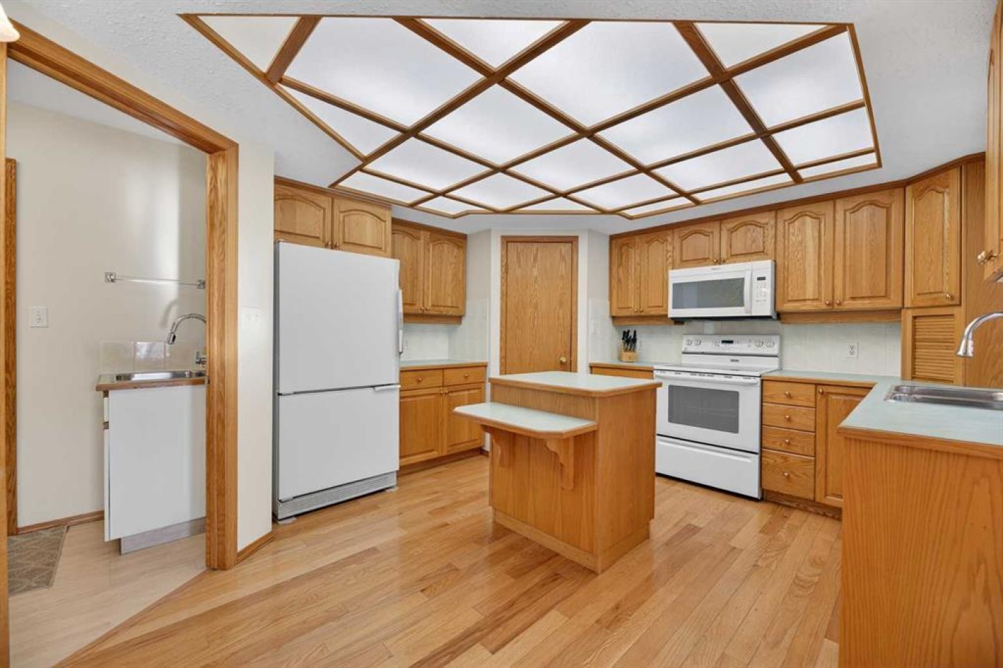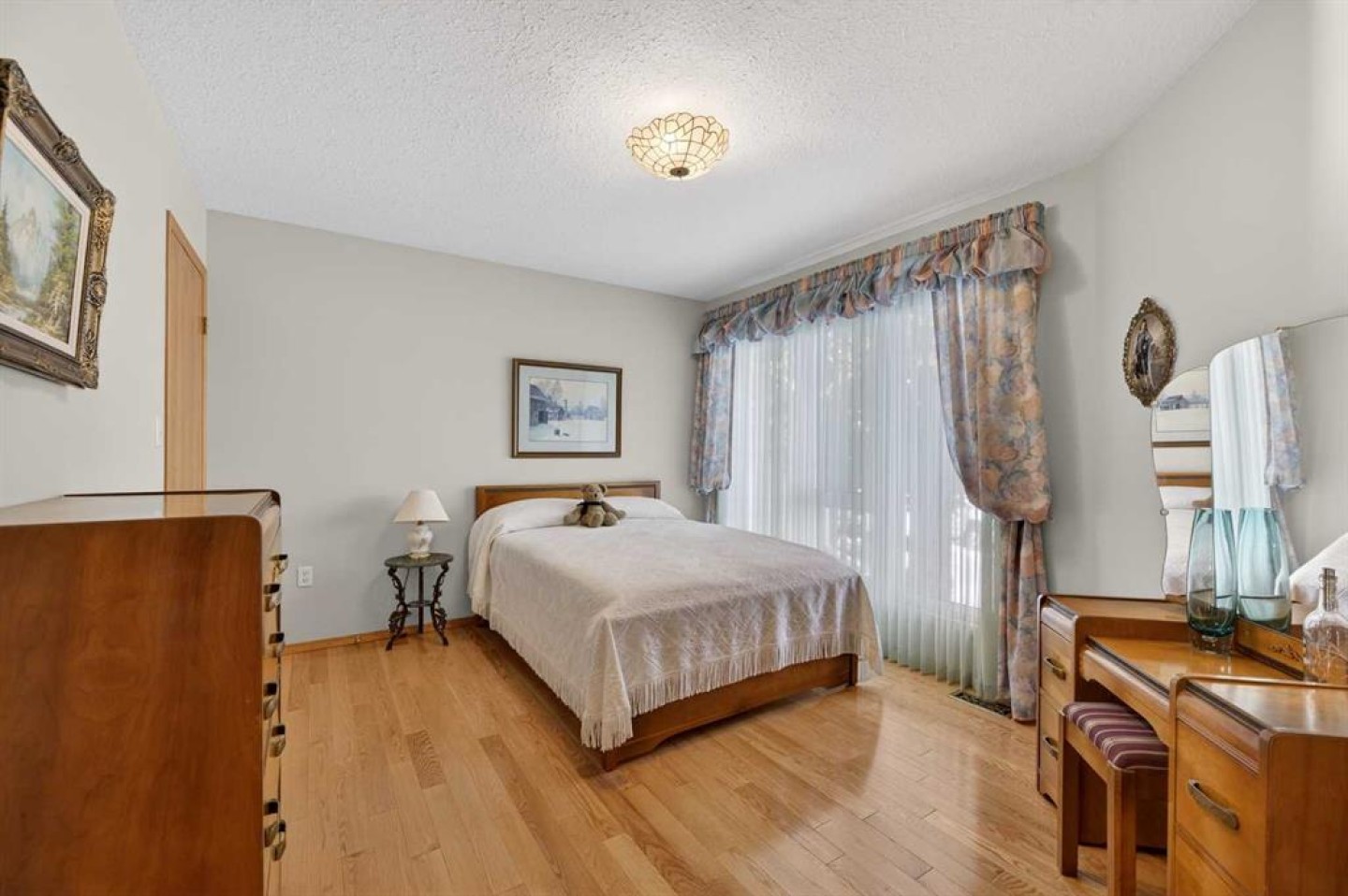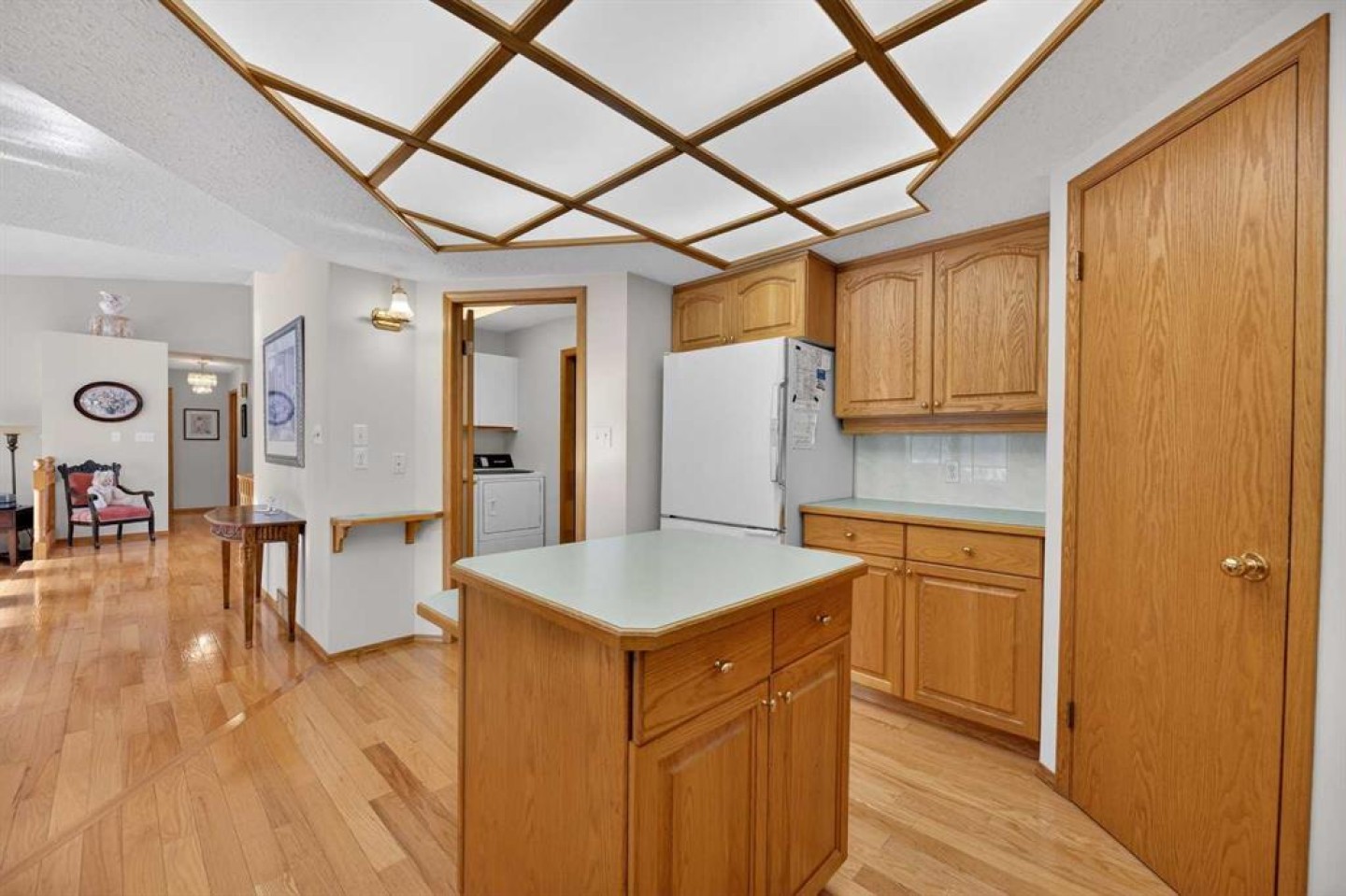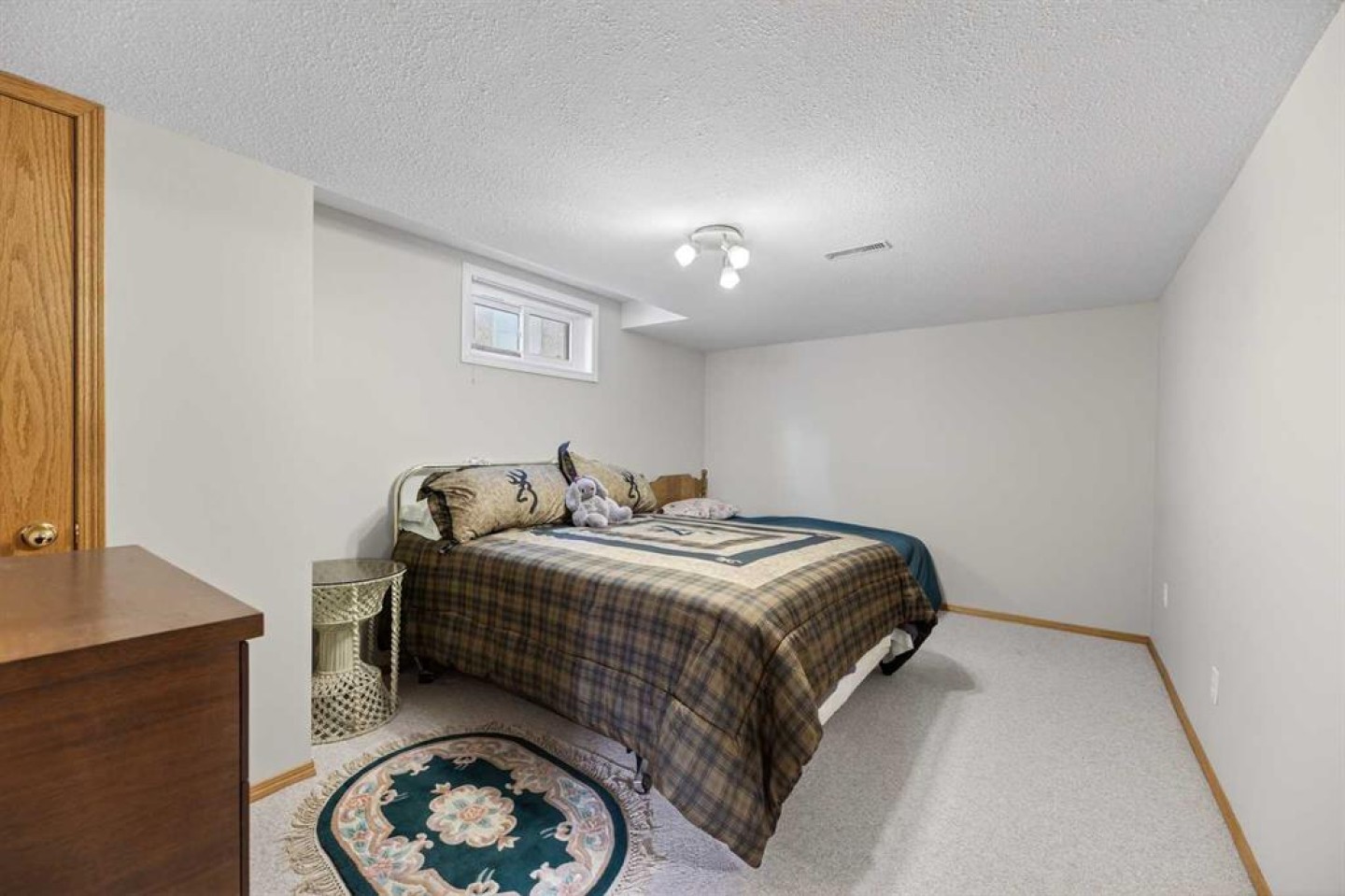Welcome to this well maintained 1992 bungalow nestled in a quiet, family-friendly neighborhood. From the moment you step into the large welcoming foyer, you’ll appreciate the bright, open-concept design with an abundance of windows and natural light. The sunken living room features vaulted ceilings and a cozy gas fireplace, creating a warm yet airy gathering space. Just off the foyer is a versatile office or sitting room—perfect for working from home or enjoying a quiet retreat. The spacious dining area is perfect for large family gatherings and has garden doors leading to a nice sized covered 20'8 x 15'2 deck complete with a gas hookup for your BBQ, overlooking the large south-facing backyard. The functional kitchen has an island, sunshine ceiling and corner pantry. Main floor laundry with a sink adds convenience and includes direct access to the attached double garage with in-floor heating. The primary bedroom offers a walk-in closet and 3-piece ensuite, while a second bedroom with double closets and a 4-piece bathroom complete the main floor. Gleaming oak hardwood floors run throughout the main level and continue down the stairs, adding warmth and appeal. Downstairs, comfort continues with in-floor heating throughout the fully finished basement. This level features a spacious bedroom with a pocket door leading to a flexible adjoining space—ideal for additional sleeping quarters, or hobby room, A large recreation room, 3-piece bathroom, utility room, and extensive storage options complete the lower level. Outside, the front yard faces a green space and the large back yard leads to a green space and walking path which offers plenty of room to enjoy, along with RV parking and an asphalt driveway built over concrete for added durability. Over the years, this home has seen upgrades including vinyl windows, plumbing and updated taps in the kitchen, laundry room, primary ensuite, and main bathtub. Pride of ownership shines throughout this immaculate bungalow.