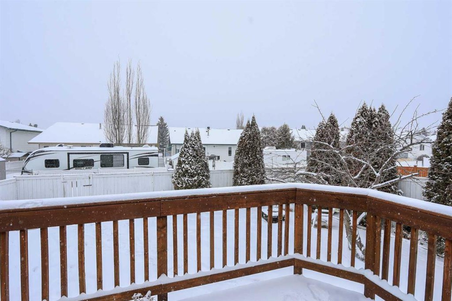 FULLY DEVELOPED 5 BEDROOM, 3 BATHROOM BI-LEVEL ~ DOUBLE ATTACHED GARAGE ~ SUNNY WEST FACING BACKYARD WITH A 2-TIERED DECK ~ CENTRAL AIR CONDITIONING ~ Mature landscaping in the front yard creates eye catching curb appeal ~ Welcoming tile foyer with high ceilings and convenient access to the attached garage ~ Vaulted ceilings create a feeling of spaciousness ~ The living room offers floor to ceiling bay window that over look the front yard and fill the space with natural light, has a lighted niche, and space for a formal dining table or extra seating ~ The kitchen offers an abundance of oak cabinets, ample counter space, full tile backsplash, window above the sink, a spacious wall pantry, and plenty of space for a large dining table and chairs ~ Garden door access to the sunny west facing 2-tiered deck ~ The primary bedroom can easily accommodate a king size bed plus multiple pieces of large furniture, has a walk in closet and a 3 piece ensuite ~ 2 additional bedrooms are both a generous size and are conveniently located across from a 4 piece bathroom ~ The fully finished basement features large above grade windows and operational in floor heat ~ Generous size family room with space for a games table opens to a media room with built in shelving and sconce lighting ~ 2 huge bedrooms both have ample closet space ~ 4 piece bathroom with an oversized vanity is located next to the laundry room ~ Shingles replaced within the last 3 years ~ The backyard is fully fenced, landscaped with mature trees and shrubs, has a storage shed below the deck, tons of yard space, and back alley access ~ Double attached garage is insulated, finished with painted drywall, and has a man door to the side/backyard ~ Located close to schools, parks, playgrounds and walking trails with easy access to all other amenities.