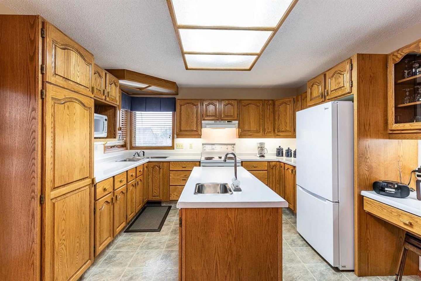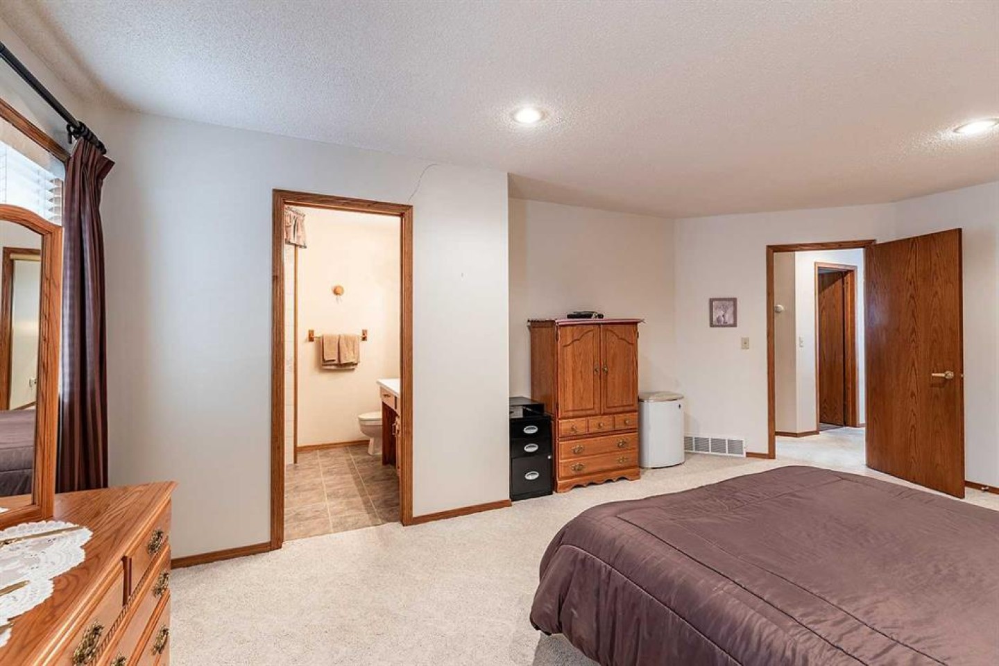INCREDIBLE LOCATION, with access to the Connaught golf course via paved pathway directly beside the home! A home defined by care, character, and a setting that invites you to stay. Proudly occupied by the original resident owner, this beautifully maintained corner residence offers a rare opportunity to step into a space where original charm has been thoroughly preserved and everyday living feels effortless. With 4 bedrooms, 3 bathrooms, laundry room with large folding counter, 2 car heated garage, and 2 large driveways, gives this home timeless appeal. The front entrance welcomes you into a gracious foyer that immediately introduces the home’s distinctive split-level design. From here, the layout flows naturally to the main living spaces, while also offering convenient direct access to the heated double garage. The main floor is bright and inviting, with large windows filling the living room with natural light. At its heart, a gas fireplace stands as a true centerpiece, offering warmth and character. The dining area connects seamlessly with the kitchen and leads directly to the back deck and backyard. The kitchen features a central island, plenty of beautiful oak cabinets, a barely-used dishwasher installed in 2015, and a newer refrigerator. Each element reflects the pride of ownership evident throughout the home. Two bedrooms are located on the main floor, both with walk-in closets, including a primary retreat complete with a private three-piece ensuite. The fully finished lower level expands the living space with a generous recreation room, two additional bedrooms, and a laundry area with plenty of cabinets, counter space, dedicated laundry sink, plus a large chest freezer! The laundry space is combined with the 3rd full bathroom. Outside, the stucco exterior with brick accents adds lasting curb appeal, complemented by underground sprinklers with timer servicing both the front and garden areas. Set within a quiet, well-established neighborhood, this location is especially valued for its sense of community and convenience. A nearby pathway offers direct access to the golf course, while Medicine Hat College, parks, walking trails, and essential amenities are all close at hand–making this a highly desirable place to call home. Thoughtfully cared for and gracefully maintained, this home is ready to welcome its next owners. Some windows were replaced over the years. The owner has maintained the home in an exceptional way. Don’t miss the opportunity to experience it for yourself–contact your real estate agent today to arrange a private showing!